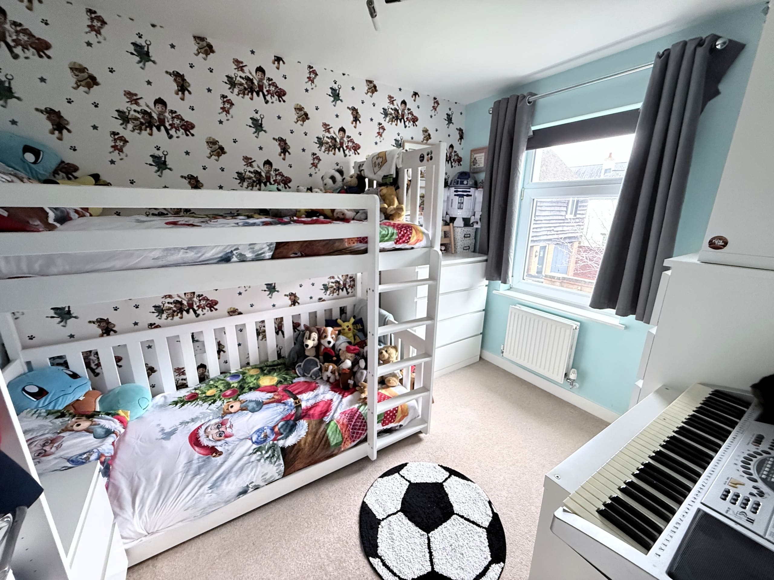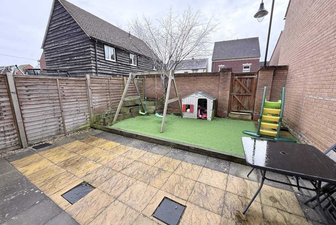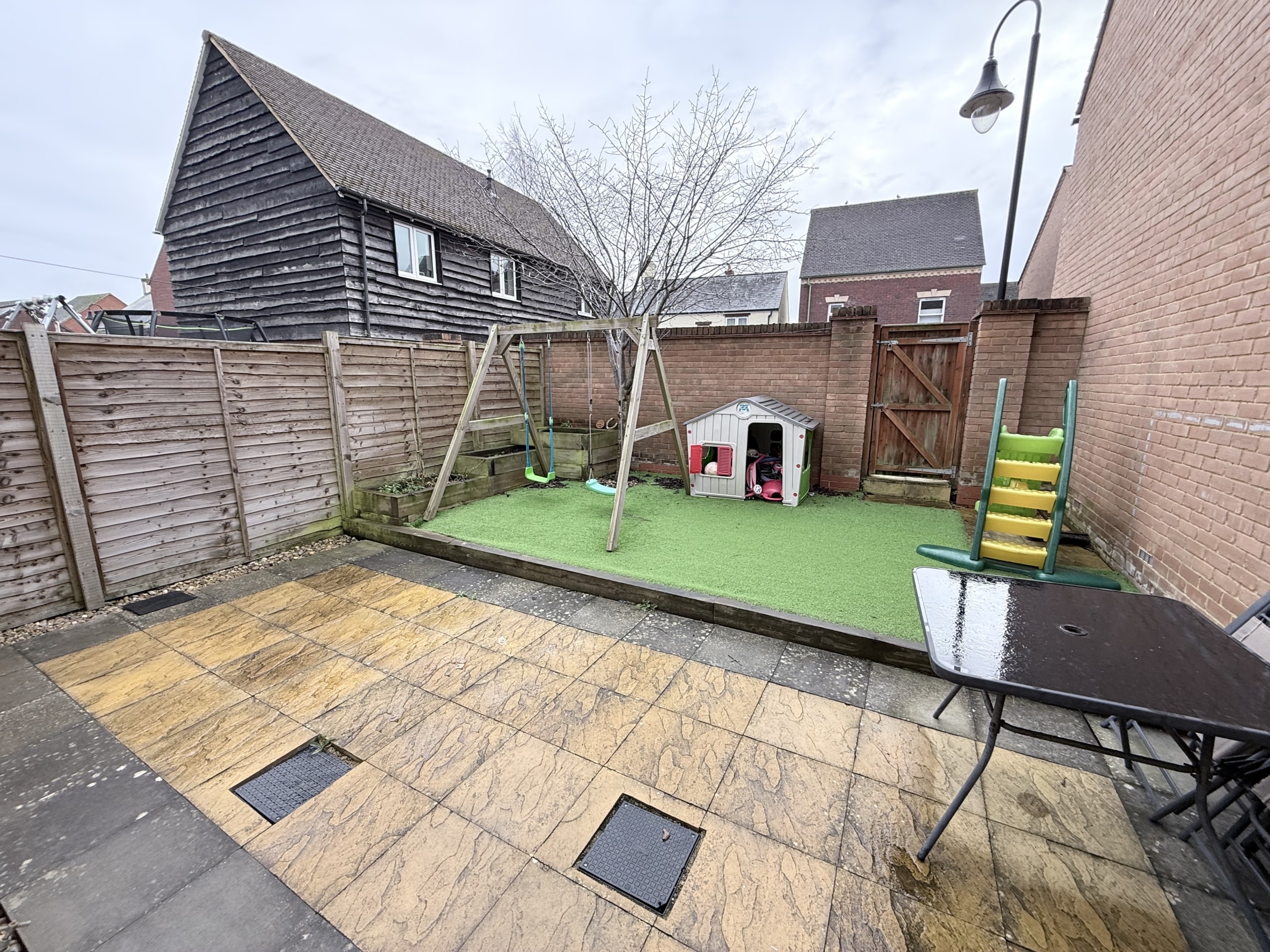 To the Outside, there is a pleasant enclosed Rear Garden, which enjoys a pleasant south facing aspect. With a large full width patio area and opening to artificial lawned area. The garden is enclosed by brick walling and timber fencing with gated pedestrian access to the rear, leading to the Garage, with up and over door.