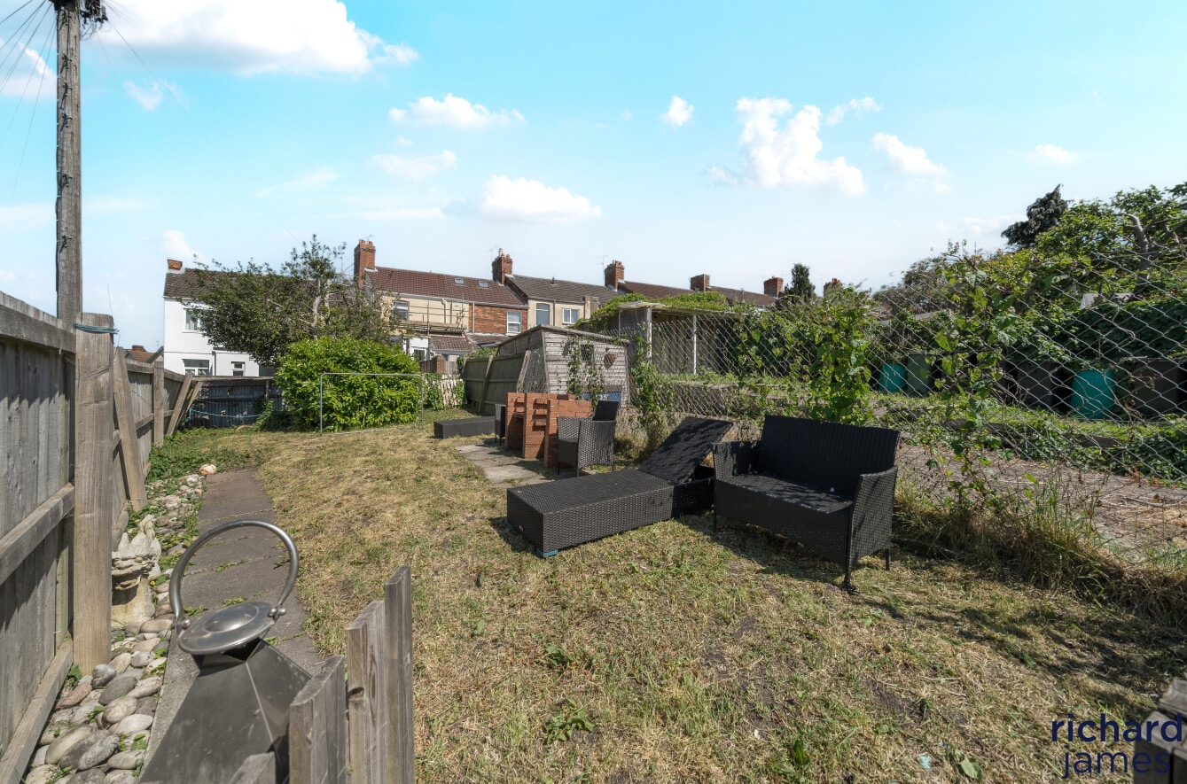 To the rear is an enclosed rear garden accessed via steps up to a good sized lawn area.