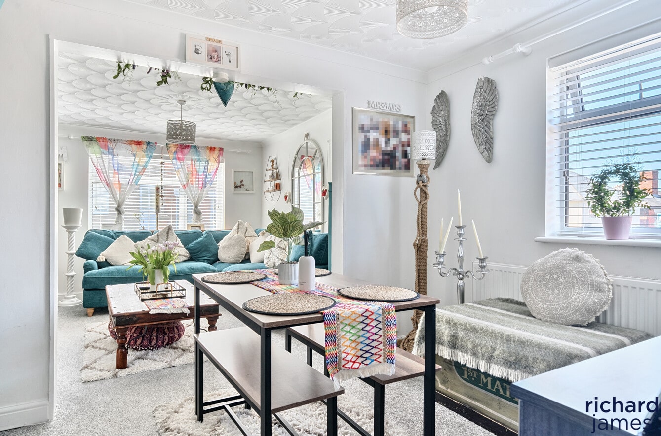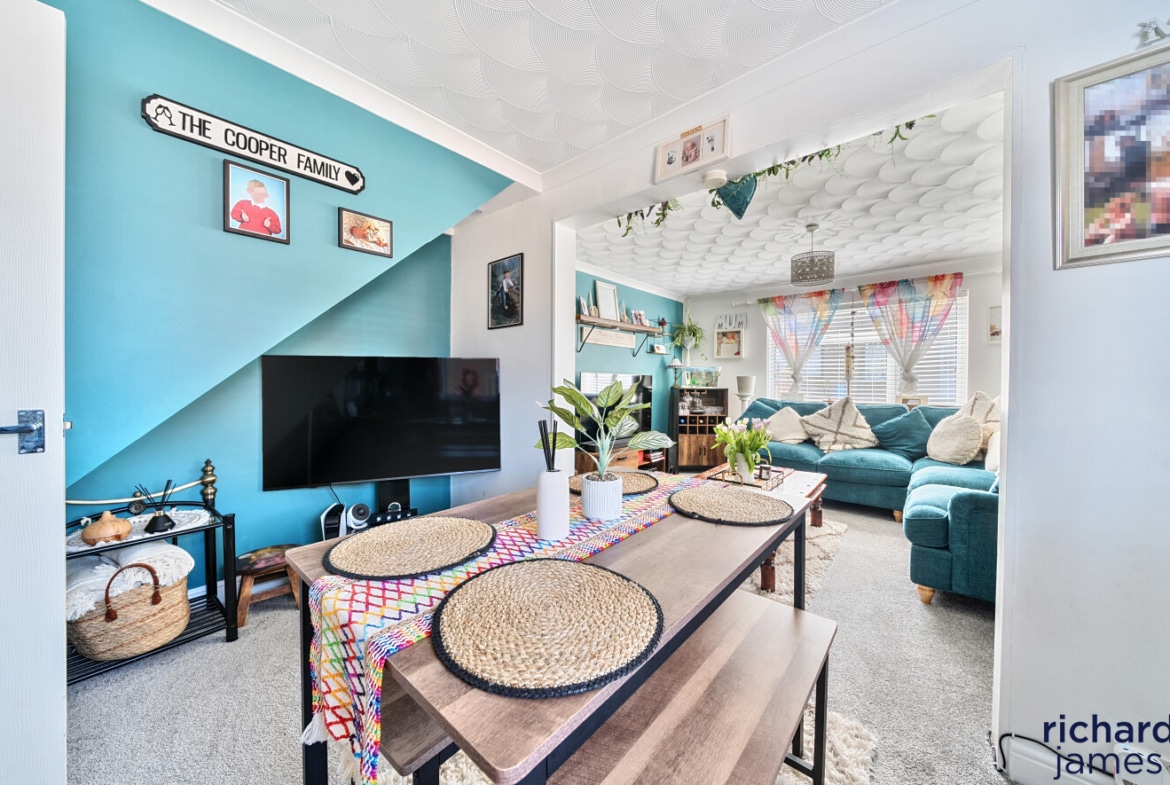 The ground floor living accommodation comprises; Entrance hall, a generous living room which is open to the dining room, a modern kitchen with an island in the centre plus the bathroom.