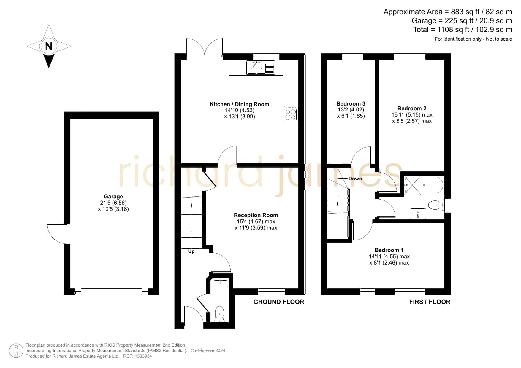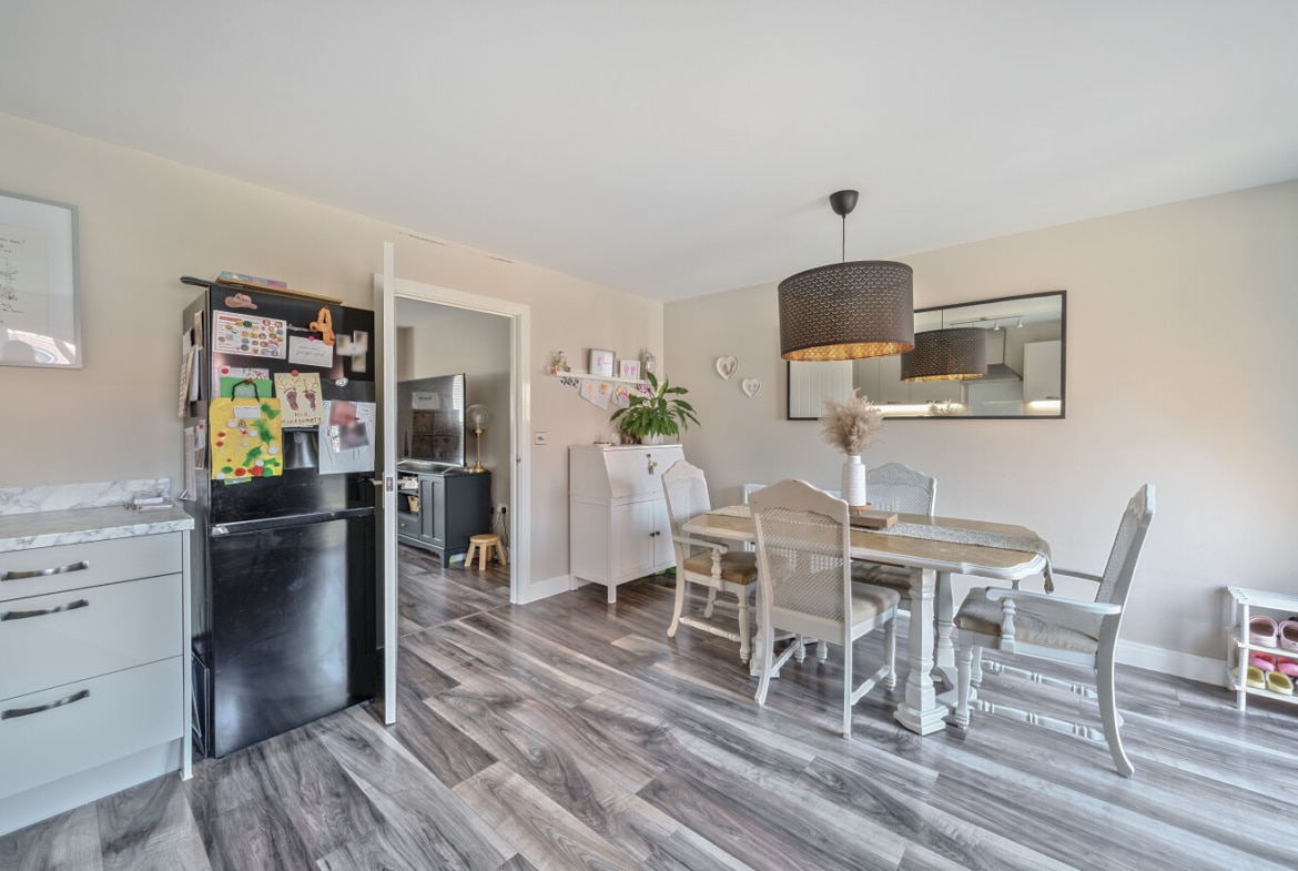 The ground floor features a welcoming entrance hall leading to a bright and comfortable reception room, ideal for relaxing or entertaining. To the rear, the modern kitchen/dining room is well-equipped with integrated appliances and offers ample space for family meals, with French doors opening onto the south-facing garden—perfect for enjoying sunny days and outdoor dining. A convenient cloakroom completes the ground floor.