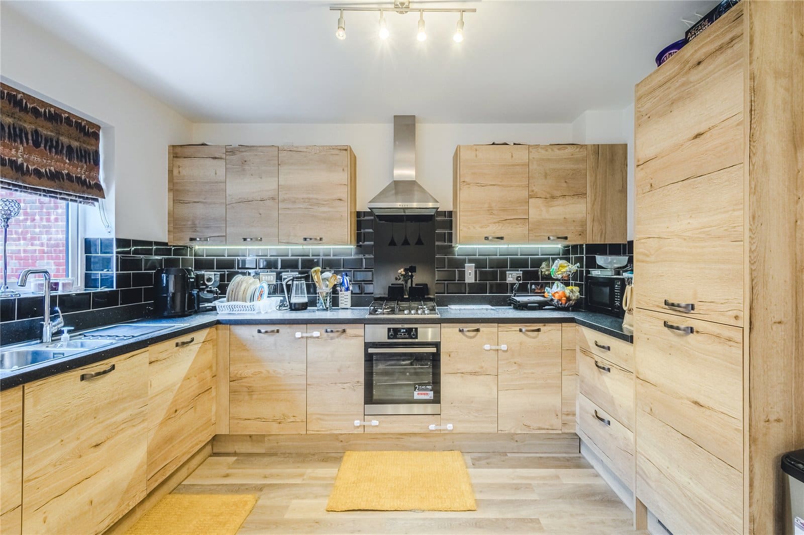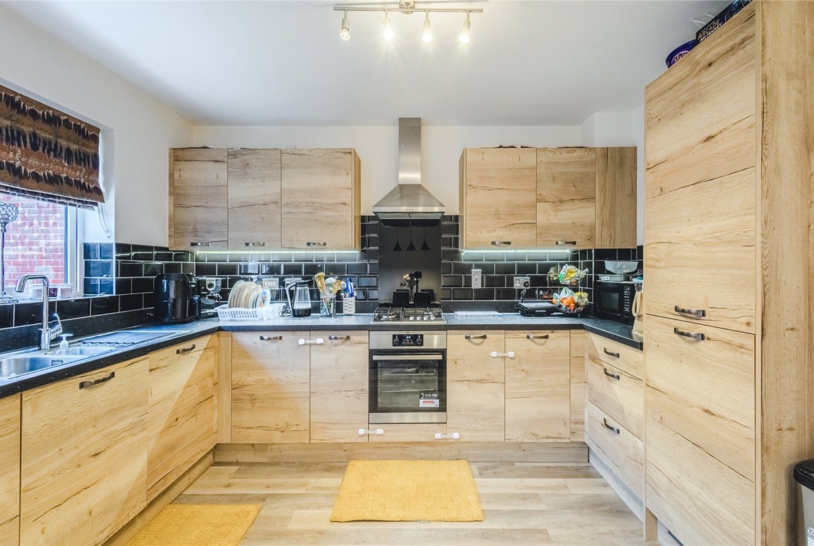 On entering the home, you are greeted by a front hall leading to the cloakroom, spacious living room and large kitchen diner. The kitchen is the heart of this home. With a modern finish, a range of integrated appliances and plenty of space for a good size dining table it’s great for entertaining.