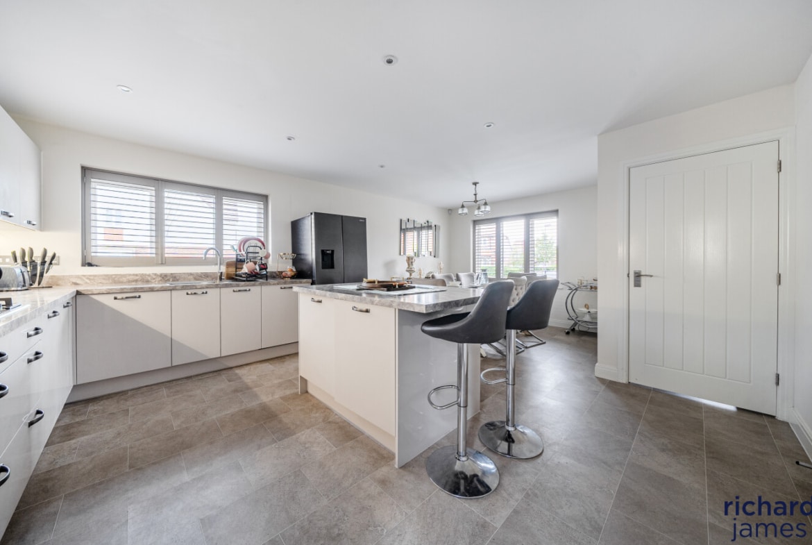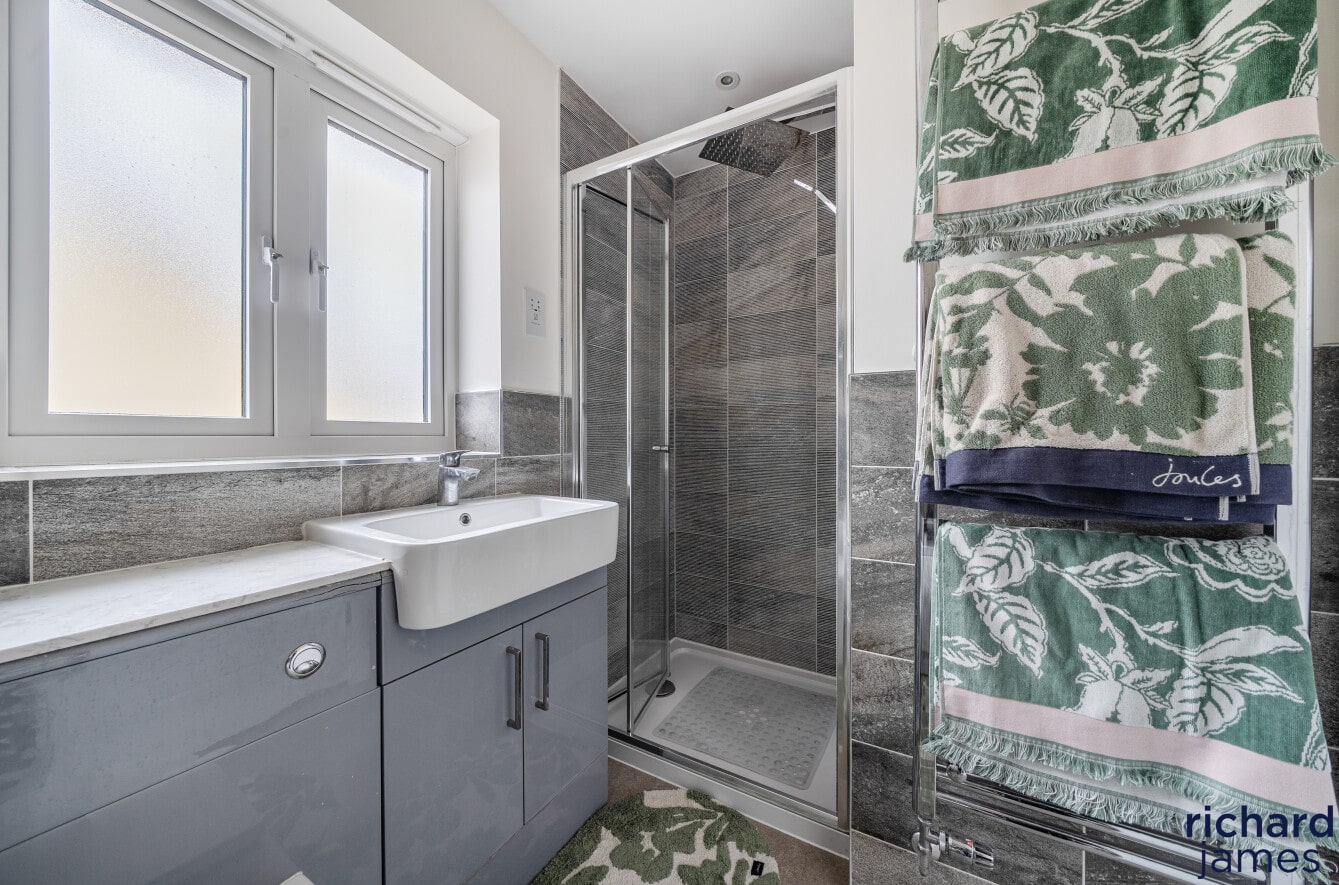 The ground floor features a bright and spacious 21-foot reception room, perfect for relaxing or entertaining. To the rear, a large open-plan kitchen and dining room provides an excellent social space, with plenty of room for cooking, dining and family time. There’s also a convenient downstairs WC located just off the entrance hall.