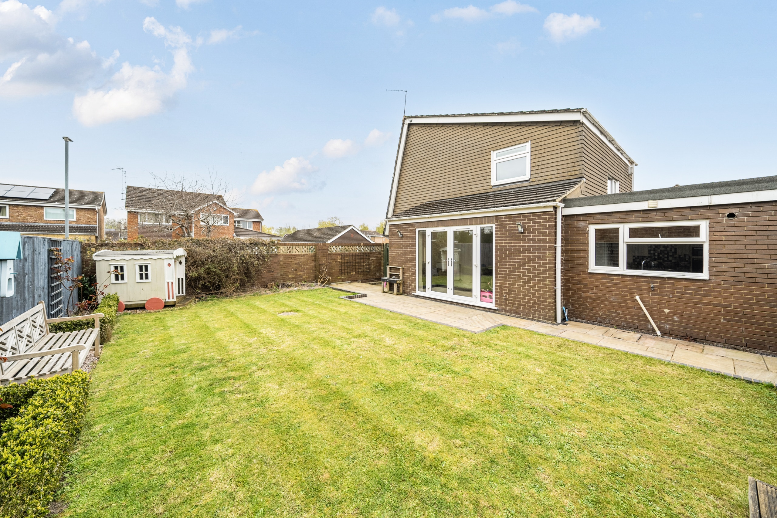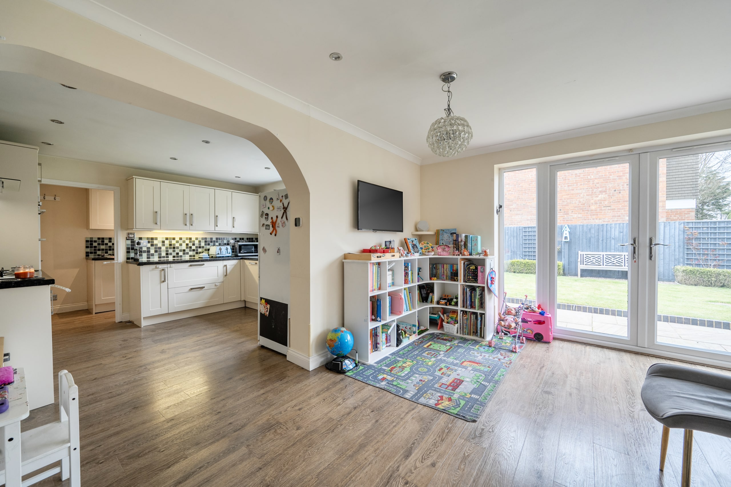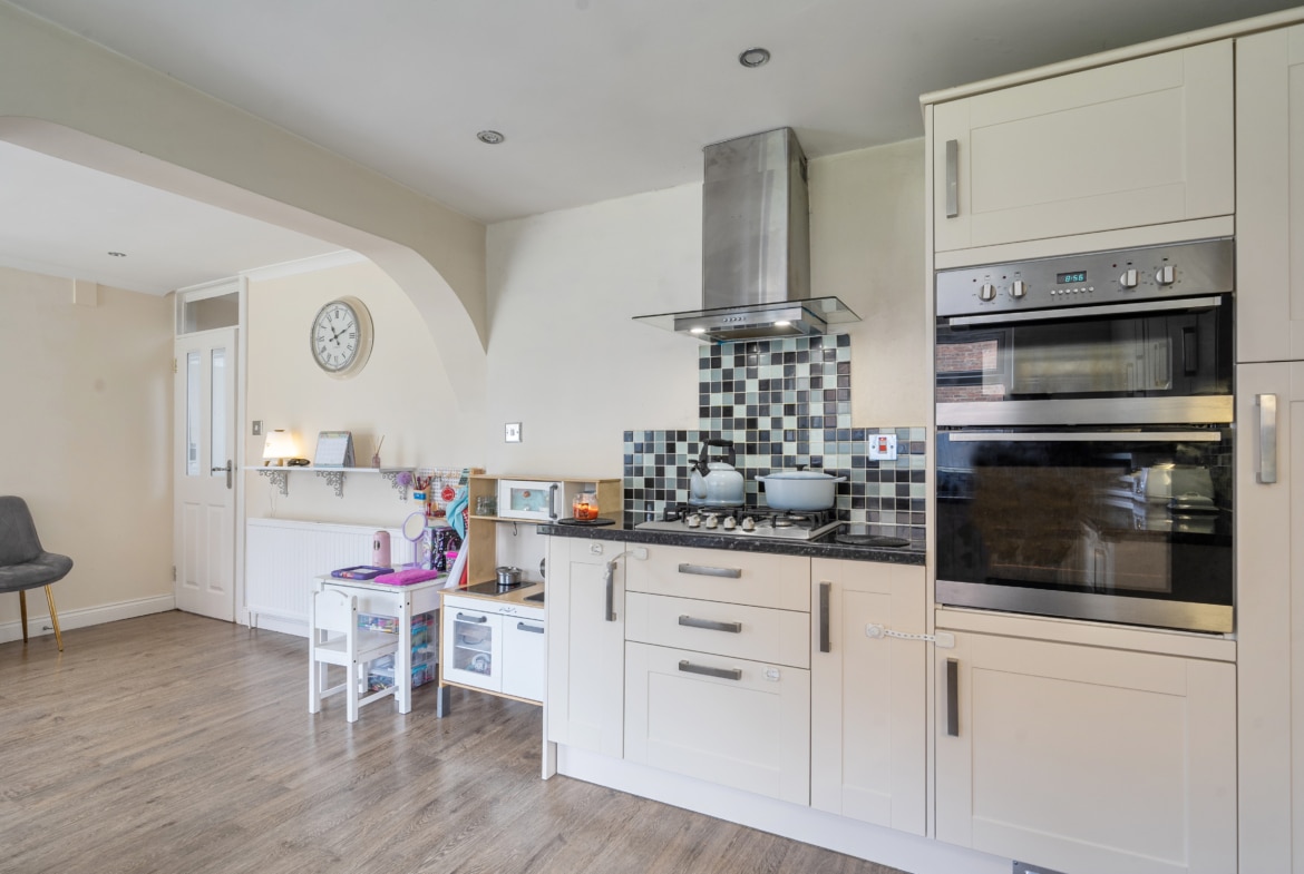 An extended, very well-presented and individually designed detached family home, offering three double bedrooms and ample scope for further extensions (STPP). The property has already been extended on the ground floor to provide a fantastic, bright, spacious open-plan kitchen/dining room opening onto the garden. There is also a superb 22ft living room. Situated on a corner plot there are generous gardens both front and rear, as well as a double garage which has power and lighting.
