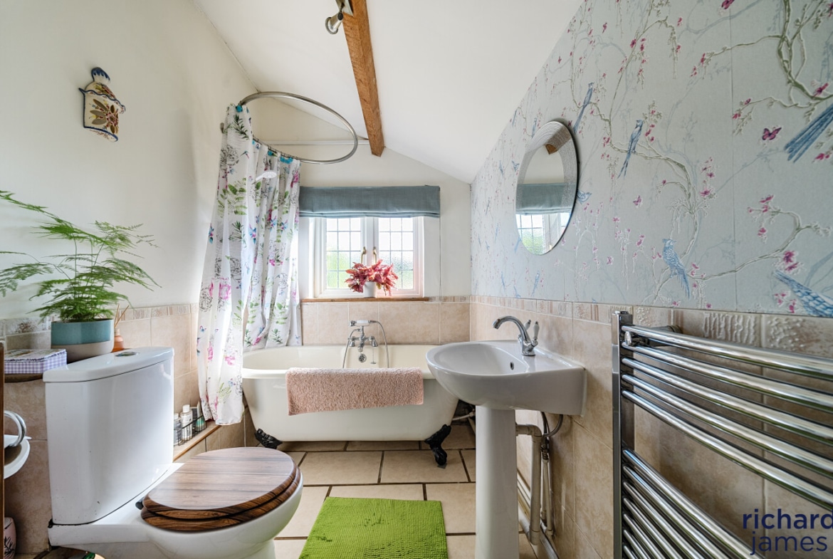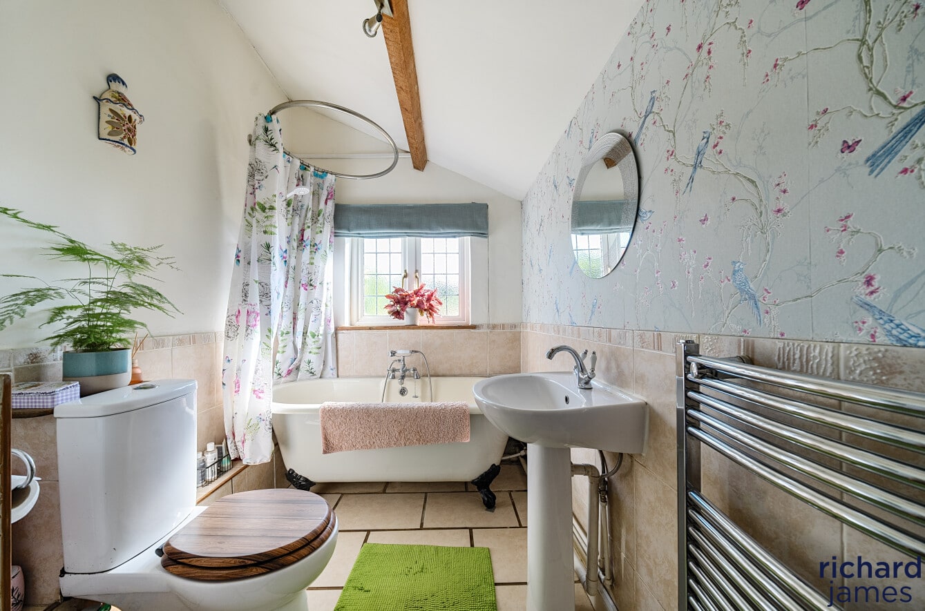Upstairs, the two double bedrooms offer sweeping views of the surrounding farmland. Whether you’re gazing at the morning mist over the fields or watching the evening sky transform with the sunset, these rooms provide a daily dose of serenity.