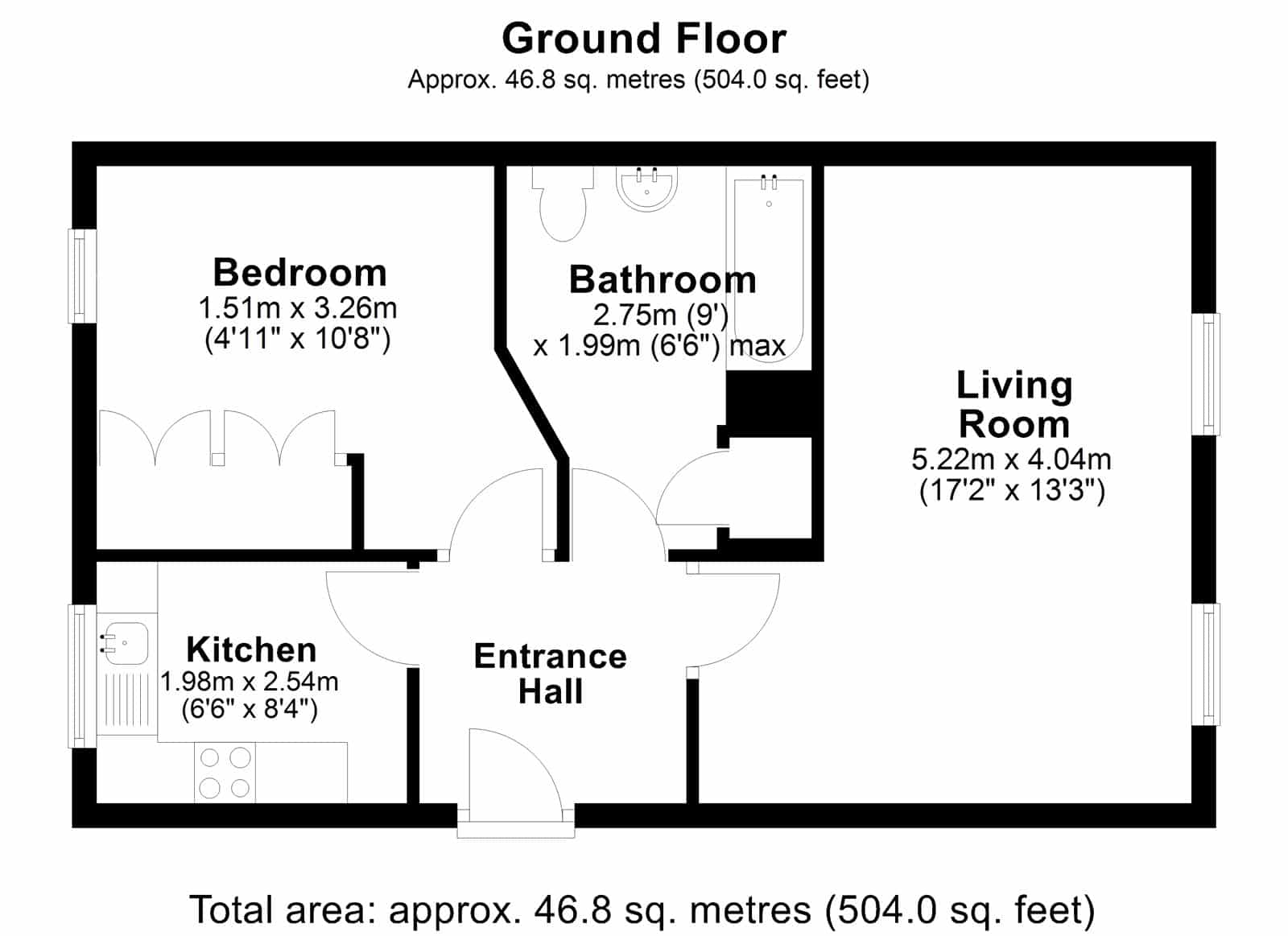 The property briefly compromises of entrance hall, fitted kitchen, spacious living room, double bedroom with built-in wardrobes, and fitted bathroom.