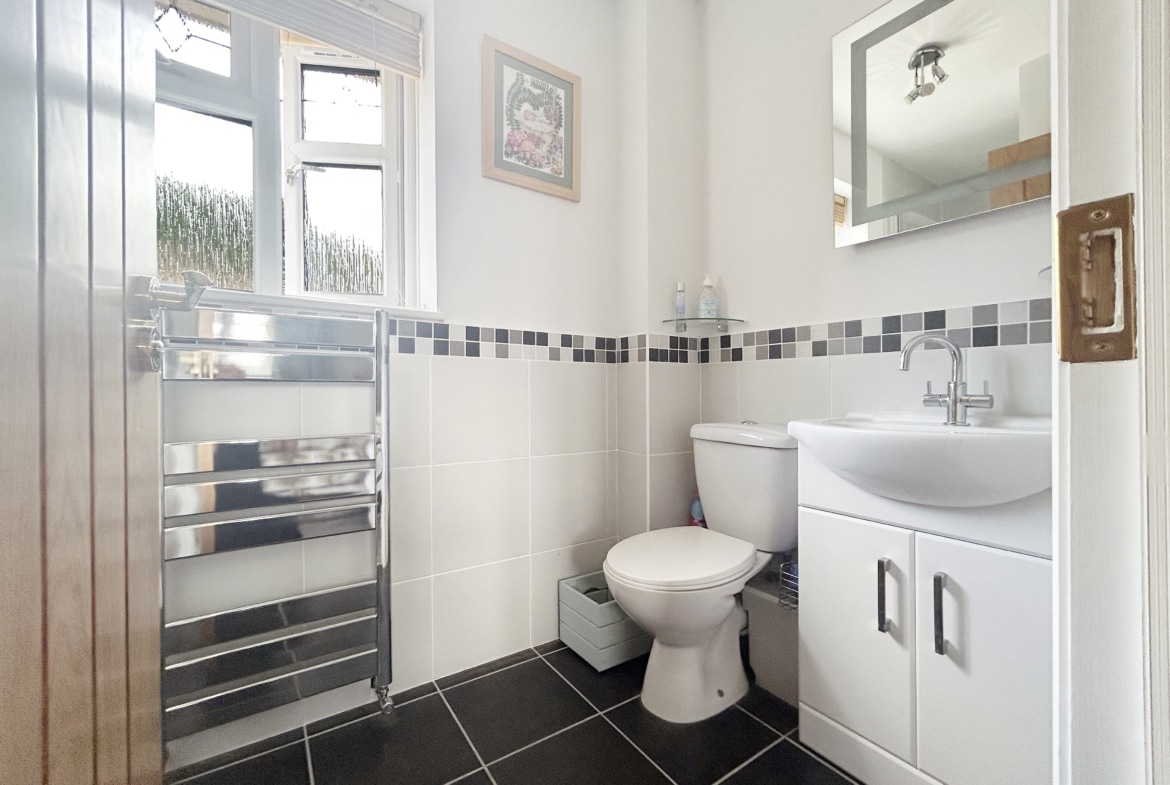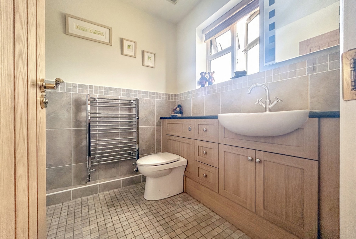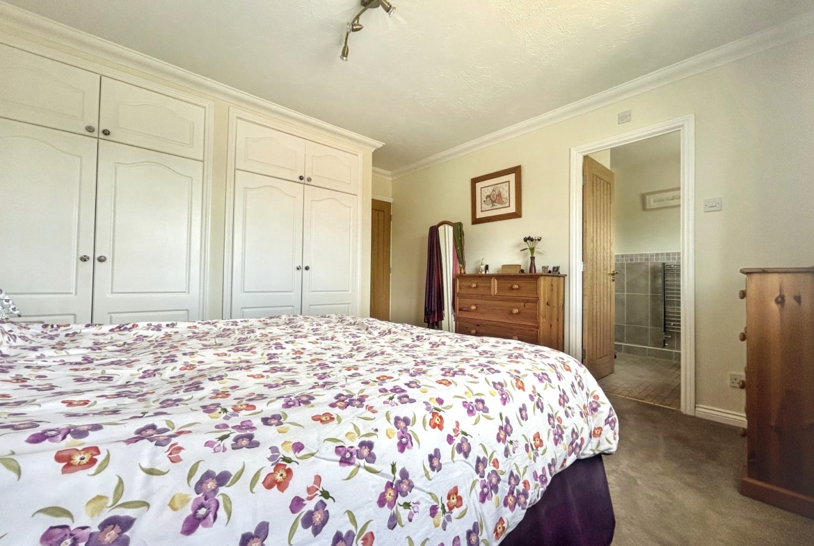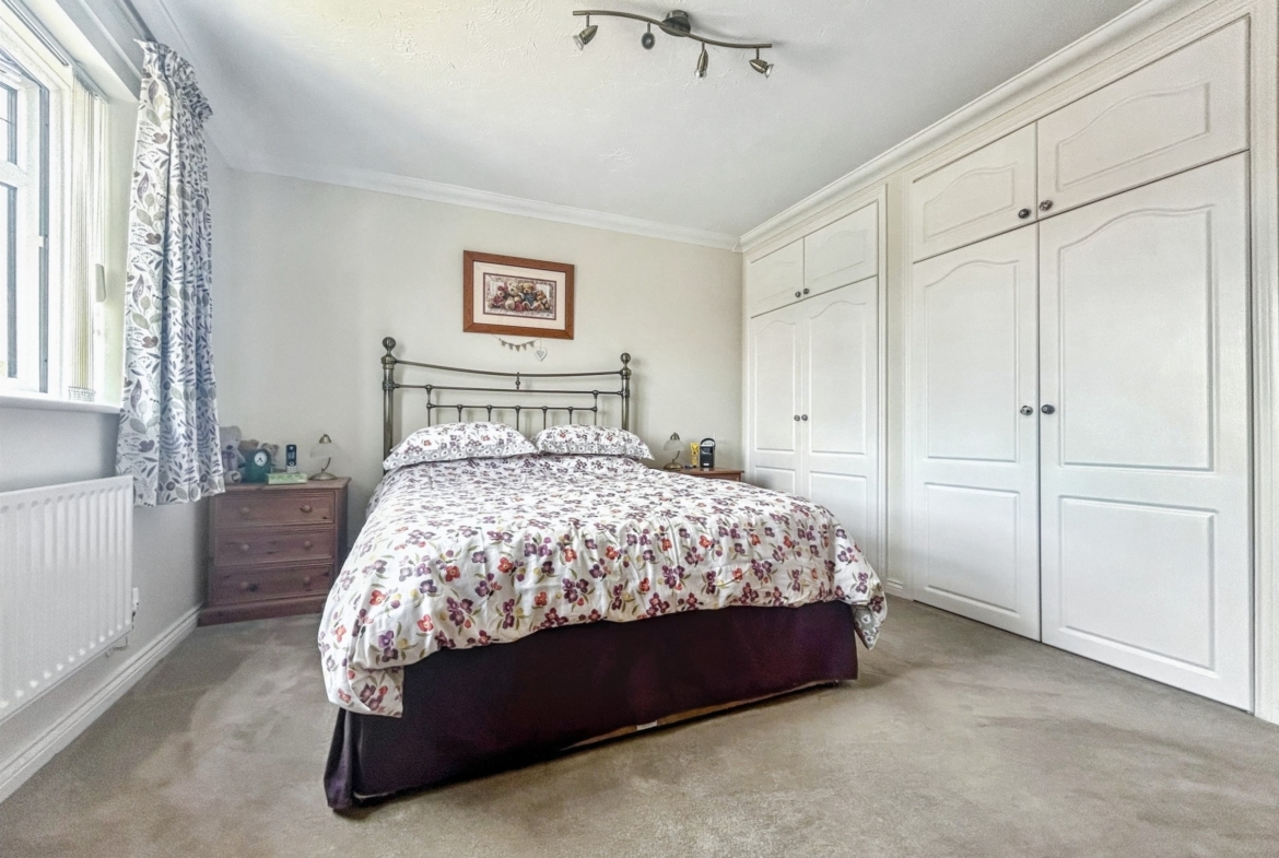 Upstairs, the property features three generous double bedrooms, two of which benefit from en-suite shower rooms, alongside a well-appointed family bathroom. A fourth large single bedroom completes the first-floor accommodation, offering flexibility for use as a study, nursery, or guest room.