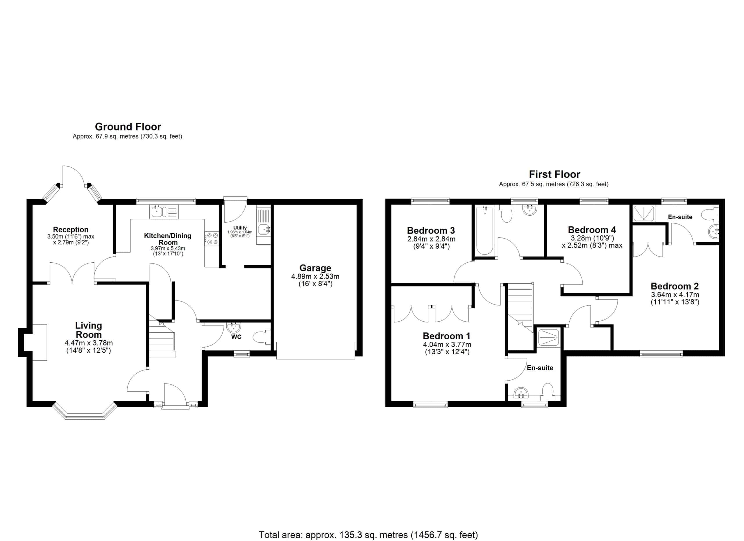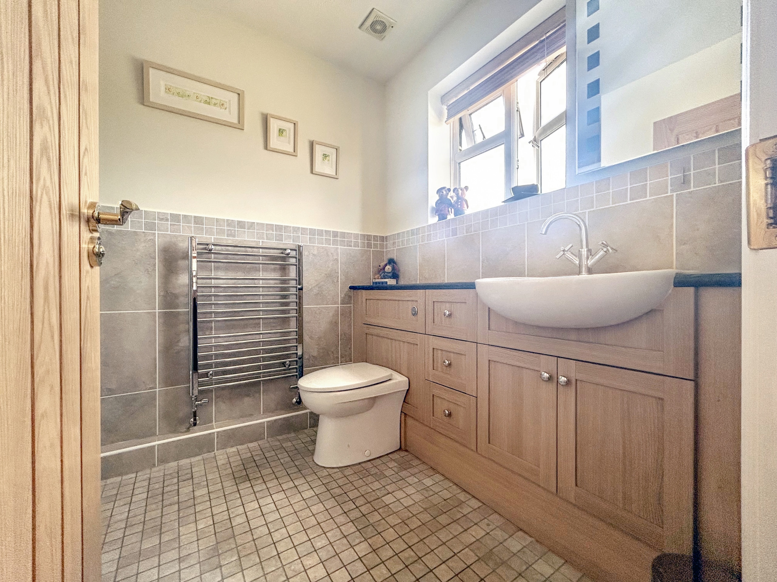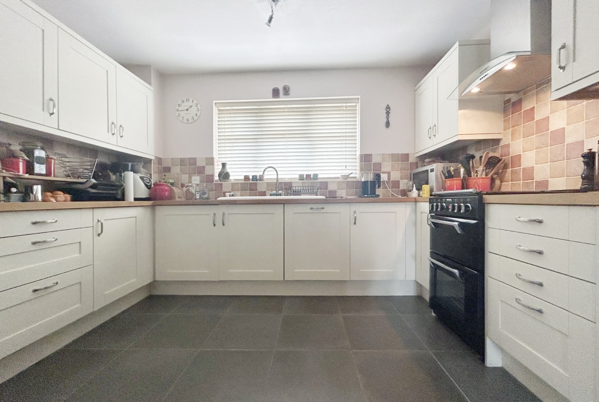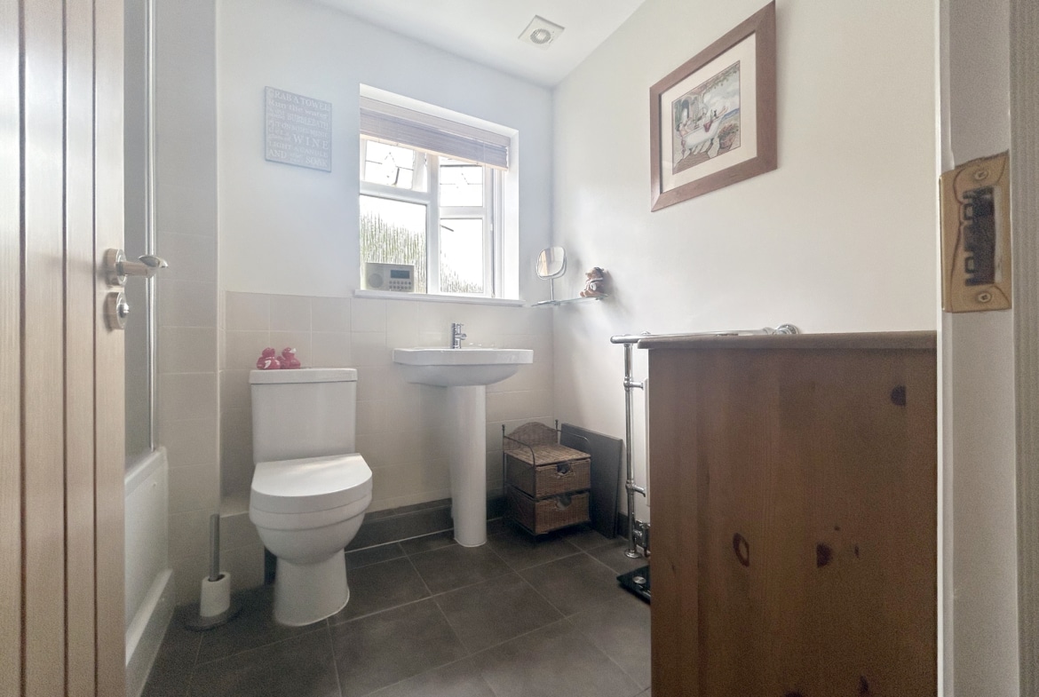 Upstairs, the property features three generous double bedrooms, two of which benefit from en-suite shower rooms, alongside a well-appointed family bathroom. A fourth large single bedroom completes the first-floor accommodation, offering flexibility for use as a study, nursery, or guest room.