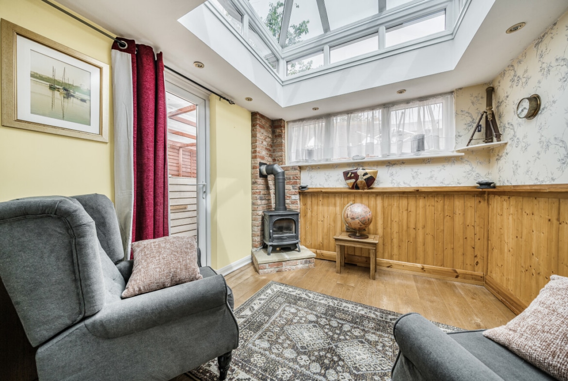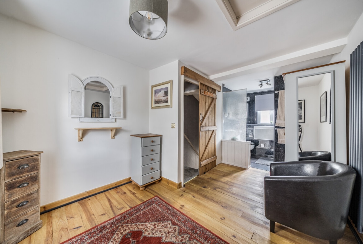 Upstairs, the master bedroom comes complete with a contemporary en suite, and the second double bedroom offers plenty of space for guests, family, or even a creative studio setup.
