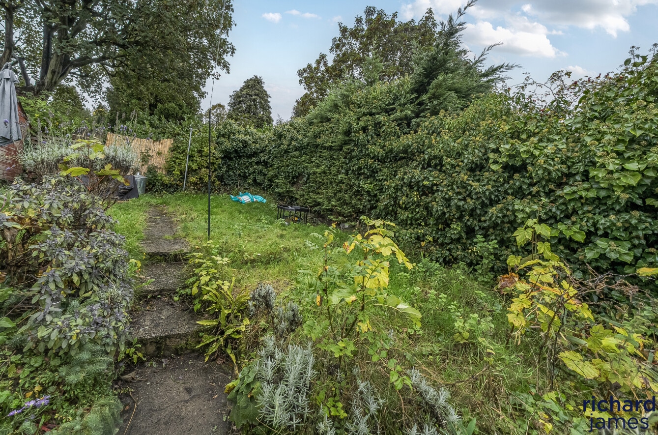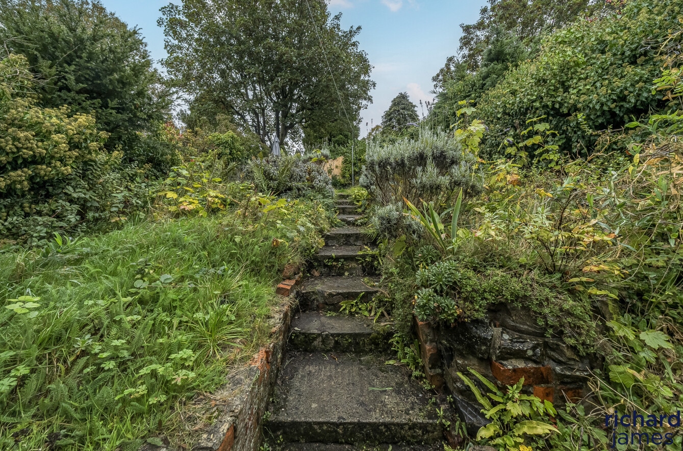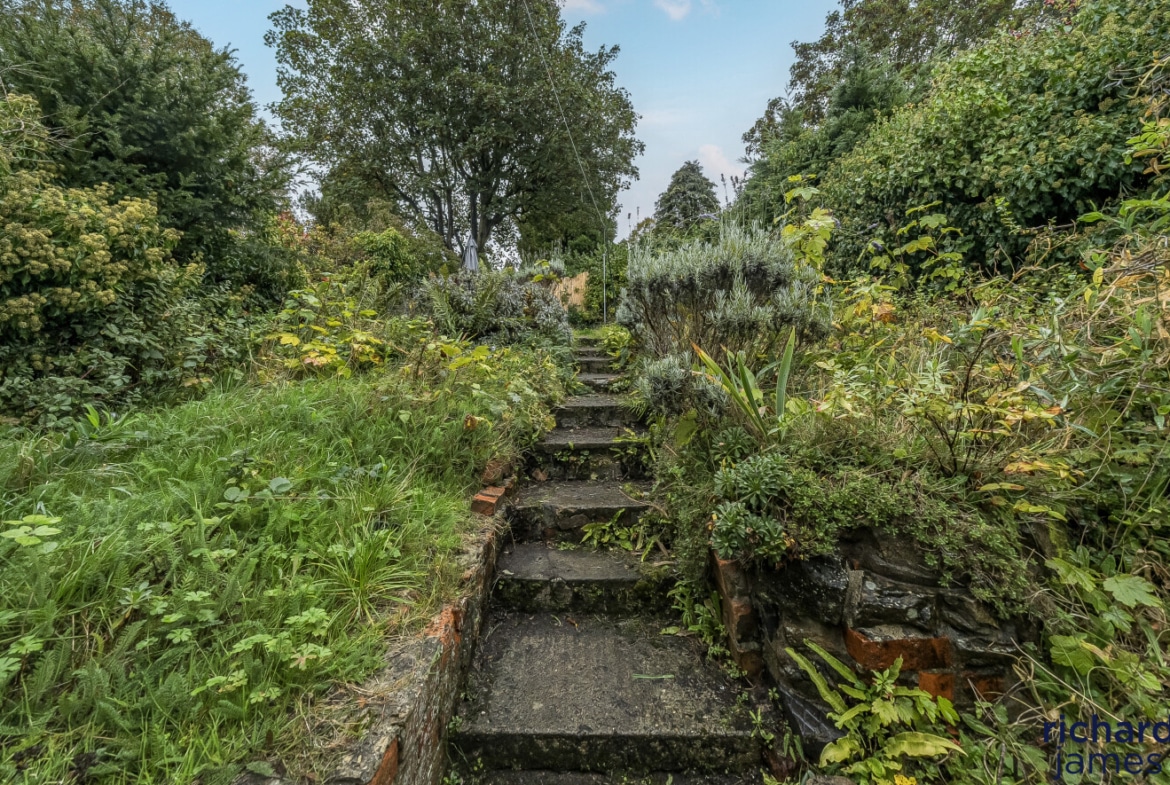 To the rear is an enclosed and private rear garden with steps leading up to a good sized lawn area.