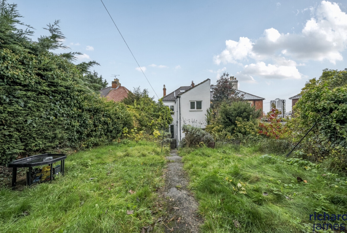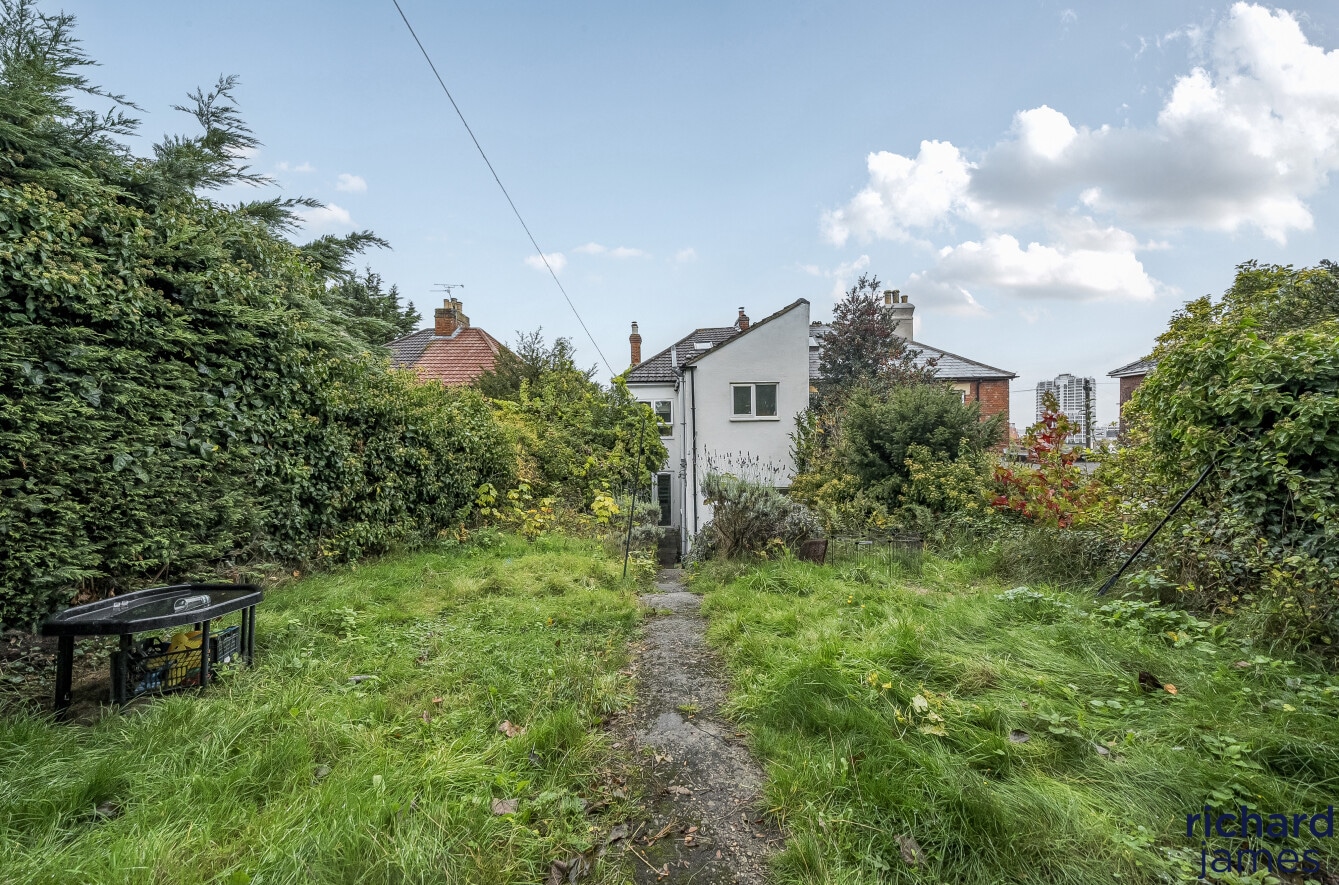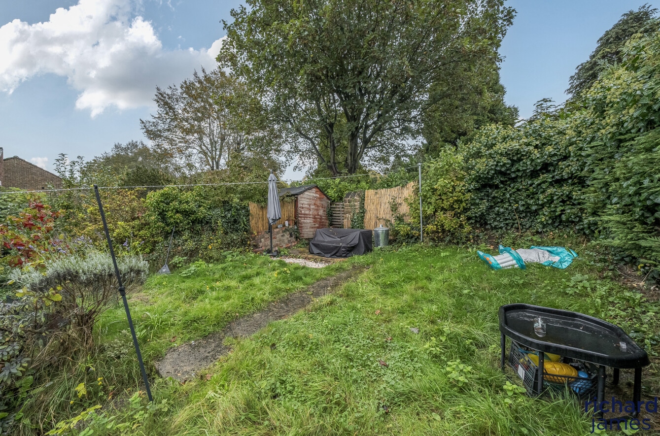 To the rear is an enclosed and private rear garden with steps leading up to a good sized lawn area.