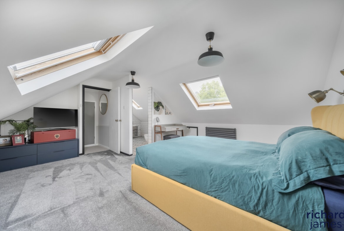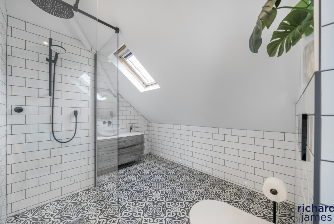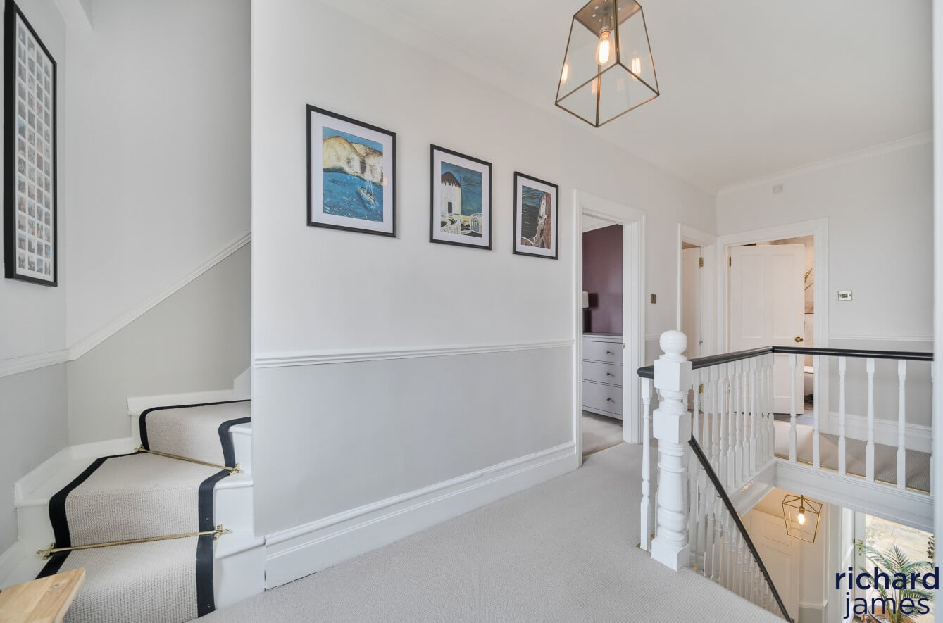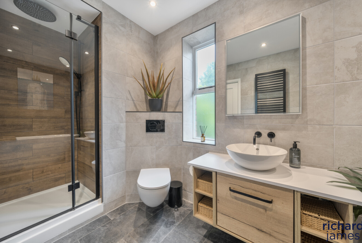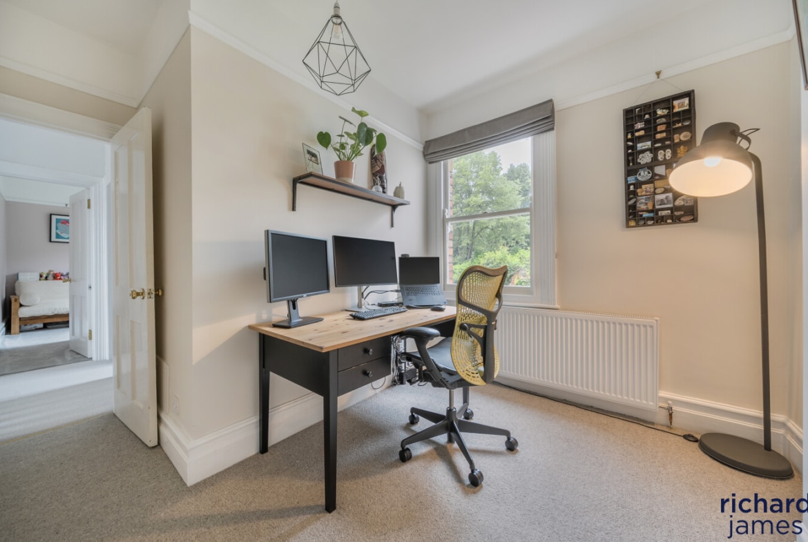 The first floor offers a stunning family bathroom with free standing bathtub and separate walk-in shower with four generously sized bedrooms, perfect for family living or a home office setup.