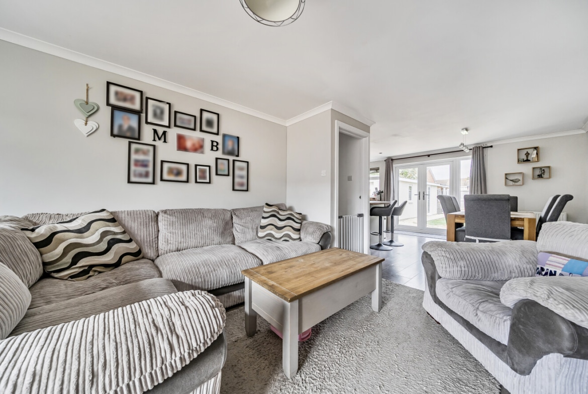 The heart of the home is the bright and expansive open-plan living space, featuring a generous lounge area that seamlessly leads into a beautifully finished kitchen. With ample worktop space, stylish cabinetry, and room for a large dining table, the kitchen is ideal for both family life and entertaining.