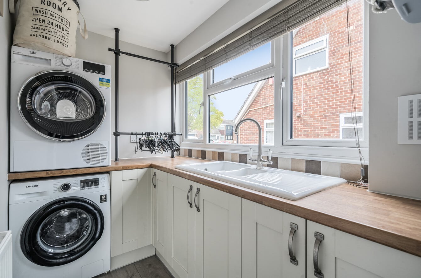 A convenient utility room just off the kitchen adds extra practicality, keeping laundry and household tasks tucked away. At the rear of the home, you’ll find a generous garden – perfect for relaxing or hosting – and a separate study area that follows from the garage, ideal for working from home.