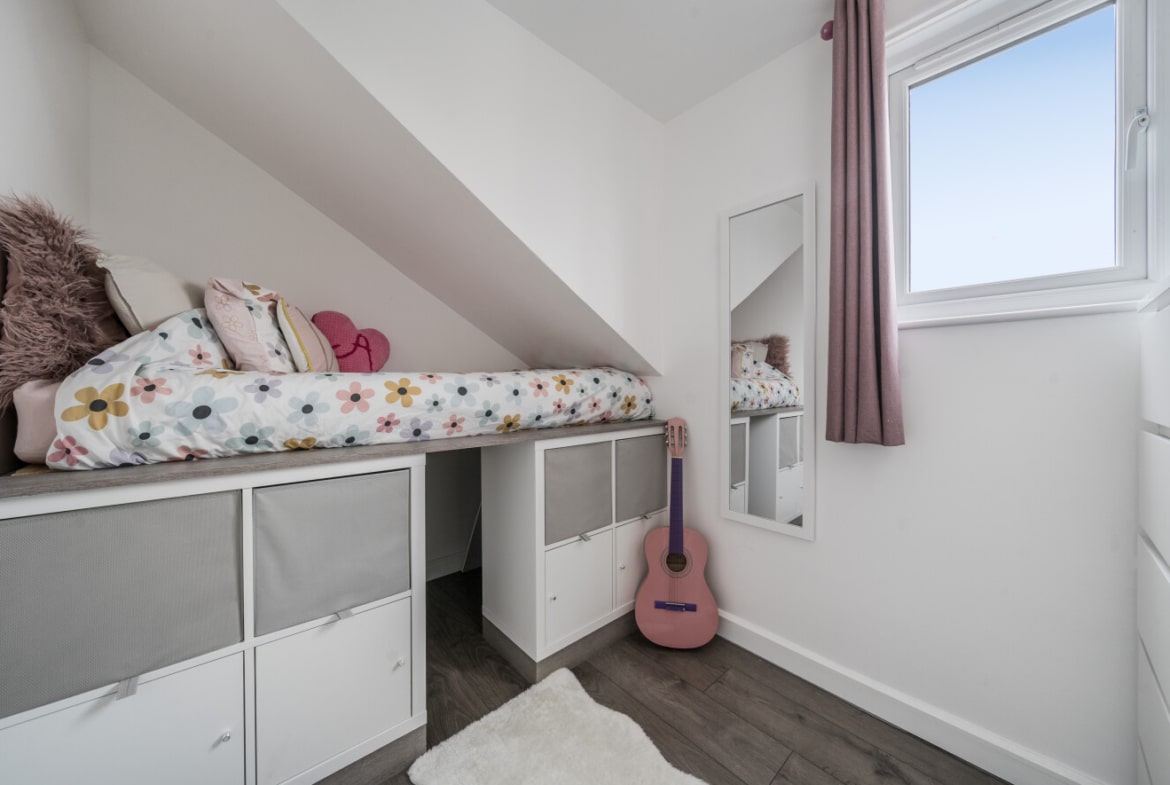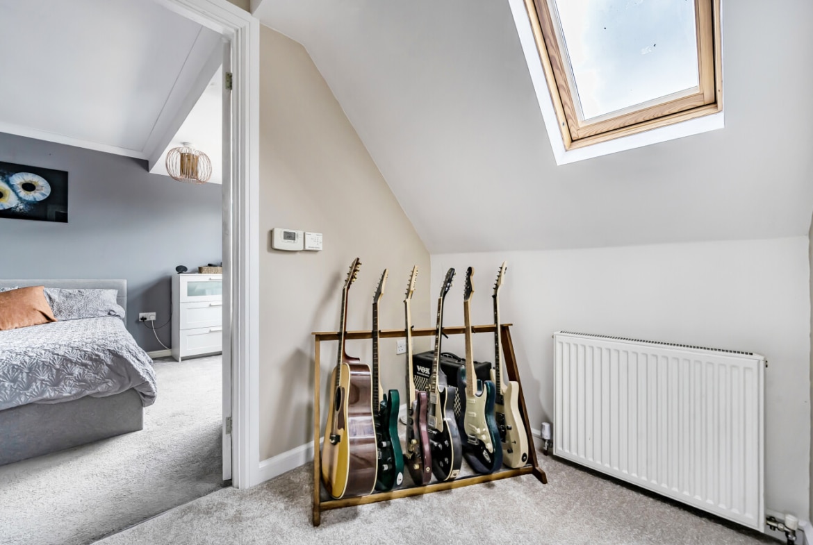 Upstairs, the property boasts a beautifully finished modern family bathroom, a bright and spacious master bedroom, and two additional single bedrooms, both thoughtfully decorated and ideal for children, guests, or further office space.