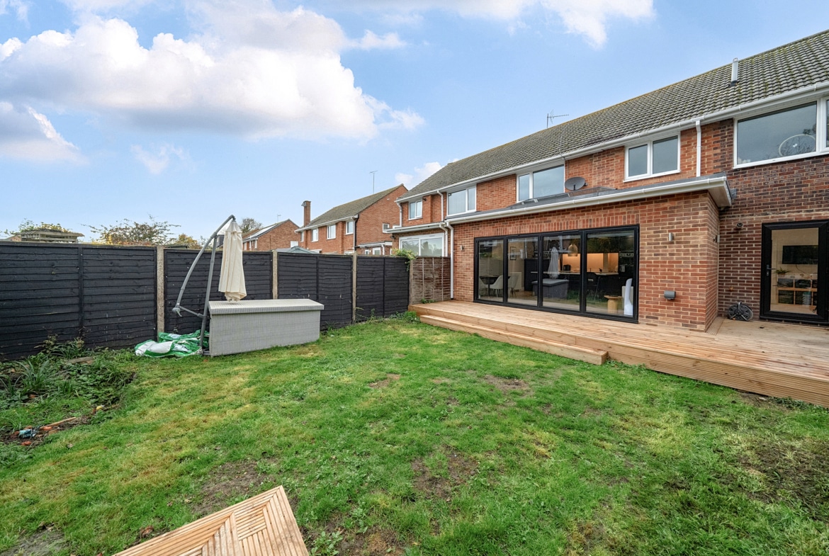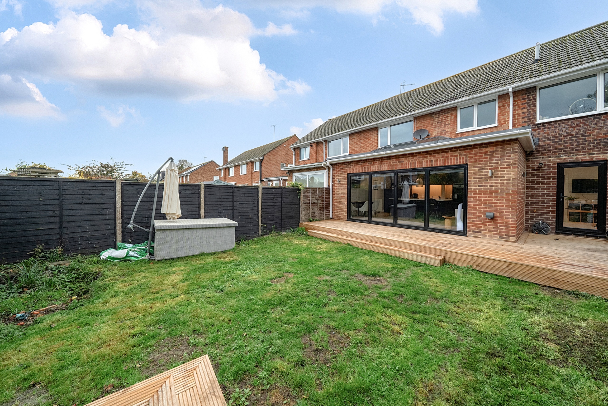 Outside, the rear garden offers privacy and tranquility, with decking and lawn areas ideal for relaxing or dining al fresco. The front driveway provides parking for multiple vehicles and enhances the property’s attractive curb appeal.