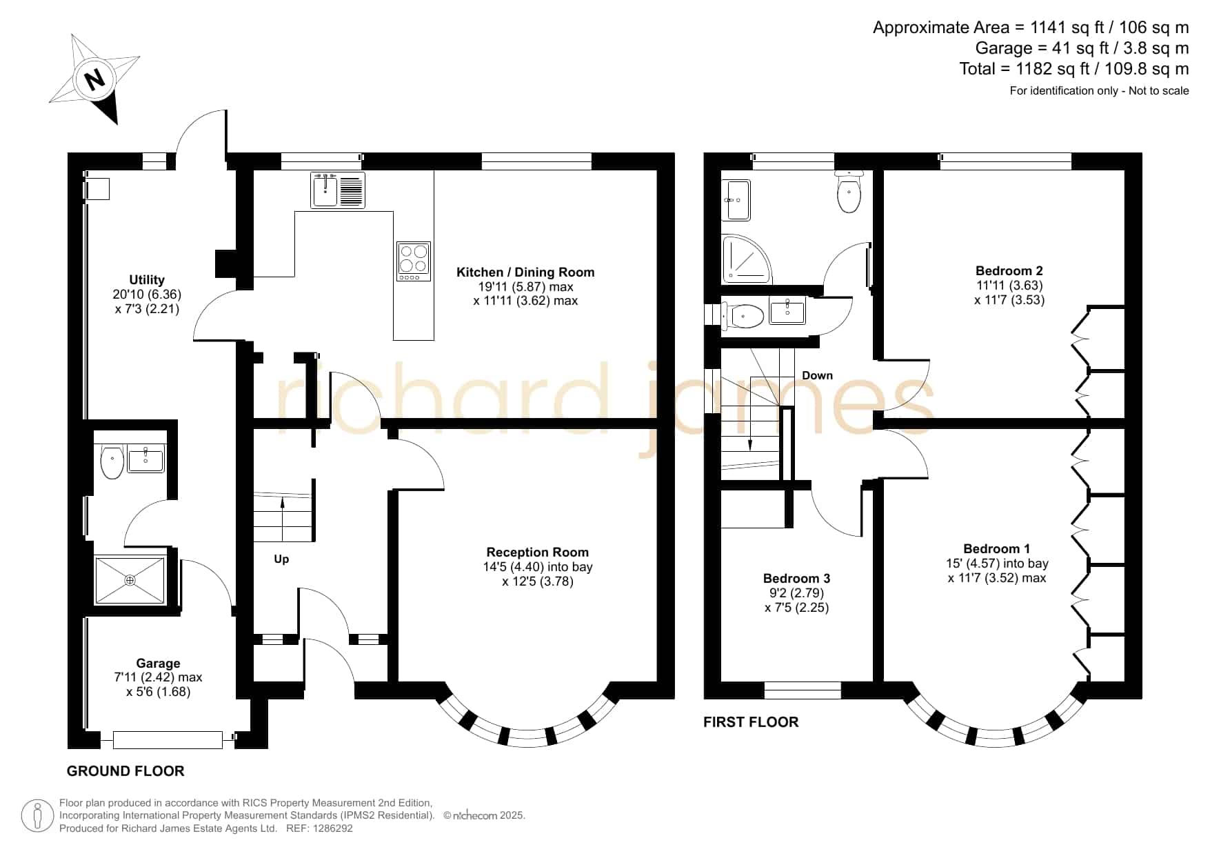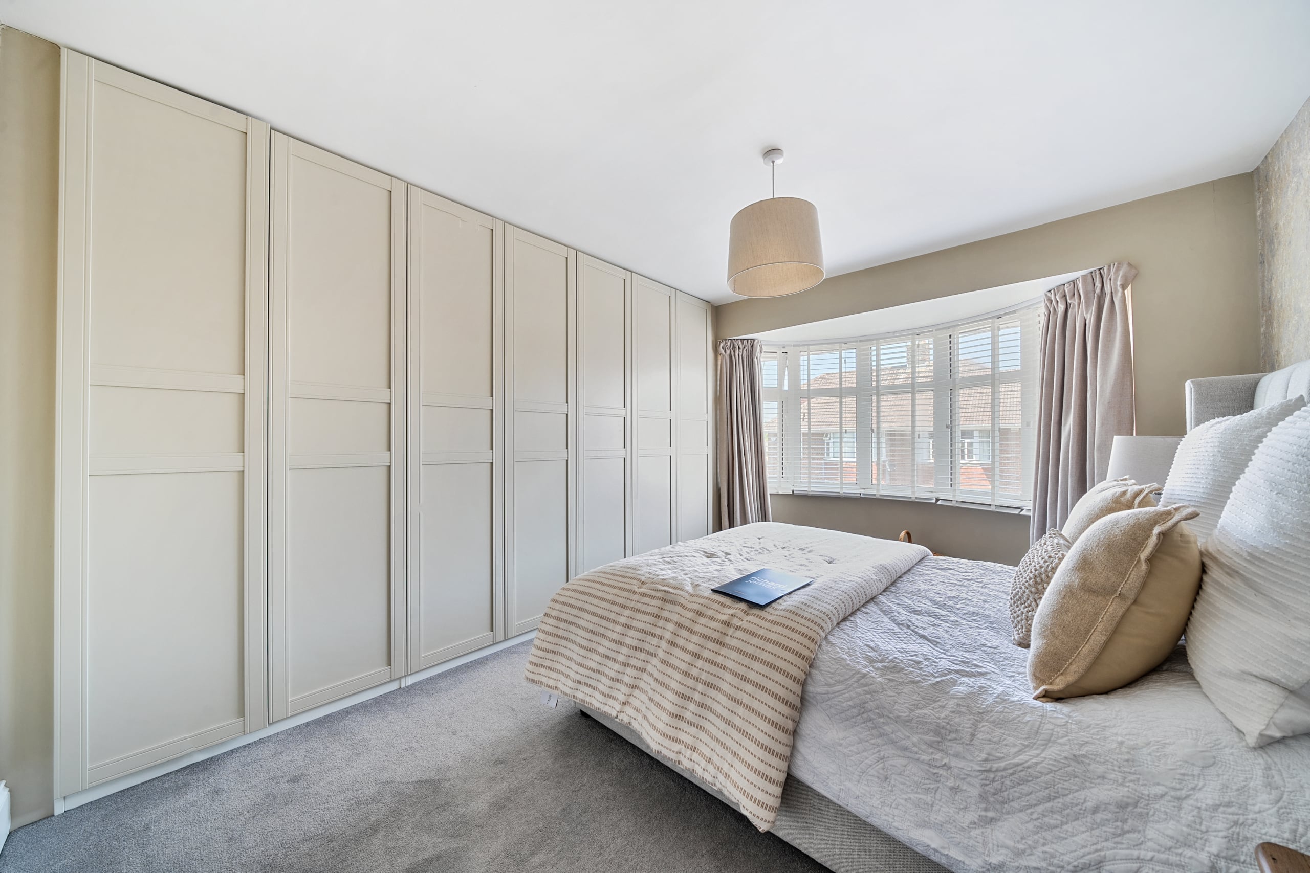 Upstairs is home to three bedrooms, two of which are great sized doubles with fitted wardrobes. The master also benefits from the bayfronted window which is a fanastic feature on this type of house. The third bedroom also provides storage. The main family bathroom is also located on this floor, the bath has been replaced with a walk-in shower. There is a further seperate toilet next door also.