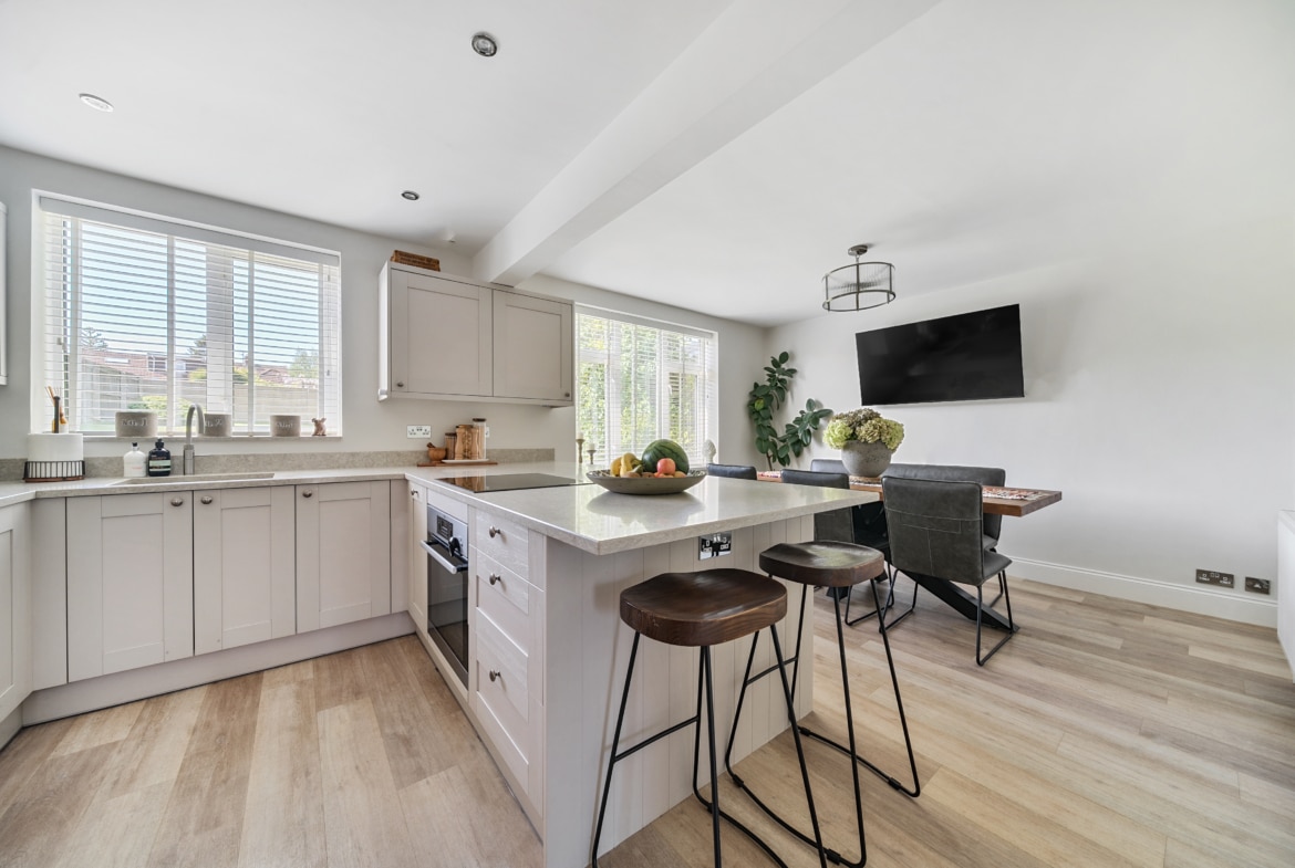 Upon entry you are greeted by a welcoming entrance hall, the bayfront living room is found on your right with plenty of space for furnishings. The hub of the property is the kitchen/dining space featuring modern units with quartz worktops and penisula unit with ample seating to host friend and family gatherings. The newly fitted utlity room can be found on your left providing access to the downstairs shower room.