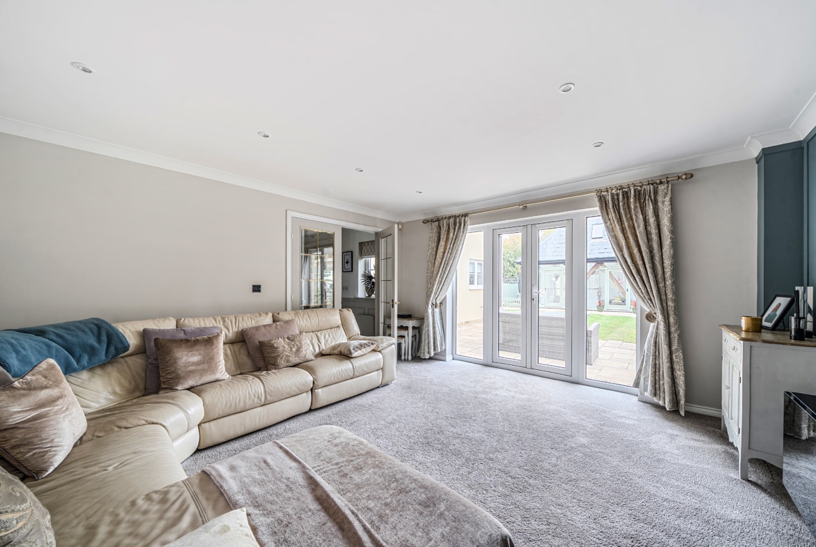 Upon entering, you are welcomed by a spacious entrance hall that leads to a bright, dual-aspect sitting room with French doors opening onto the garden. There is also a versatile snug, ideal as a dining room, playroom, or home office. The modern kitchen/dining area is located at rear of the property and really is the heart of the home, offering ample space for family living and entertaining, with another set of French doors leading directly to the garden. A convenient downstairs WC completes the ground floor.