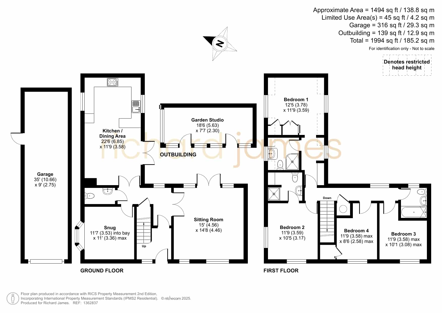 Upstairs, you’ll find four well-proportioned bedrooms. Two of the bedrooms benefit from their own ensuite shower rooms, while the remaining two are served by a stylish family bathroom.