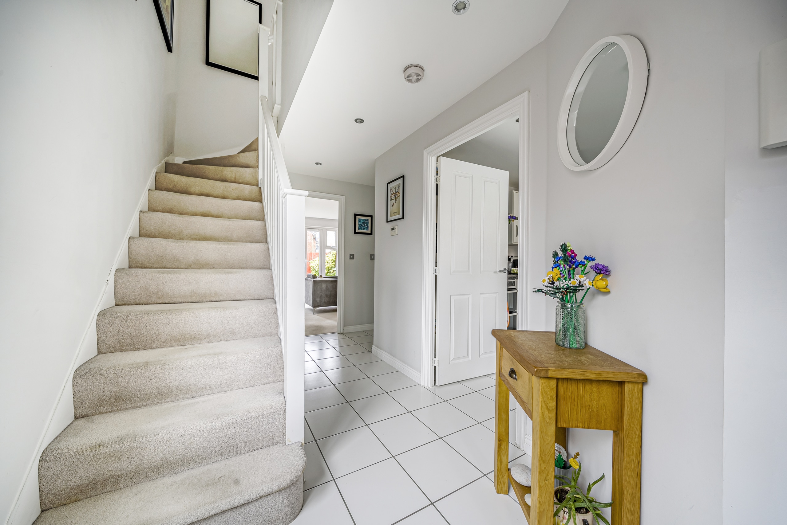 Upstairs, the master bedroom benefits from its own en-suite shower room, while two further well-proportioned bedrooms share a modern family bathroom.