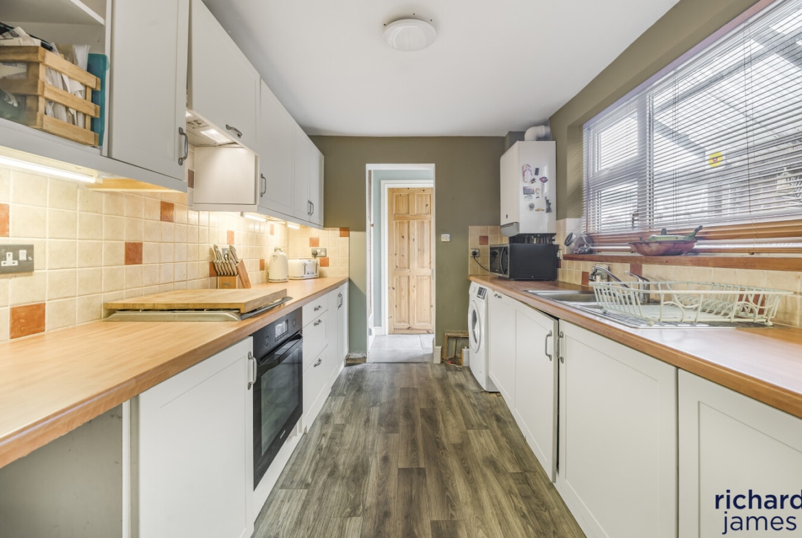 The property comprises of; entrance hall, living room, dining room, kitchen, small utility space and bathroom with a shower over the bath. Upstairs you’ll find two comfortable double bedrooms and the third bedroom currently with furniture and a double bed in. The property also benefits from a rear garden laid to patio and artificial grass, a garage and parking.