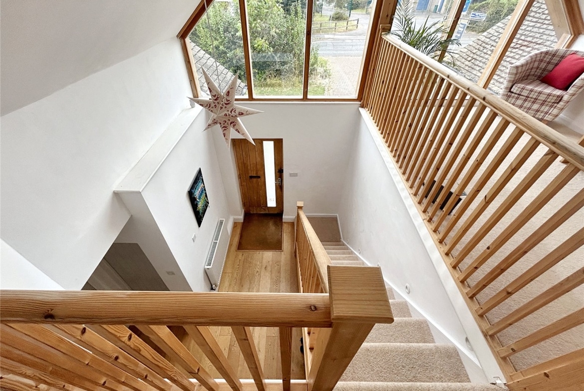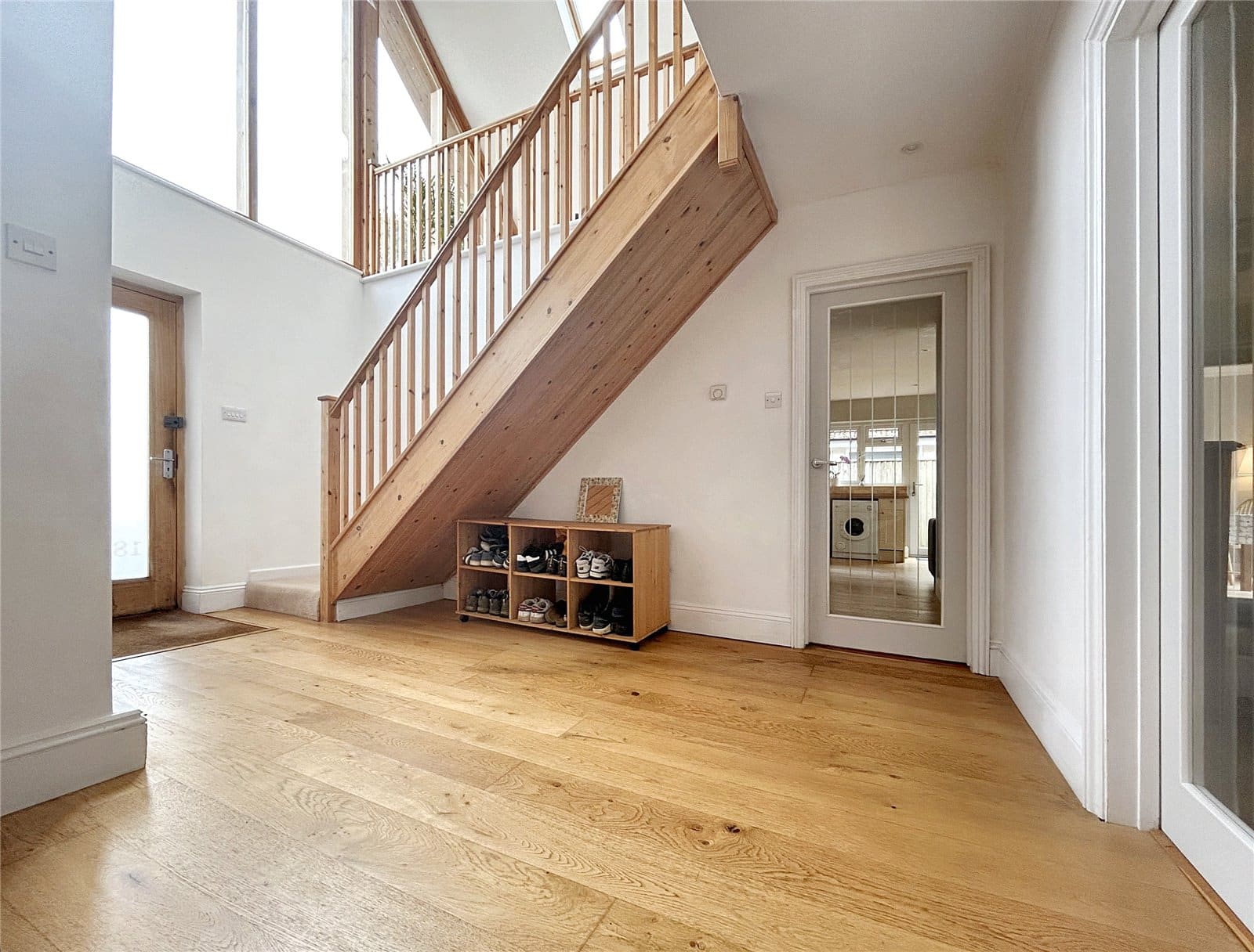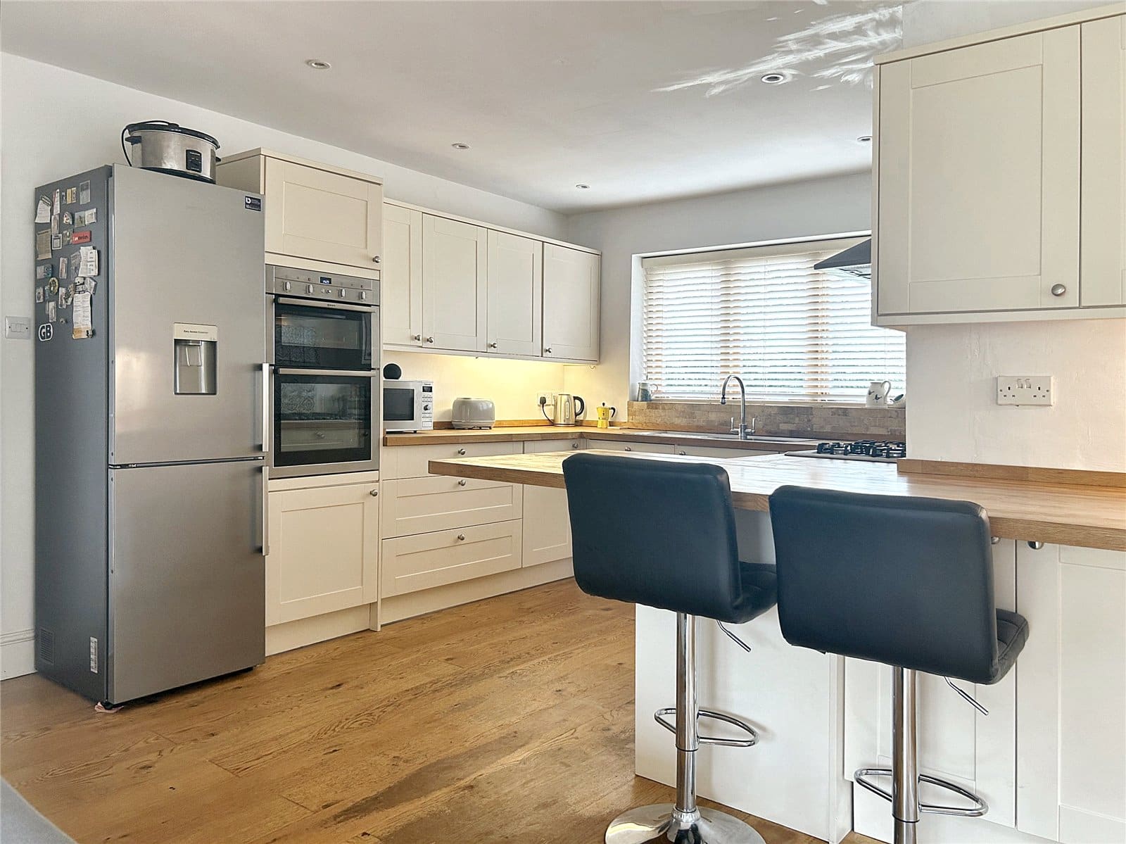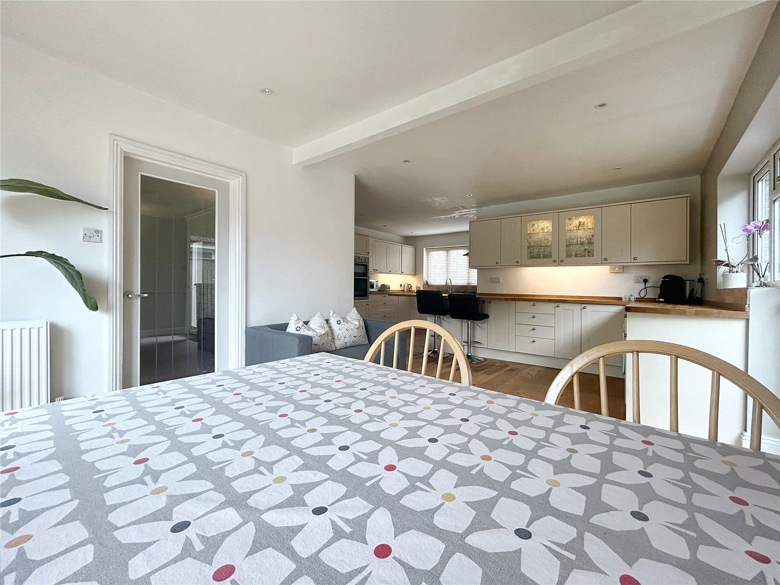 This spacious family home, offering over 2300sqft of versatile accommodation, is located in a well-established and desirable neighborhood. It offers private gardens, a dedicated garden office for remote work, and plenty of potential for personal touches.The home features an impressive entrance hall with vaulted ceilings and a galleried landing. The large sitting room boasts a feature fireplace and French doors leading to the garden. The recently updated kitchen includes ample floor and wall units, a breakfast bar, and numerous integrated appliances, flowing seamlessly into the dining room with additional garden access. The ground floor also includes two double bedrooms and a modern family bathroom with both a bathtub and a separate shower cubicle.The first floor is illuminated by a large east-facing picture window that offers stunning sunrise views over the Folly. It comprises three additional double bedrooms, all with built-in wardrobes, and a walk-in shower room that serves as a Jack and Jill bathroom to the master bedroom.Outside, the front of the property features driveway parking for multiple vehicles, a single garage, and a lawned garden. The rear garden is mature and private, with fruit trees, hedging, and a west-facing patio perfect for enjoying the summer sun. A sizable self-contained workshop/annex in the garden could serve as a home office, fitness studio or craft room, complete with a kitchen area and an enclosed shower room with a WC.Additional benefits of the property include owned solar panels, an electric car charger, modern Gas central heating and uPVC double glazing throughout. The property is connected to mains utilities.
