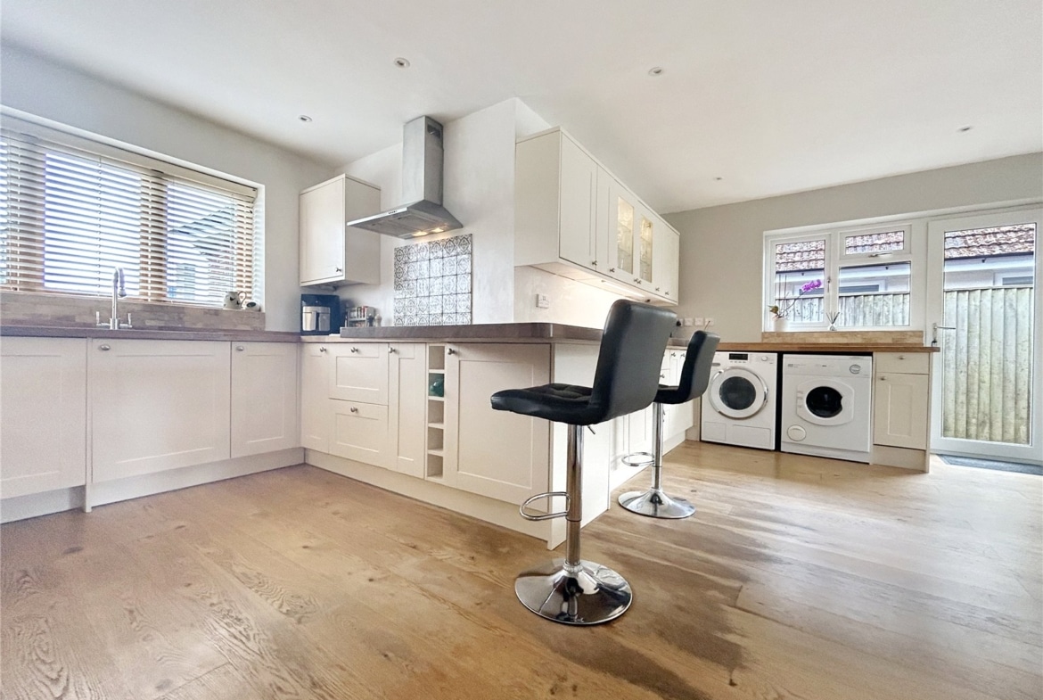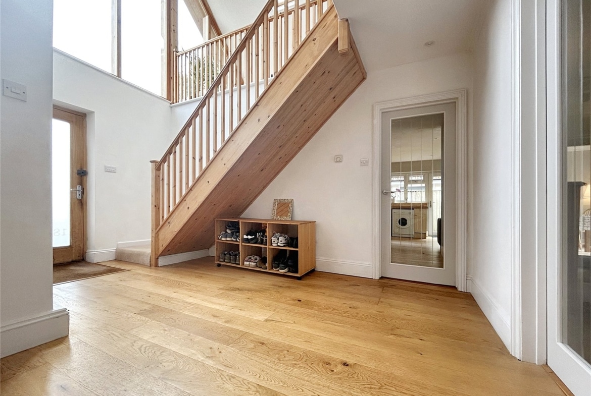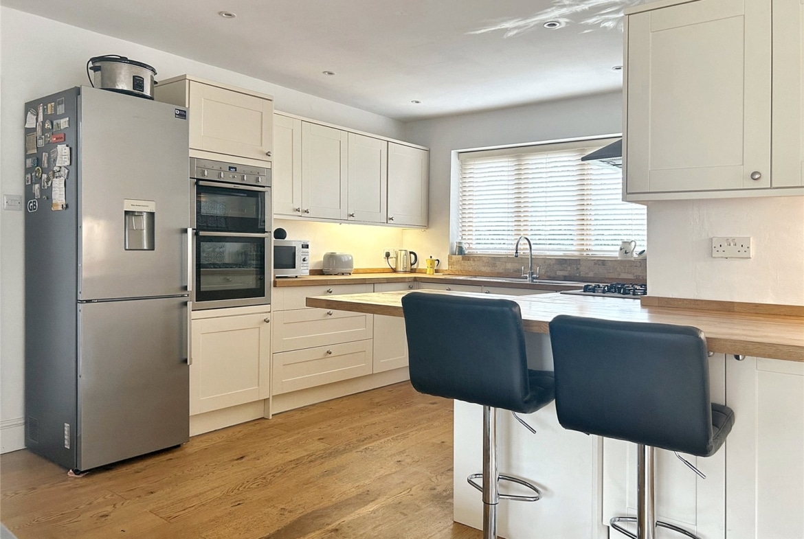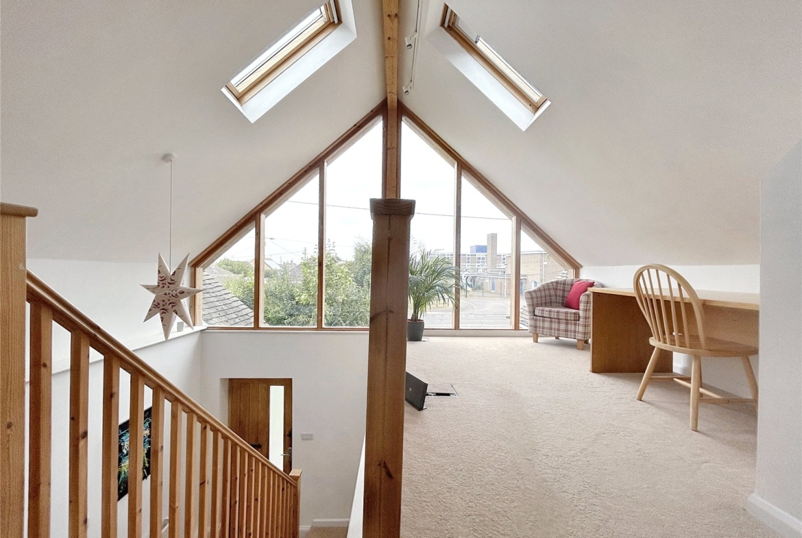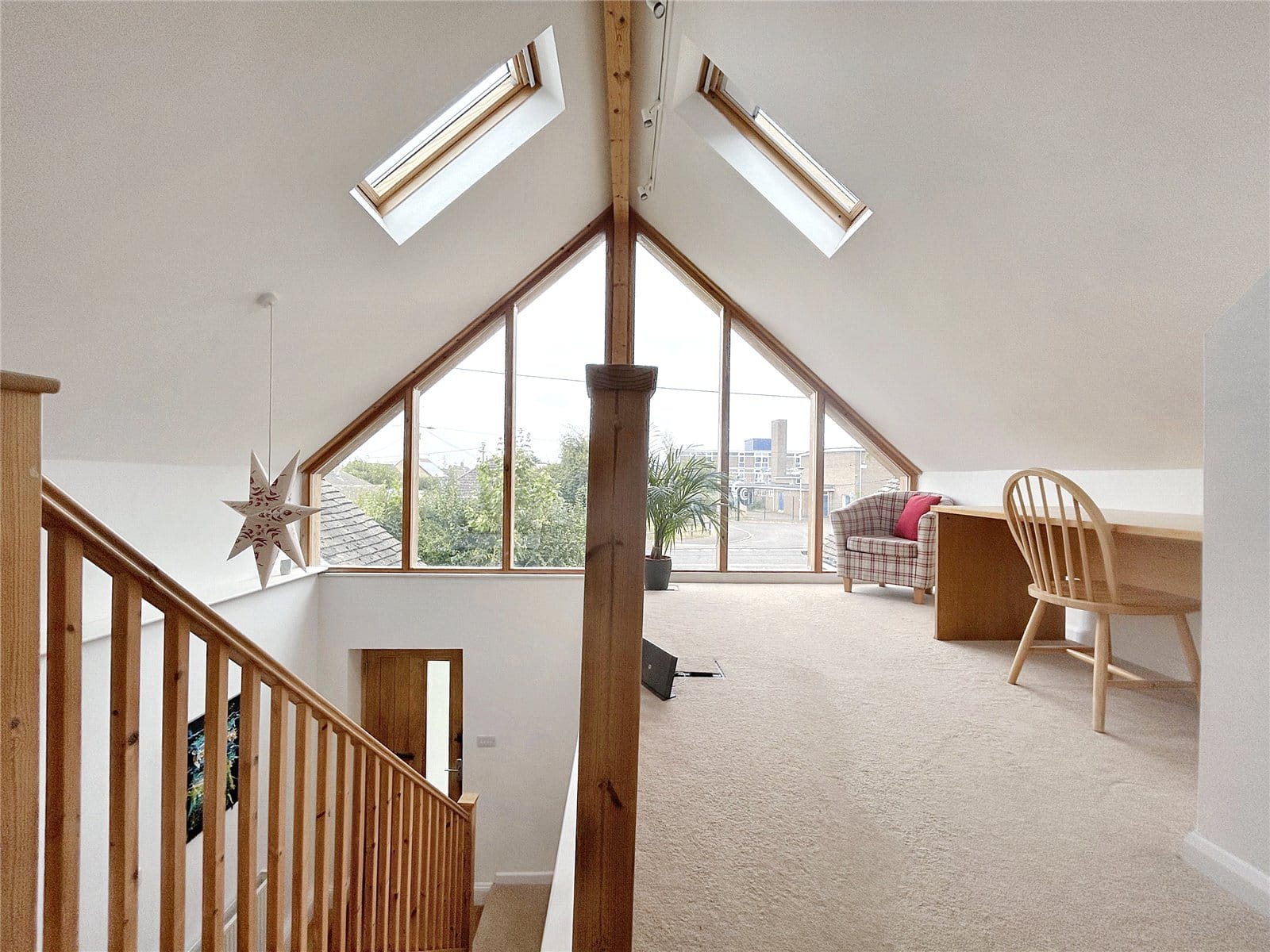 This spacious family home, offering over 2300sqft of versatile accommodation, is located in a well-established and desirable neighborhood. It offers private gardens, a dedicated garden office for remote work, and plenty of potential for personal touches.The home features an impressive entrance hall with vaulted ceilings and a galleried landing. The large sitting room boasts a feature fireplace and French doors leading to the garden. The recently updated kitchen includes ample floor and wall units, a breakfast bar, and numerous integrated appliances, flowing seamlessly into the dining room with additional garden access. The ground floor also includes two double bedrooms and a modern family bathroom with both a bathtub and a separate shower cubicle.The first floor is illuminated by a large east-facing picture window that offers stunning sunrise views over the Folly. It comprises three additional double bedrooms, all with built-in wardrobes, and a walk-in shower room that serves as a Jack and Jill bathroom to the master bedroom.Outside, the front of the property features driveway parking for multiple vehicles, a single garage, and a lawned garden. The rear garden is mature and private, with fruit trees, hedging, and a west-facing patio perfect for enjoying the summer sun. A sizable self-contained workshop/annex in the garden could serve as a home office, fitness studio or craft room, complete with a kitchen area and an enclosed shower room with a WC.Additional benefits of the property include owned solar panels, an electric car charger, modern Gas central heating and uPVC double glazing throughout. The property is connected to mains utilities.