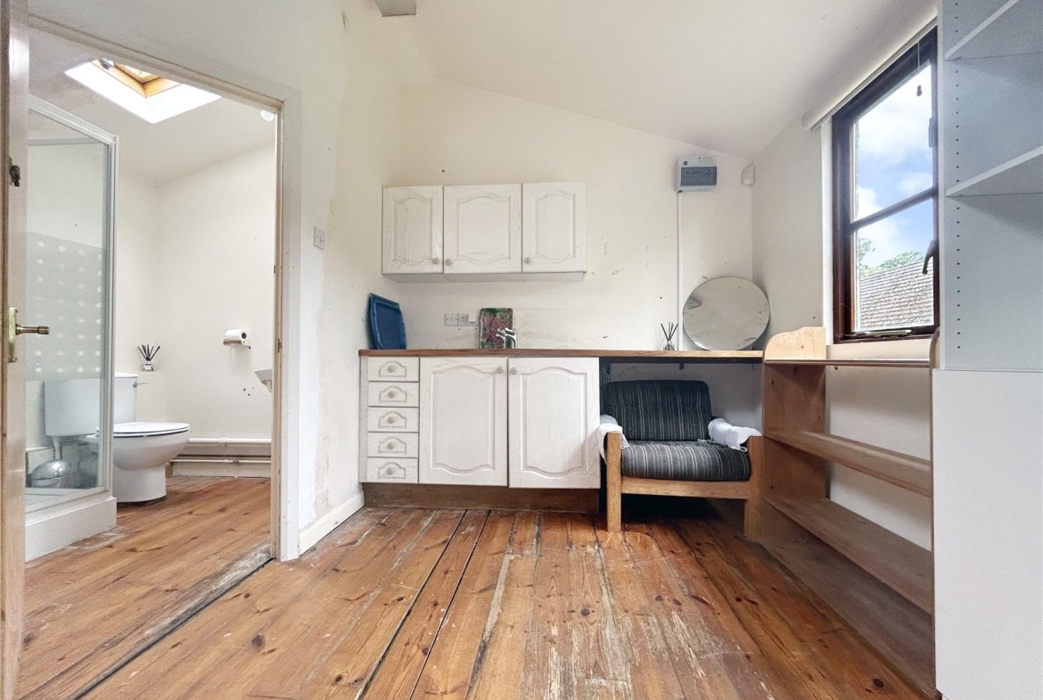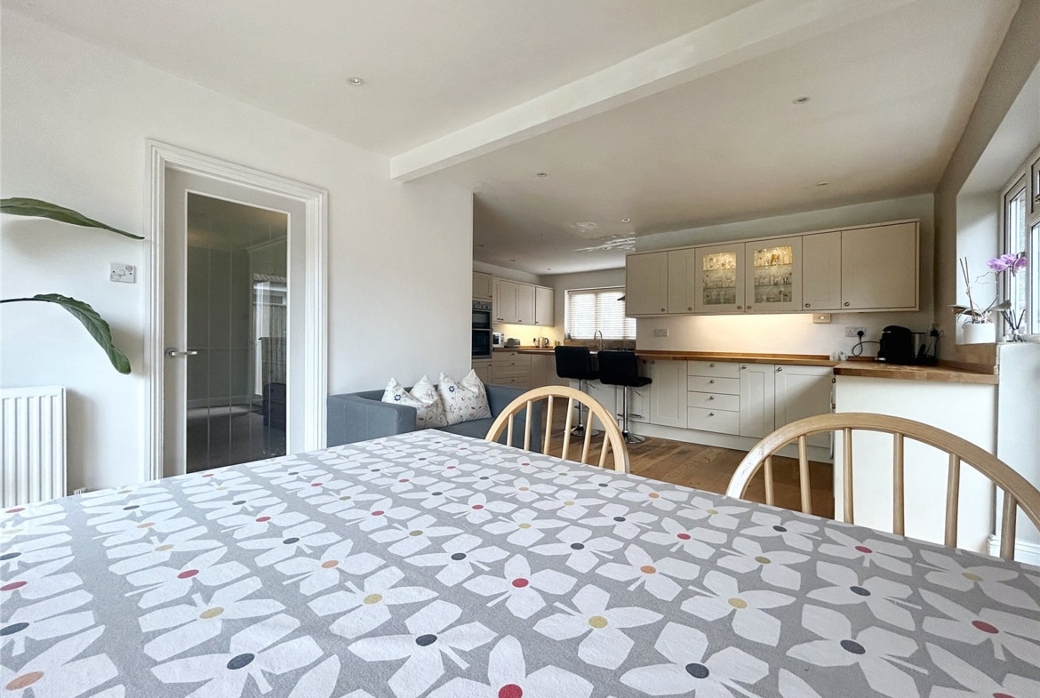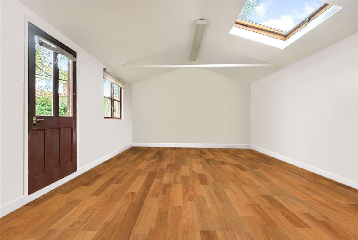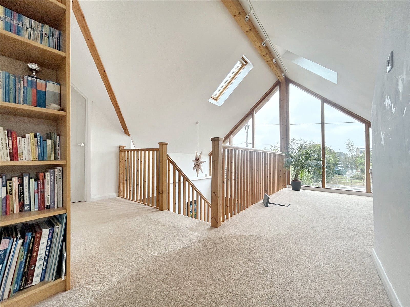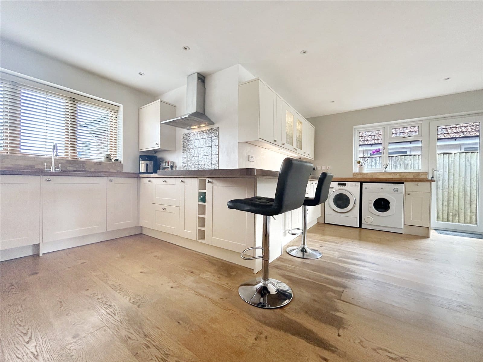 This spacious family home, offering over 2300sqft of versatile accommodation, is located in a well-established and desirable neighborhood. It offers private gardens, a dedicated garden office for remote work, and plenty of potential for personal touches.The home features an impressive entrance hall with vaulted ceilings and a galleried landing. The large sitting room boasts a feature fireplace and French doors leading to the garden. The recently updated kitchen includes ample floor and wall units, a breakfast bar, and numerous integrated appliances, flowing seamlessly into the dining room with additional garden access. The ground floor also includes two double bedrooms and a modern family bathroom with both a bathtub and a separate shower cubicle.The first floor is illuminated by a large east-facing picture window that offers stunning sunrise views over the Folly. It comprises three additional double bedrooms, all with built-in wardrobes, and a walk-in shower room that serves as a Jack and Jill bathroom to the master bedroom.Outside, the front of the property features driveway parking for multiple vehicles, a single garage, and a lawned garden. The rear garden is mature and private, with fruit trees, hedging, and a west-facing patio perfect for enjoying the summer sun. A sizable self-contained workshop/annex in the garden could serve as a home office, fitness studio or craft room, complete with a kitchen area and an enclosed shower room with a WC.Additional benefits of the property include owned solar panels, an electric car charger, modern Gas central heating and uPVC double glazing throughout. The property is connected to mains utilities.