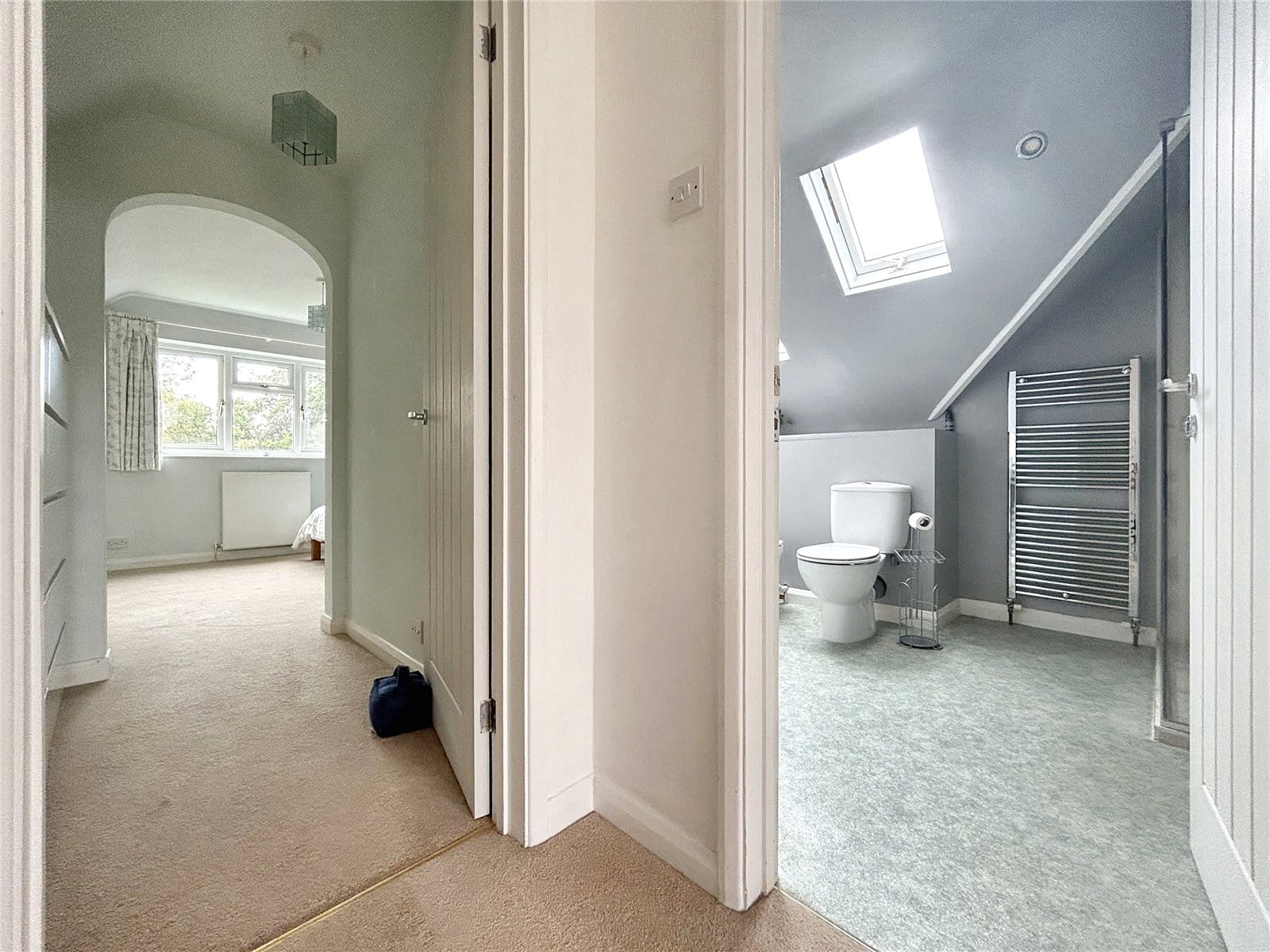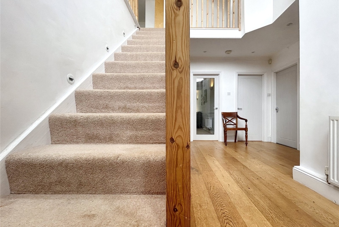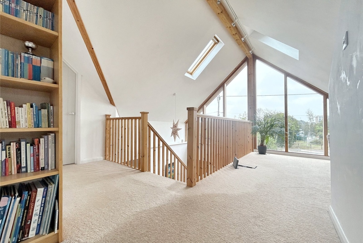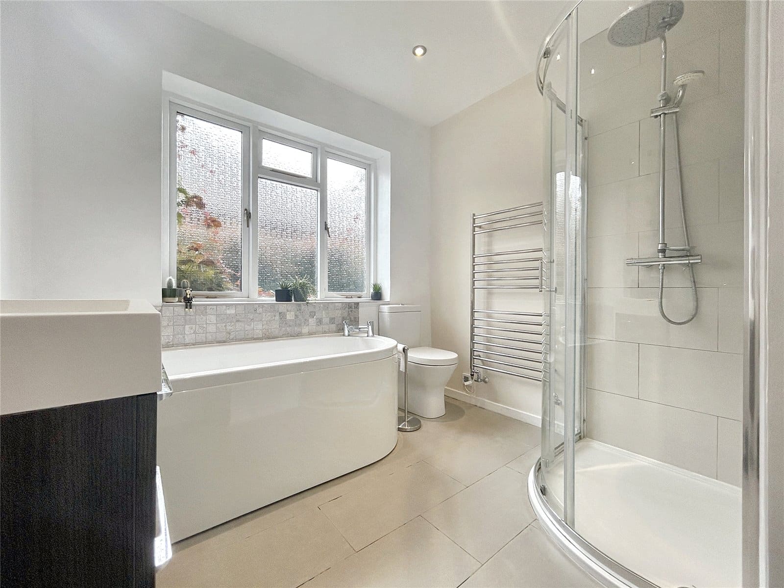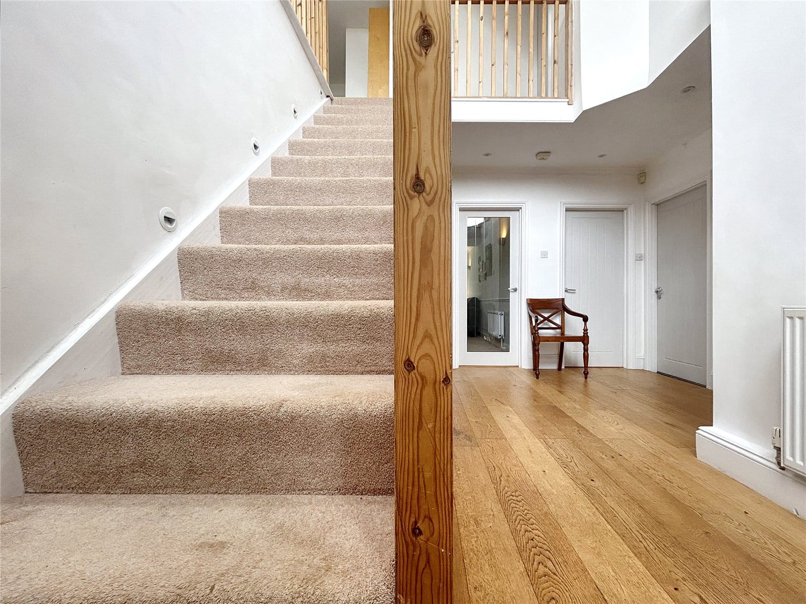 This spacious family home, offering over 2300sqft of versatile accommodation, is located in a well-established and desirable neighborhood. It offers private gardens, a dedicated garden office for remote work, and plenty of potential for personal touches.The home features an impressive entrance hall with vaulted ceilings and a galleried landing. The large sitting room boasts a feature fireplace and French doors leading to the garden. The recently updated kitchen includes ample floor and wall units, a breakfast bar, and numerous integrated appliances, flowing seamlessly into the dining room with additional garden access. The ground floor also includes two double bedrooms and a modern family bathroom with both a bathtub and a separate shower cubicle.The first floor is illuminated by a large east-facing picture window that offers stunning sunrise views over the Folly. It comprises three additional double bedrooms, all with built-in wardrobes, and a walk-in shower room that serves as a Jack and Jill bathroom to the master bedroom.Outside, the front of the property features driveway parking for multiple vehicles, a single garage, and a lawned garden. The rear garden is mature and private, with fruit trees, hedging, and a west-facing patio perfect for enjoying the summer sun. A sizable self-contained workshop/annex in the garden could serve as a home office, fitness studio or craft room, complete with a kitchen area and an enclosed shower room with a WC.Additional benefits of the property include owned solar panels, an electric car charger, modern Gas central heating and uPVC double glazing throughout. The property is connected to mains utilities.