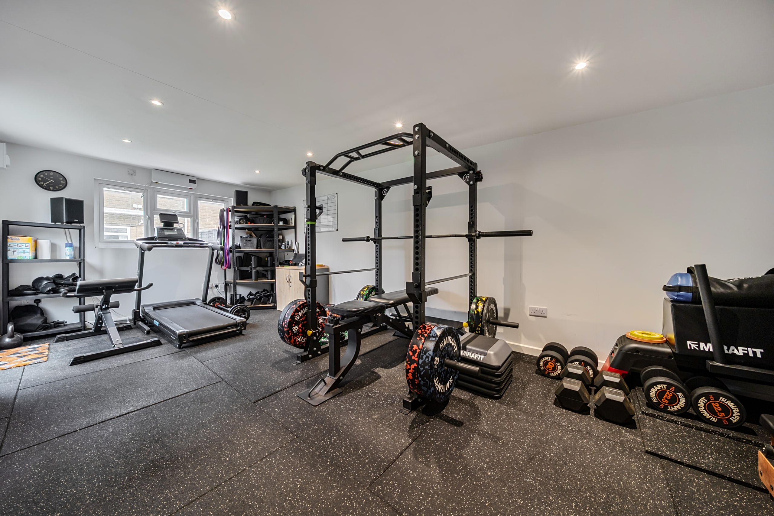 Upstairs, you’ll find three well-proportioned bedrooms, including a spacious master with built-in storage. The property also boasts driveway parking and a rear-access garage, currently used as a home gym, providing flexible storage or workspace options.