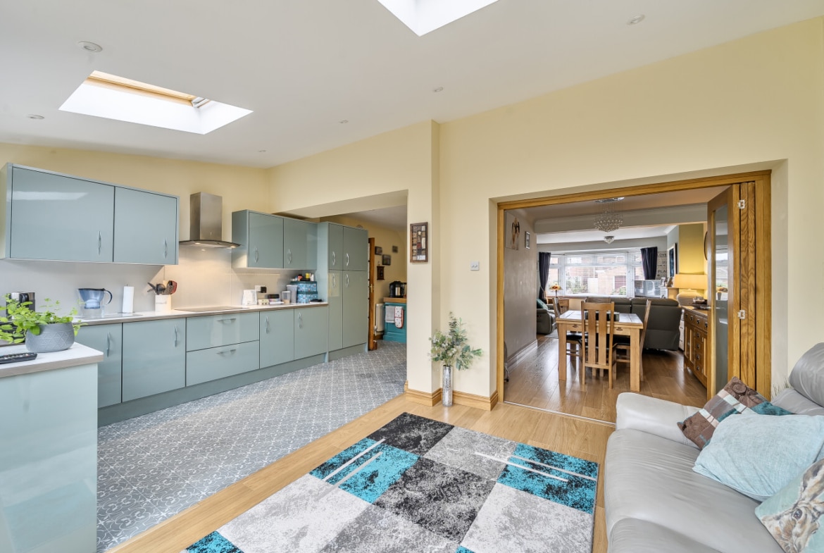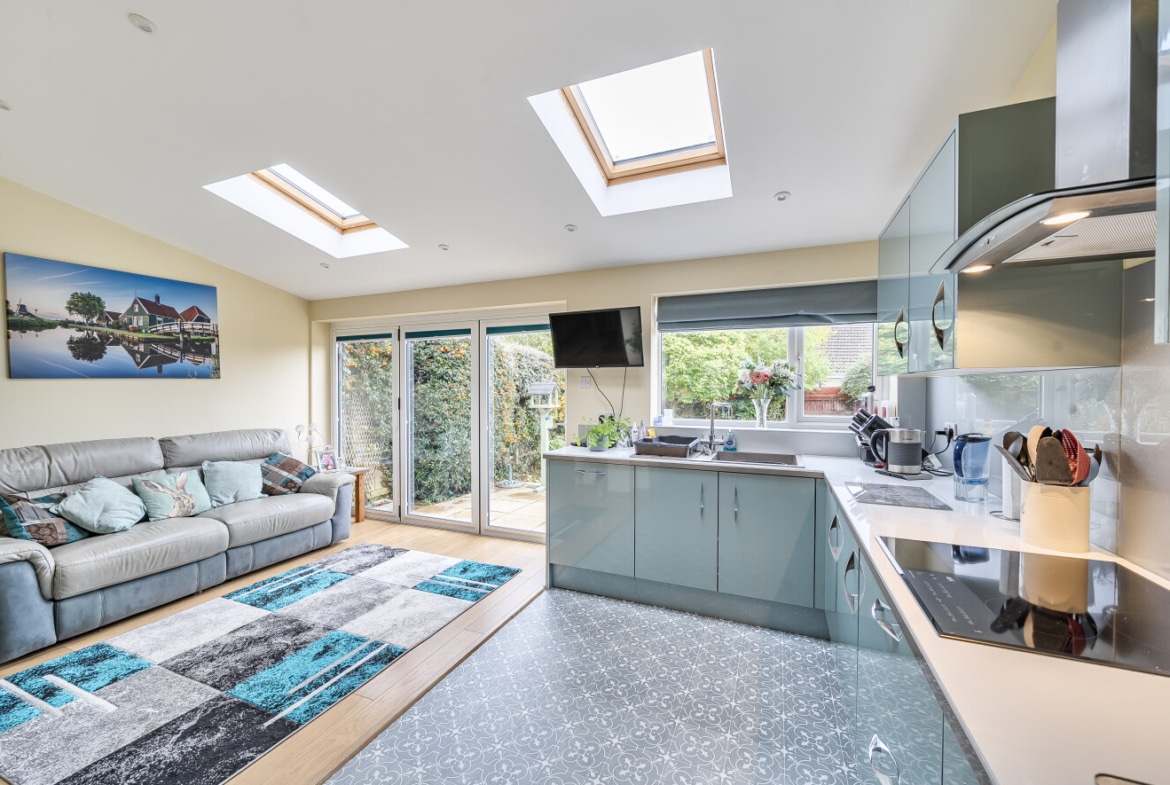 Inside, the property boasts a bright and spacious open-plan reception room, perfect for entertaining guests or relaxing with family. The modern kitchen features ample worktop space and plenty of storage, flowing seamlessly into a light-filled sunroom—an inviting spot to unwind at any time of day.