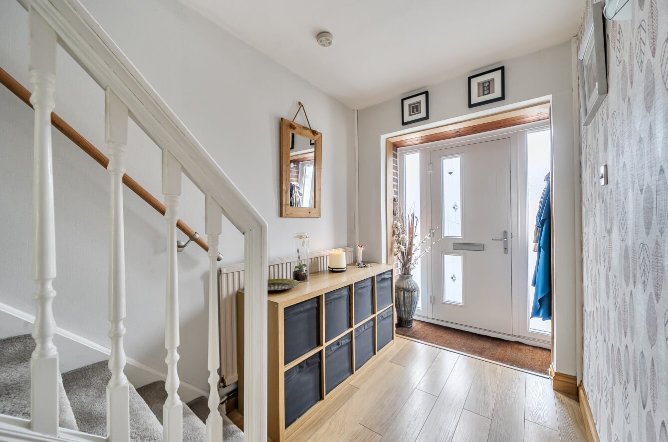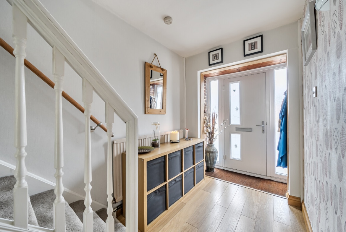 Upstairs, the generous master bedroom is filled with natural light thanks to elegant bay windows and offers a calm, spacious retreat. A second double bedroom continues the theme of modern comfort, while the third bedroom is perfect as a guest room, home office, or playroom. The upper floor also features a sleek and stylish family bathroom.