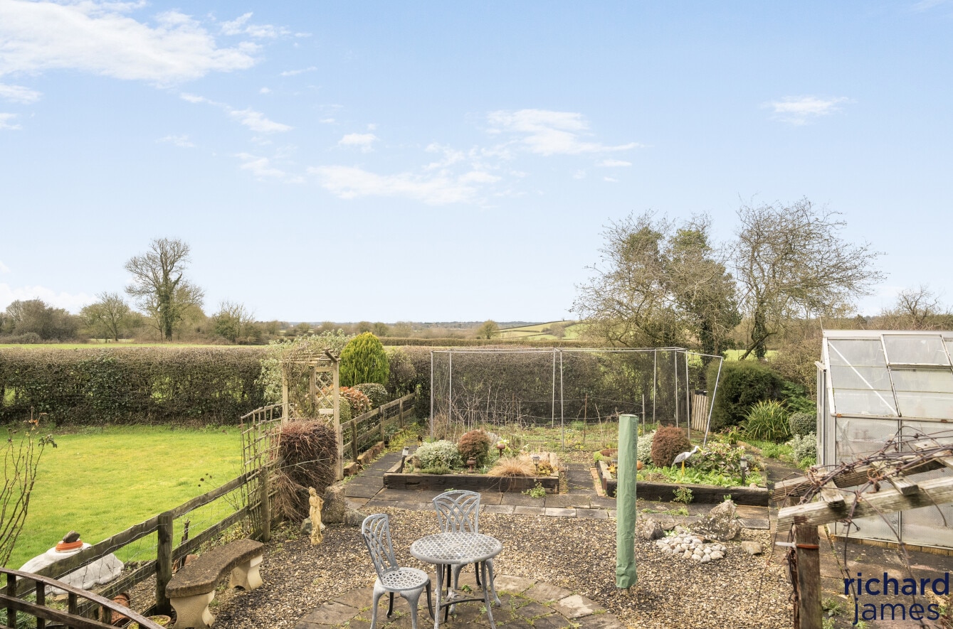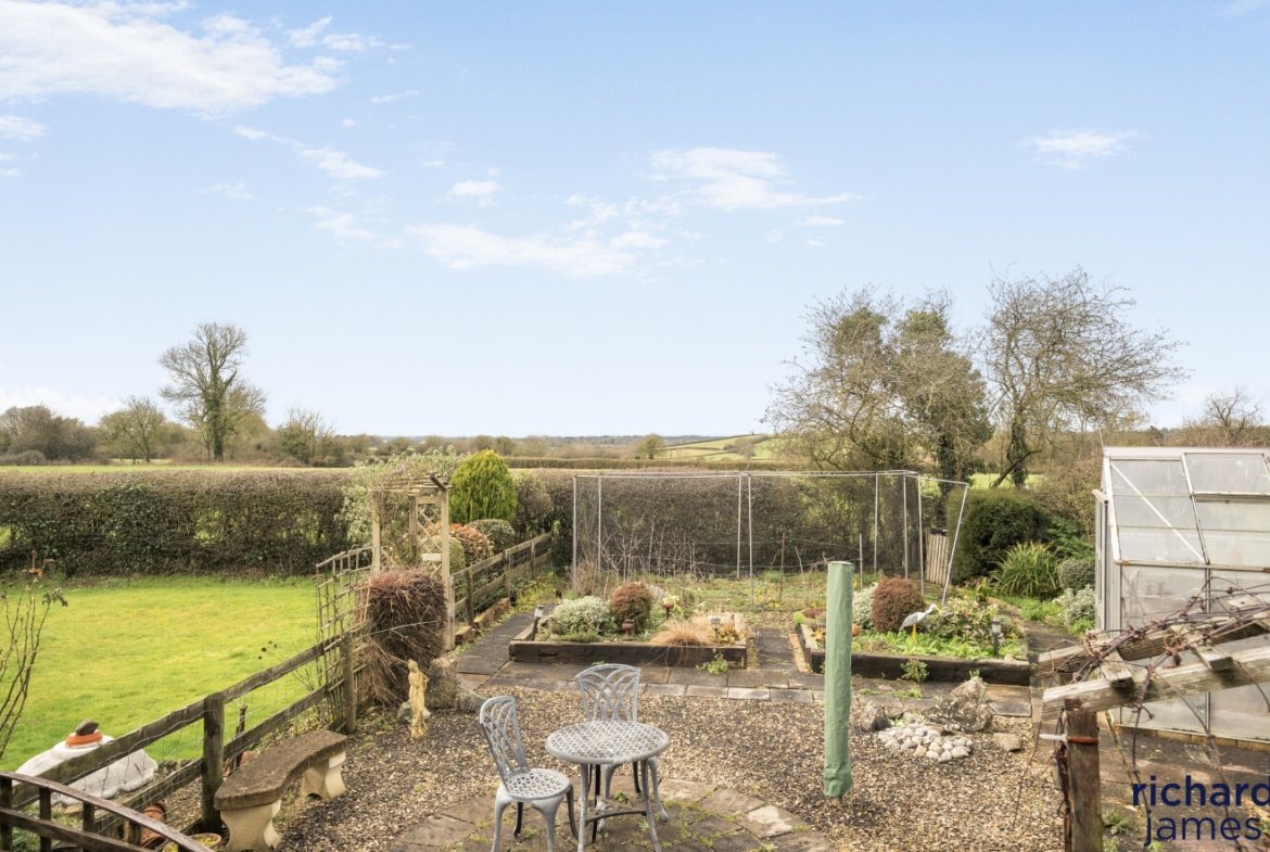 Outside, the garden wraps right around the property and is a real highlight — mature, private and thoughtfully landscaped with established beds, lawns and vegetable plots. A double garage is tucked away to the rear, ideal for storage, hobbies or future conversion (STPP), and there’s ample driveway parking for multiple vehicles.