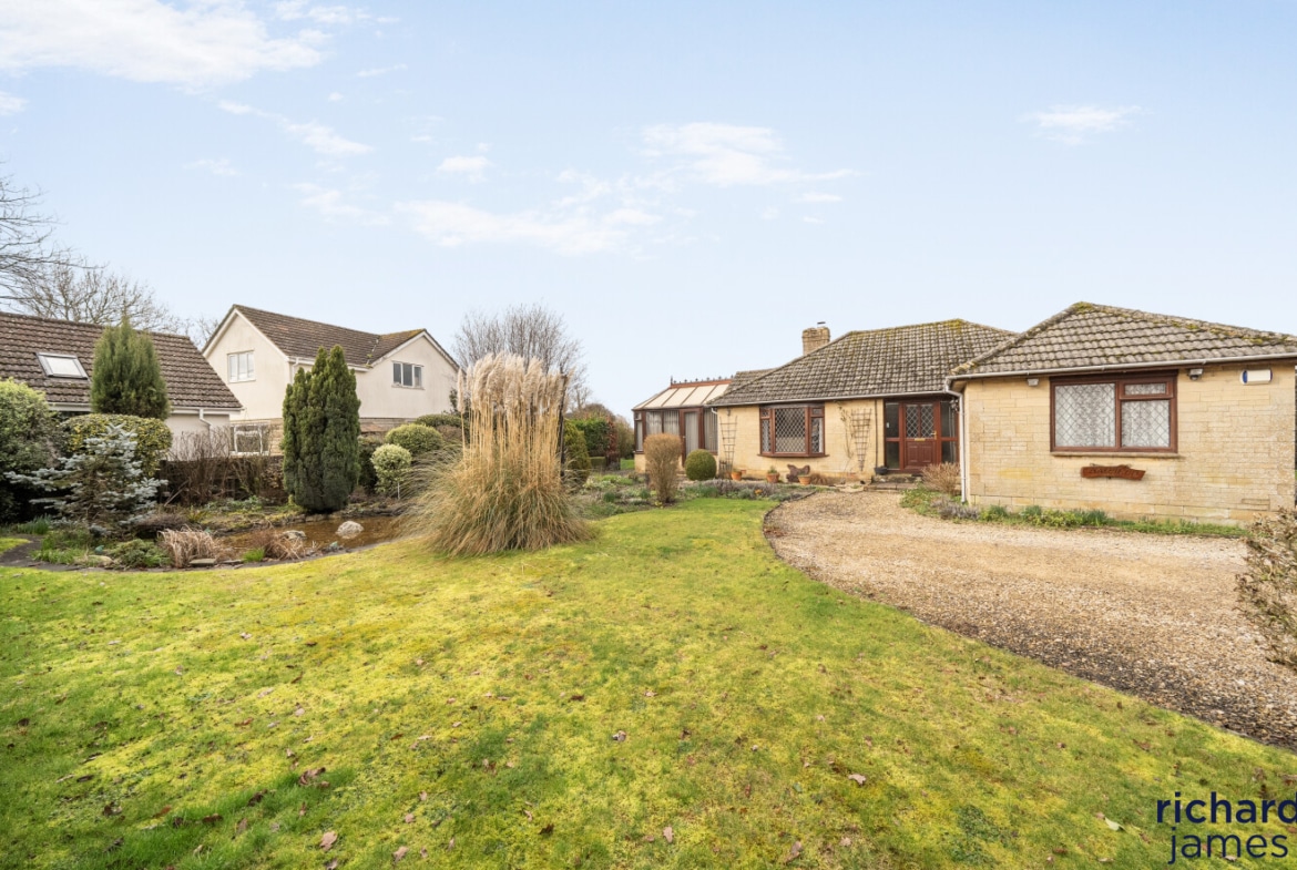 Tucked behind a large driveway on a generous wraparound plot, this detached three-bedroom bungalow offers privacy, space and real flexibility in the ever-popular village of Brinkworth. With over 1,700 sq ft of accommodation (including the double garage), plus a sun room, extensive gardens, greenhouse and large family bathrooms, there’s plenty of room to grow, relax or reconfigure.