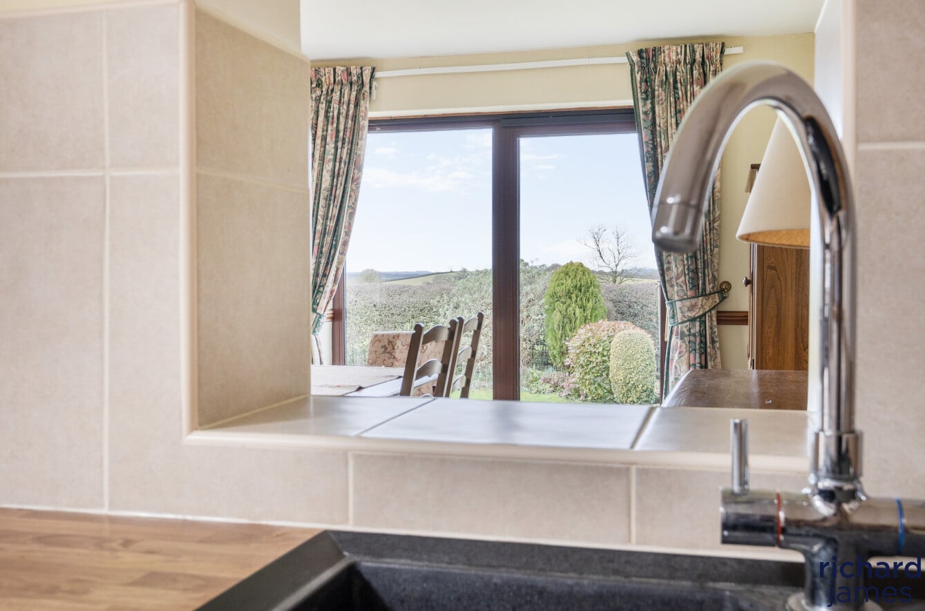 Continue down the hall and you reach the kitchen — newly fitted with plenty of cupboard space, a vaulted ceiling with Velux window, breakfast bar and integrated appliances. It opens into the dining room, making this the heart of the home and perfect for entertaining, with sliding doors out to the garden.