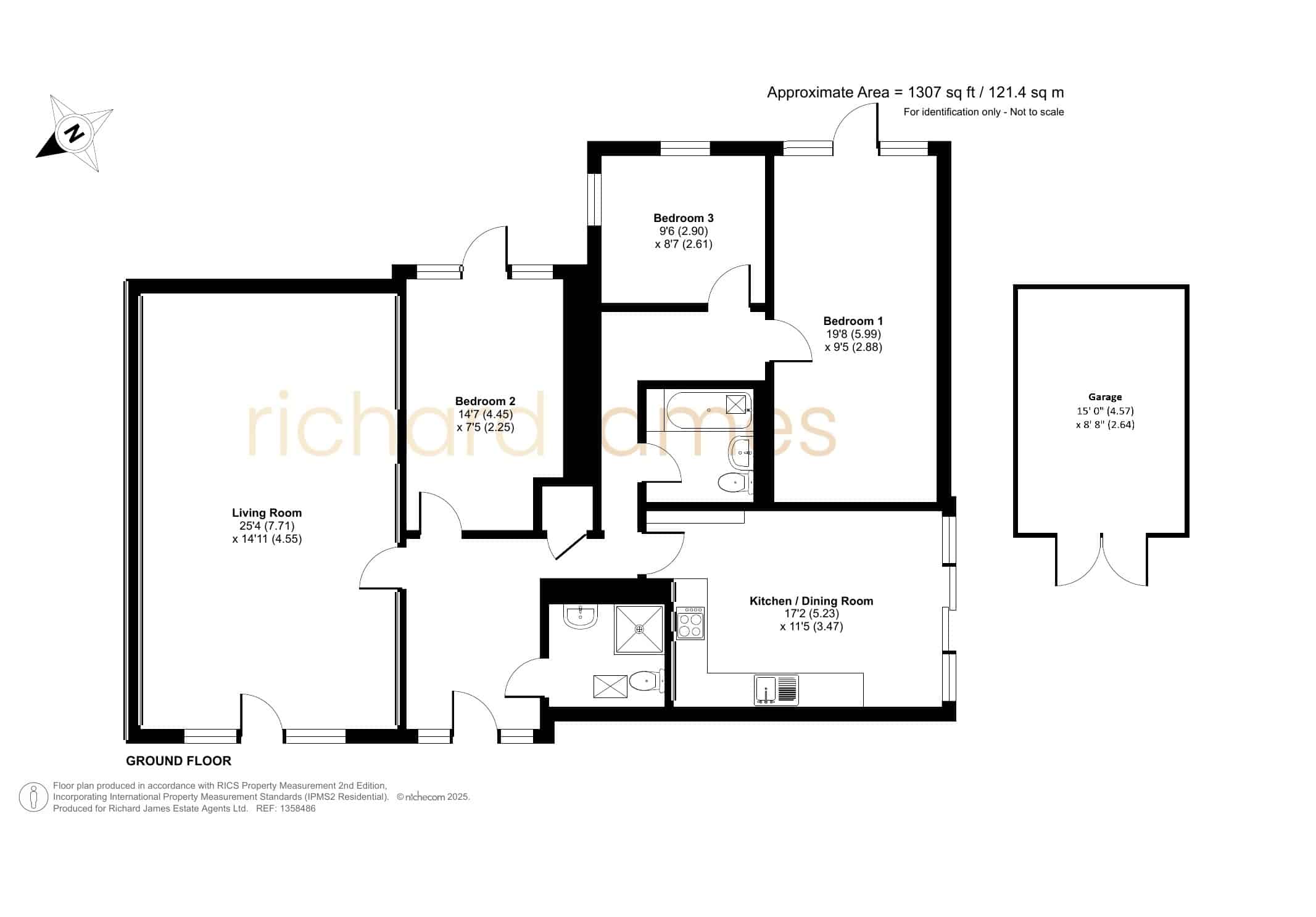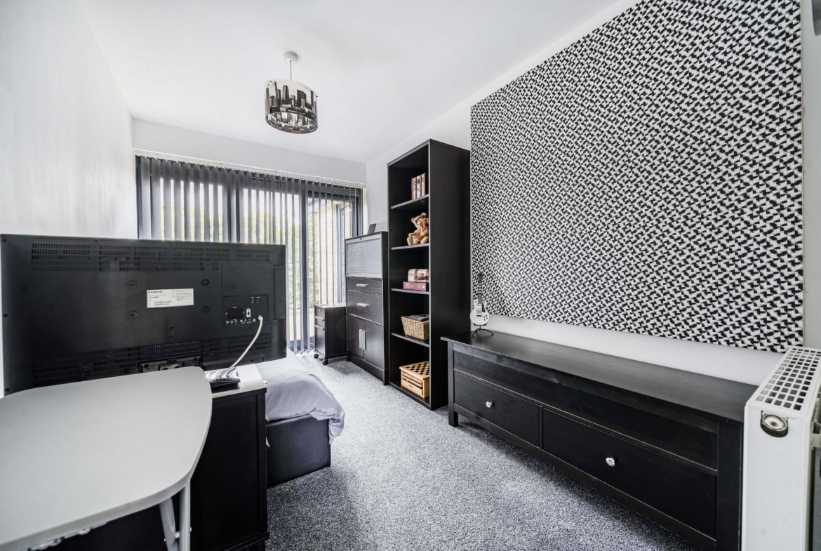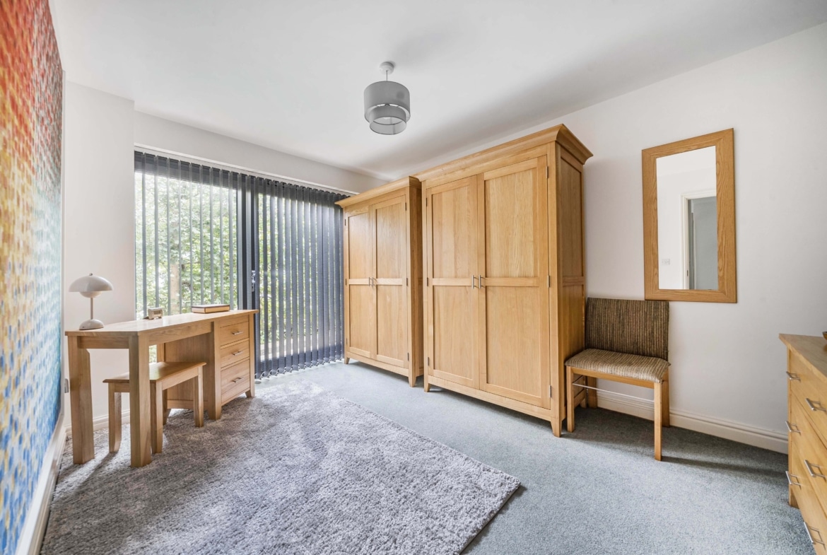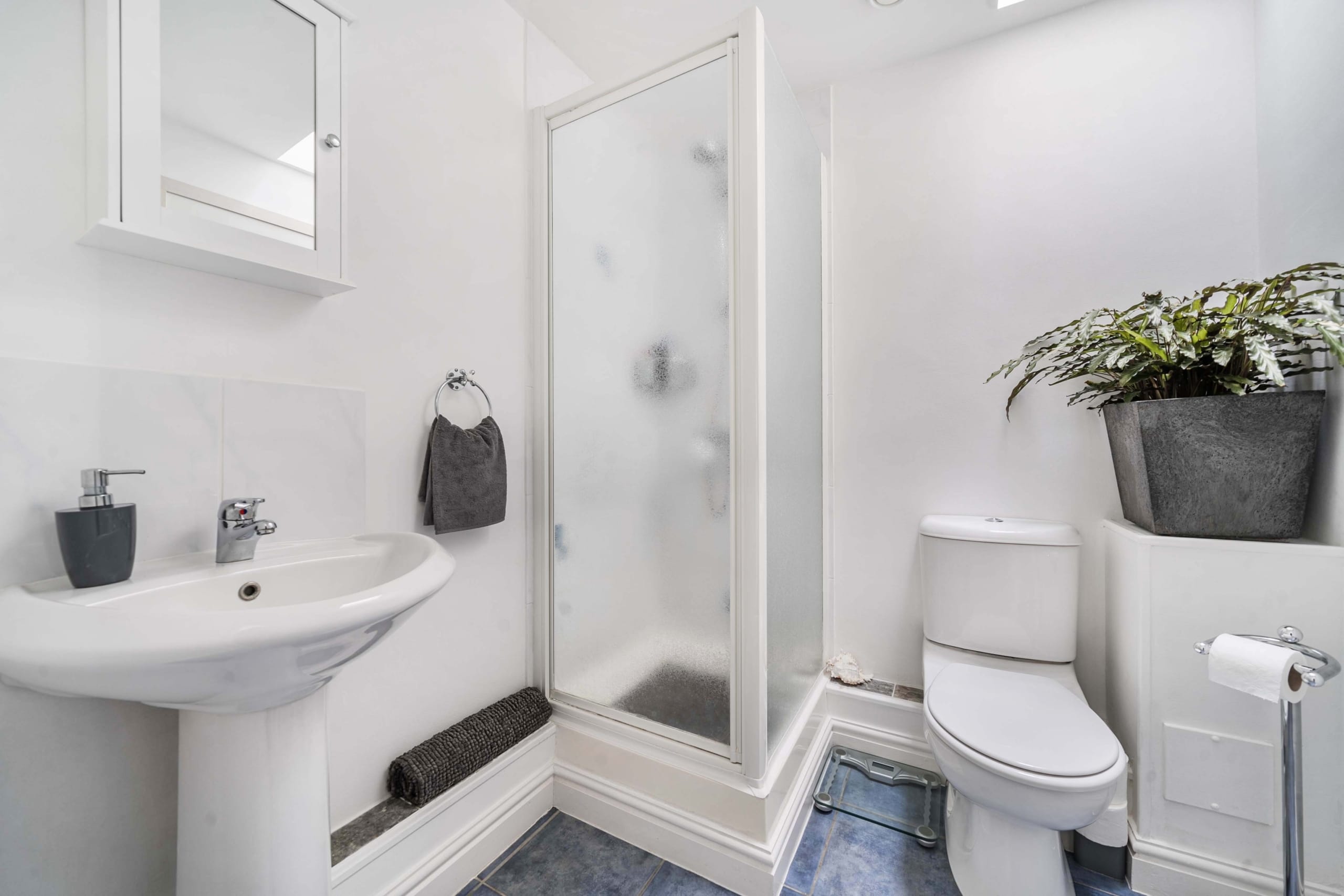 The property offers three comfortable bedrooms. The principal bedroom is particularly spacious, with direct garden access, while two further bedrooms provide flexibility for family, guests, or a home office. Two bathrooms, including a stylish shower room, complete the internal accommodation.