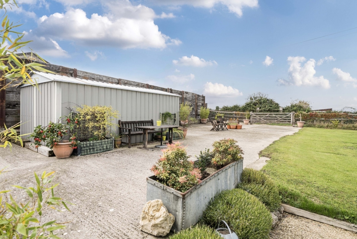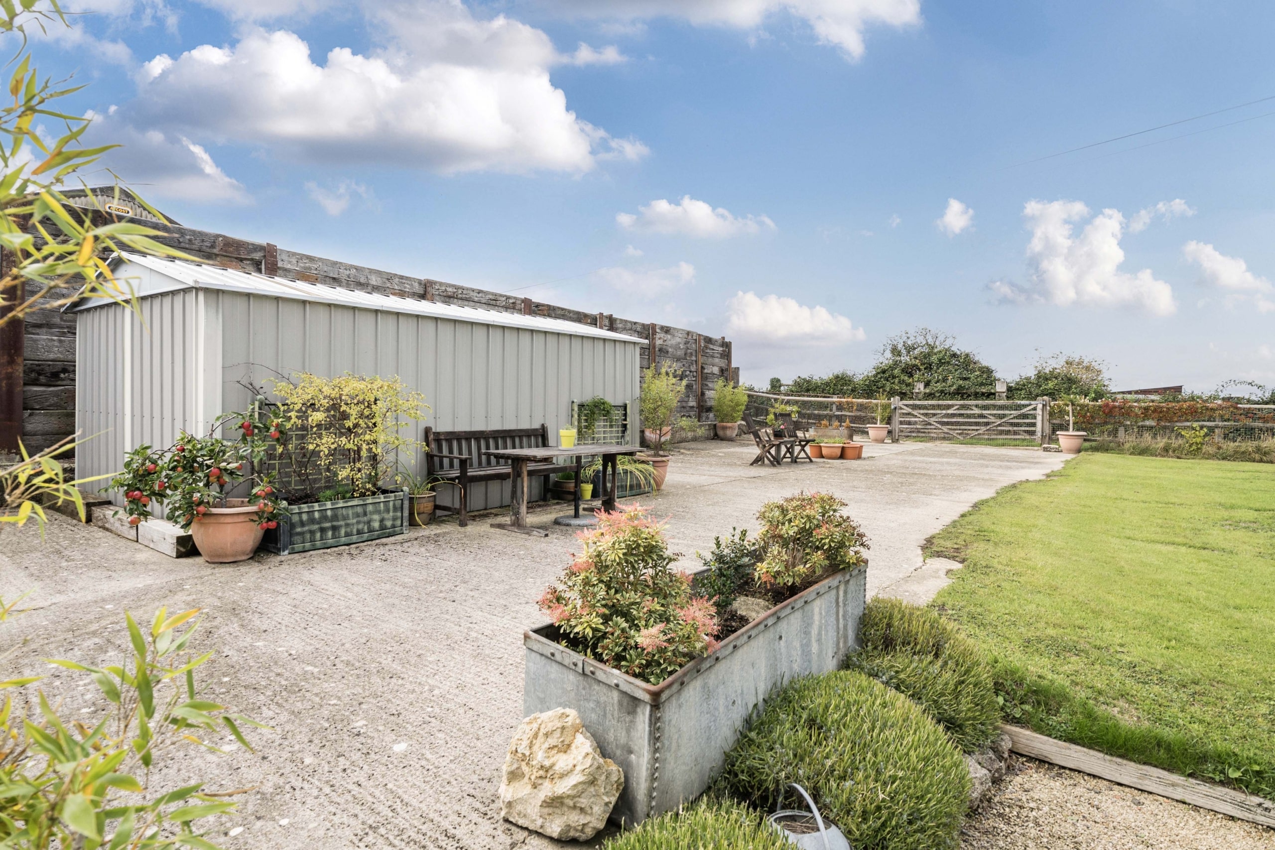 Outside, the south-facing garden is a true highlight. Enclosed by mature hedgerows, it enjoys open rural views across fields with horses and cattle – a peaceful outlook rarely found so close to village amenities. A decking area offers the perfect spot for outdoor dining and relaxation.