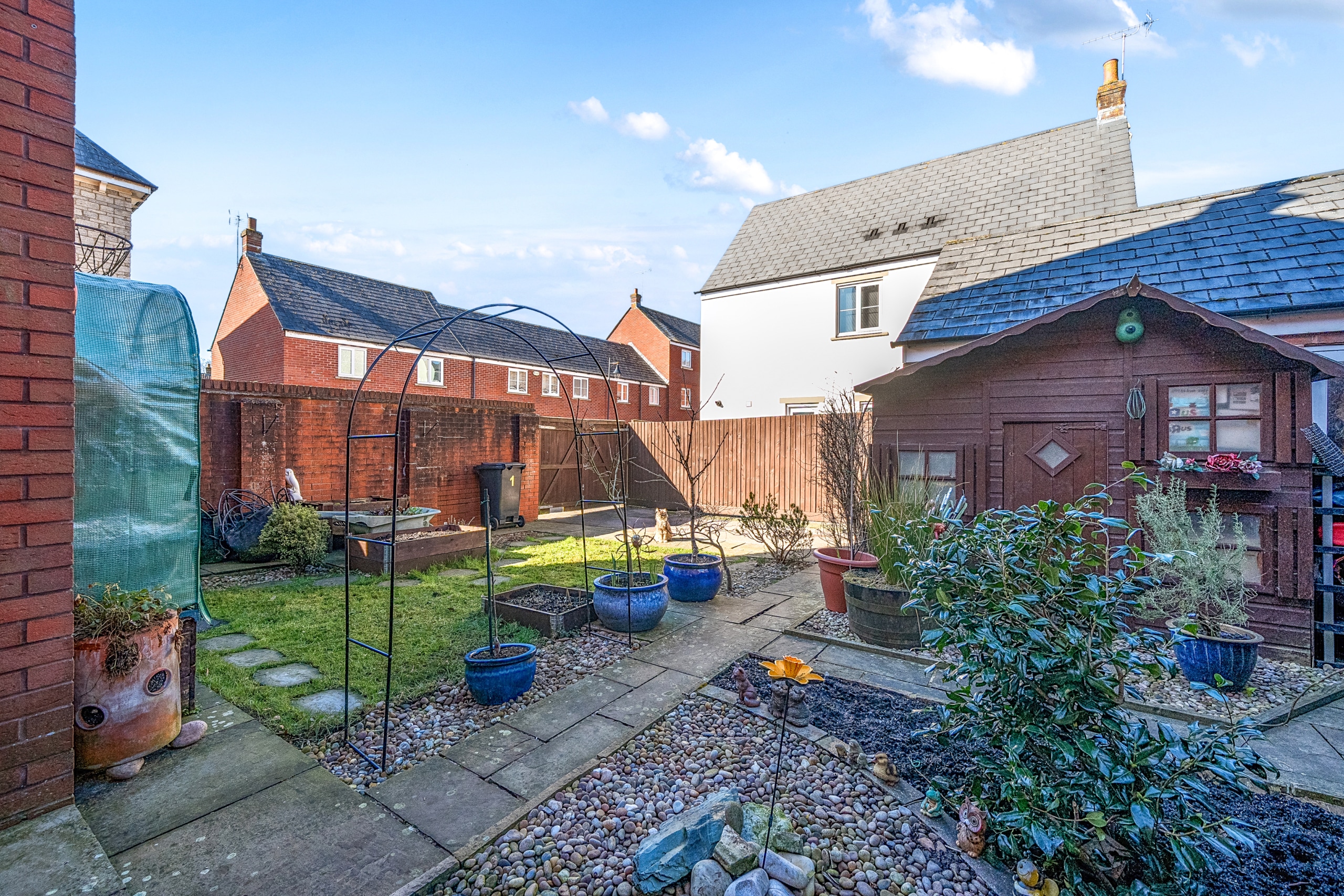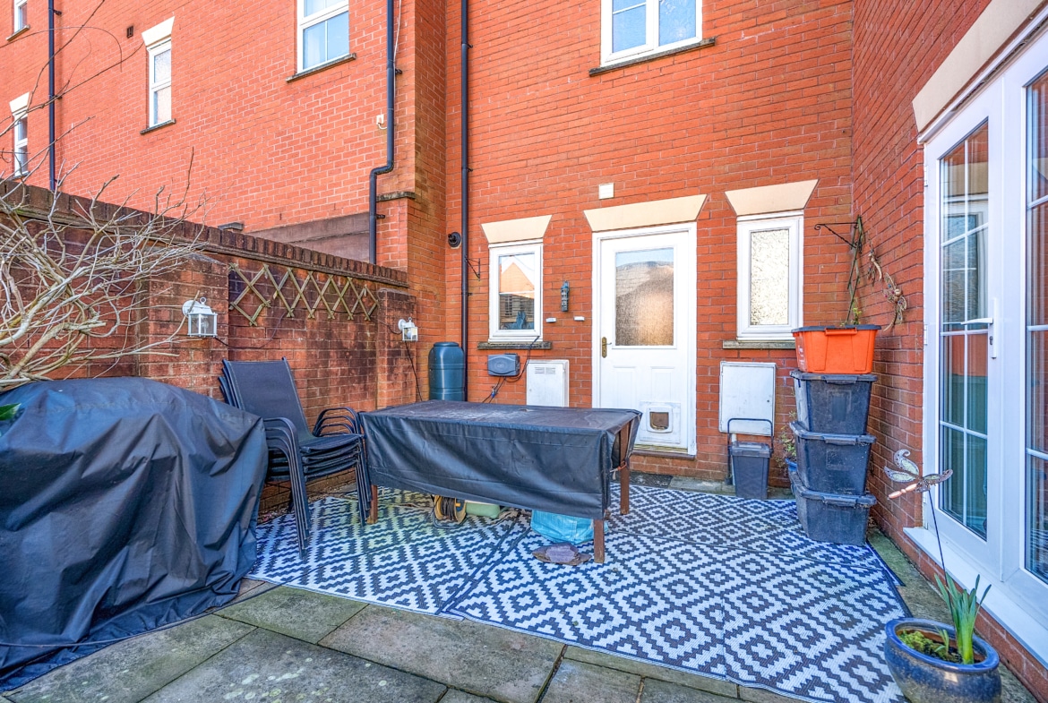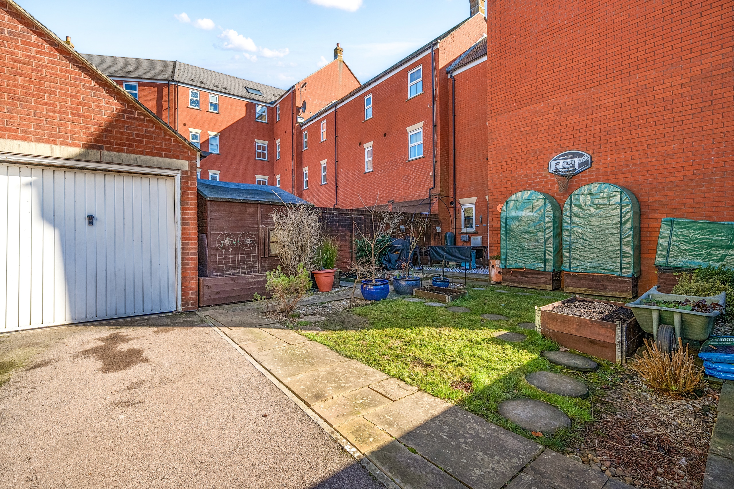 The beautifully maintained garden is a true suntrap, featuring a patio area and a lawn, perfect for relaxation or entertaining. The garage, which benefits from power, is easily accessible from the garden.