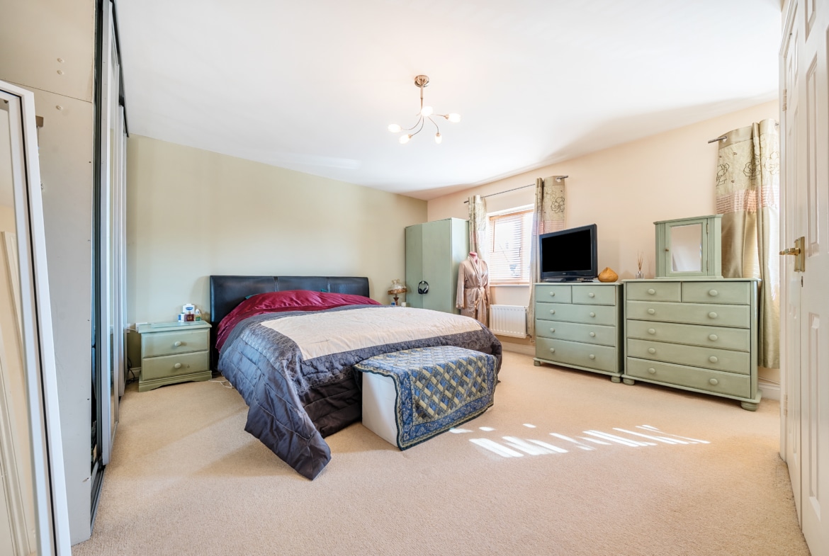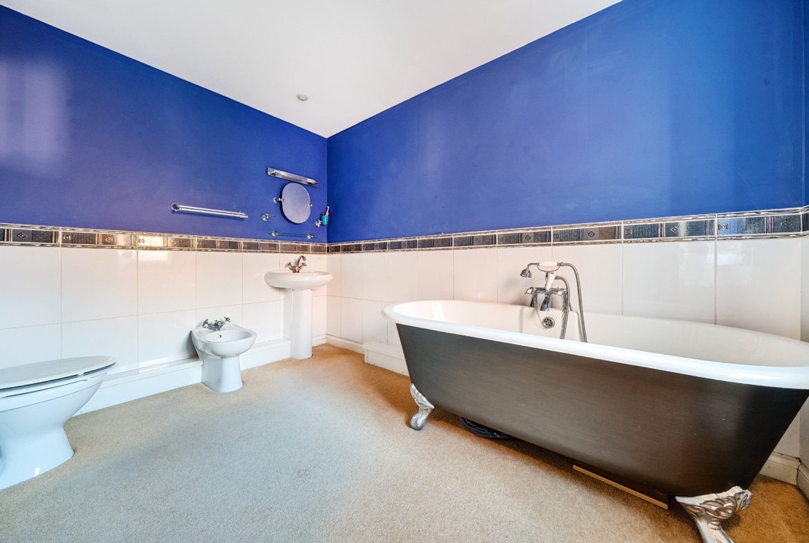Upstairs, the home continues to impress with a well-proportioned double bedroom featuring an ensuite shower room and storage. The showstopping principal bedroom is exceptionally spacious, complete with built-in wardrobes and an expansive five-piece bathroom suite, creating a luxurious private retreat.