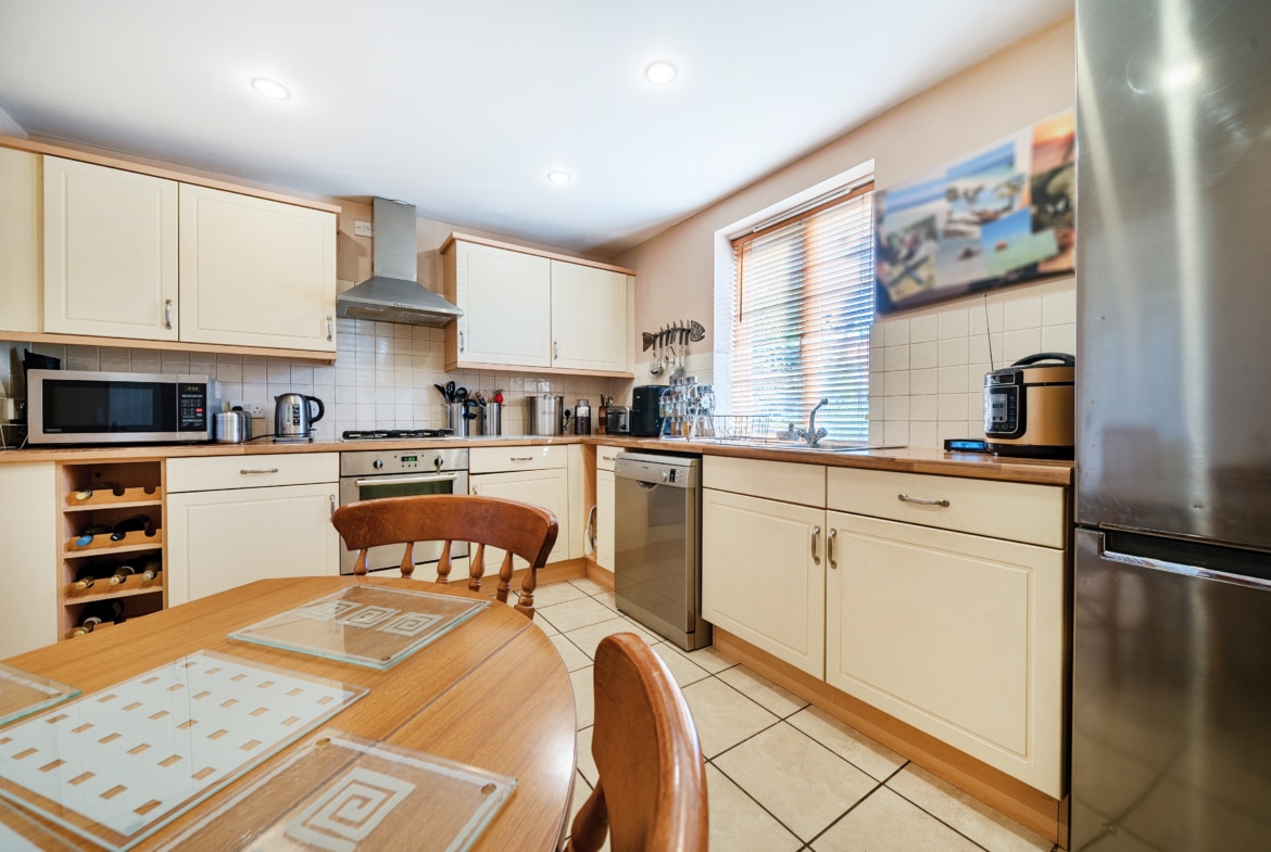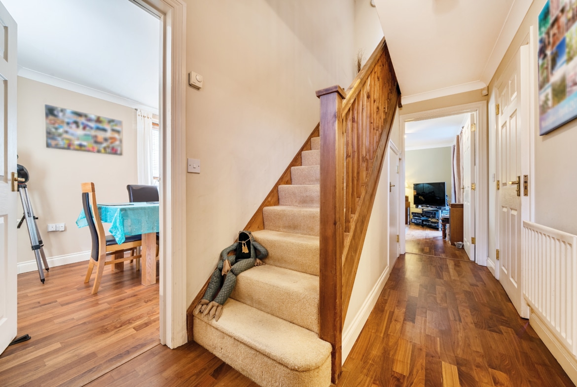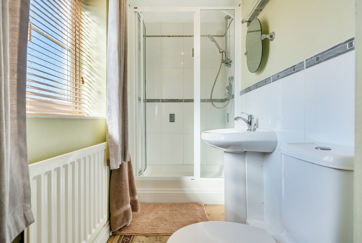 The first floor boasts three sizeable double bedrooms, one of which benefits from built-in wardrobes. A contemporary three-piece family bathroom serves this level, offering both style and functionality.