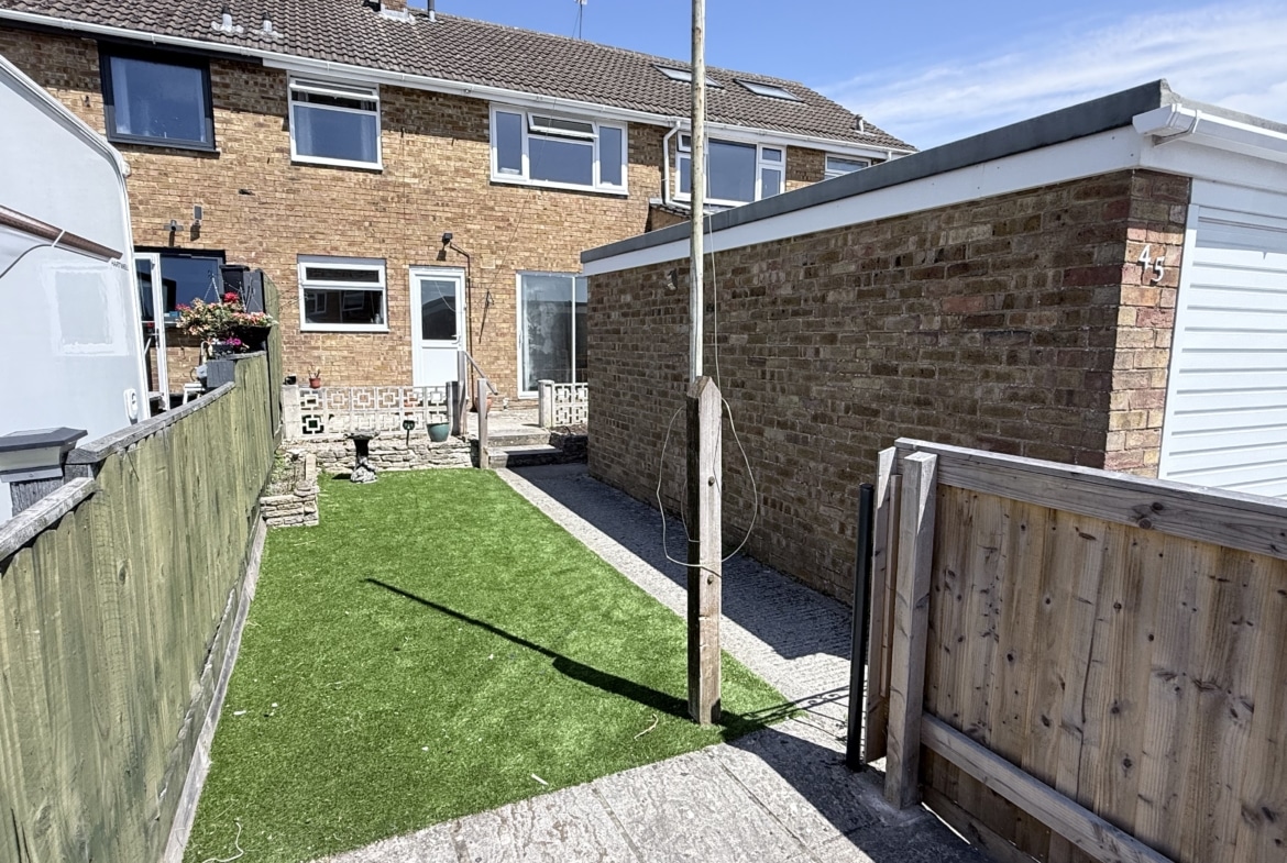 Further features include a low maintenance Rear Garden, with patio area and artificial lawn, which enjoys a sunny aspect with personal door to the Garage, which has currently been partitioned to provide a hobby room and storage space, with driveway to the rear. The house also benefits from PVCu Double Glazing and Gas Radiator Heating.