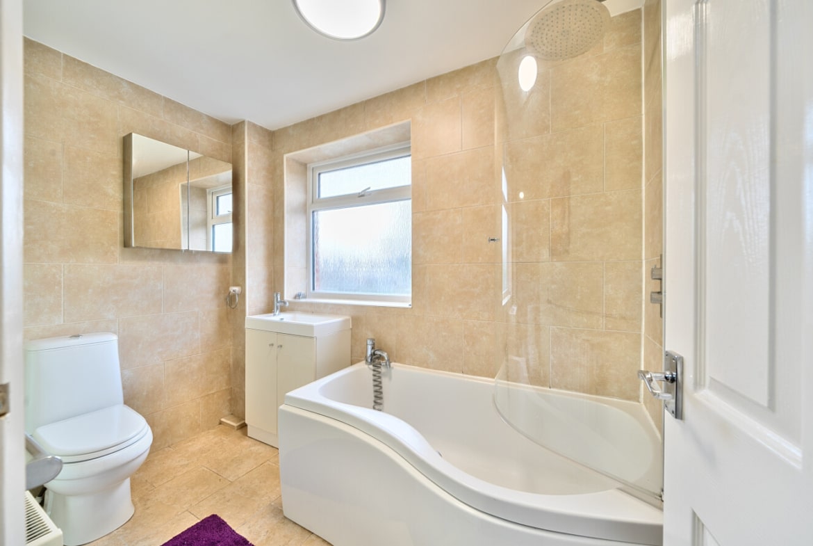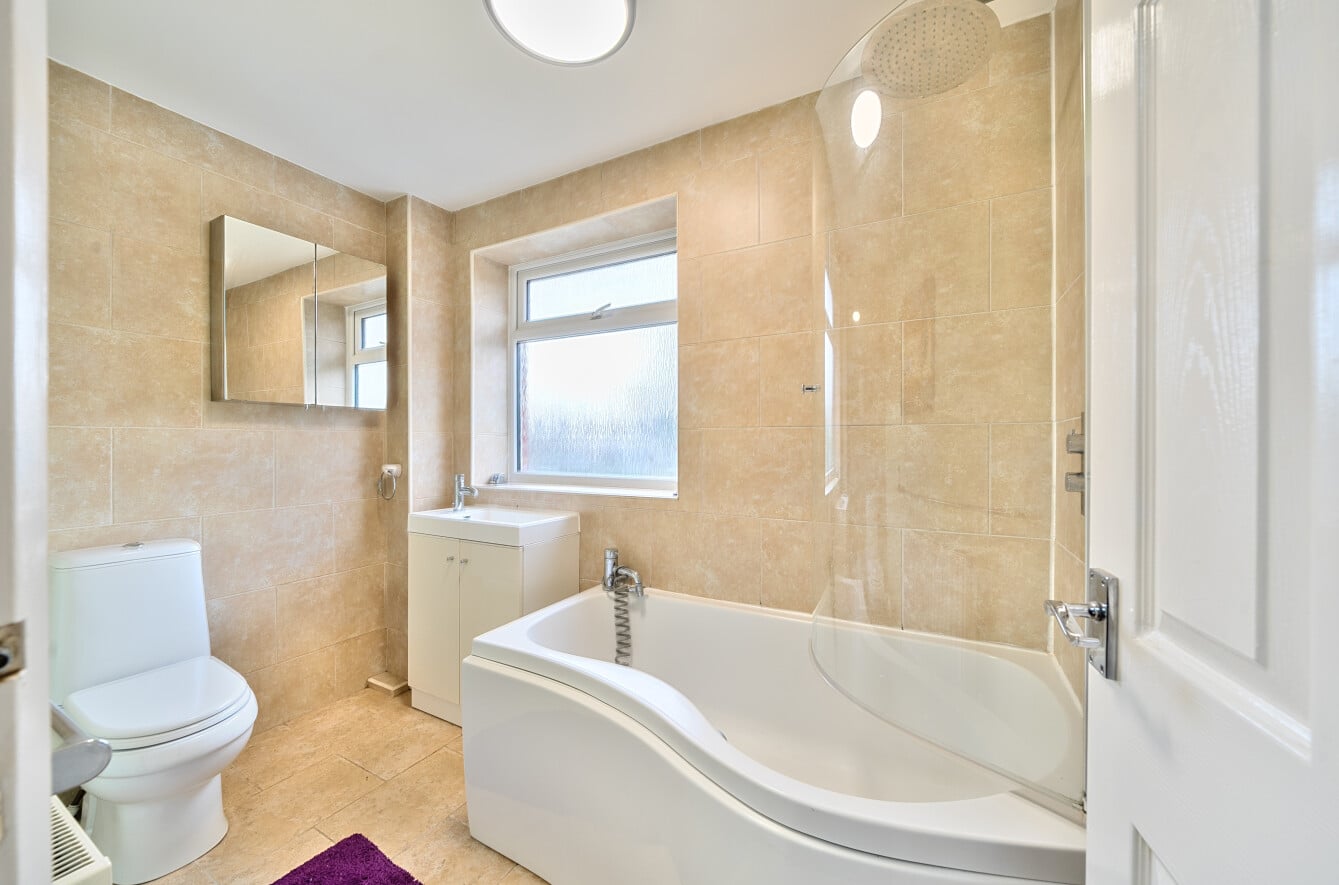 Upstairs, you’ll find three well-proportioned bedrooms, including two impressively spacious rooms with ample space for walk-in wardrobes, workspaces, or children’s play zones. The modern family bathroom completes the first floor with stylish fittings and a comfortable layout.
