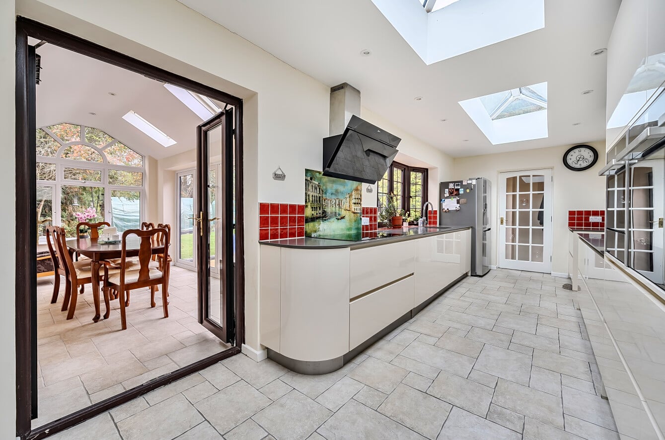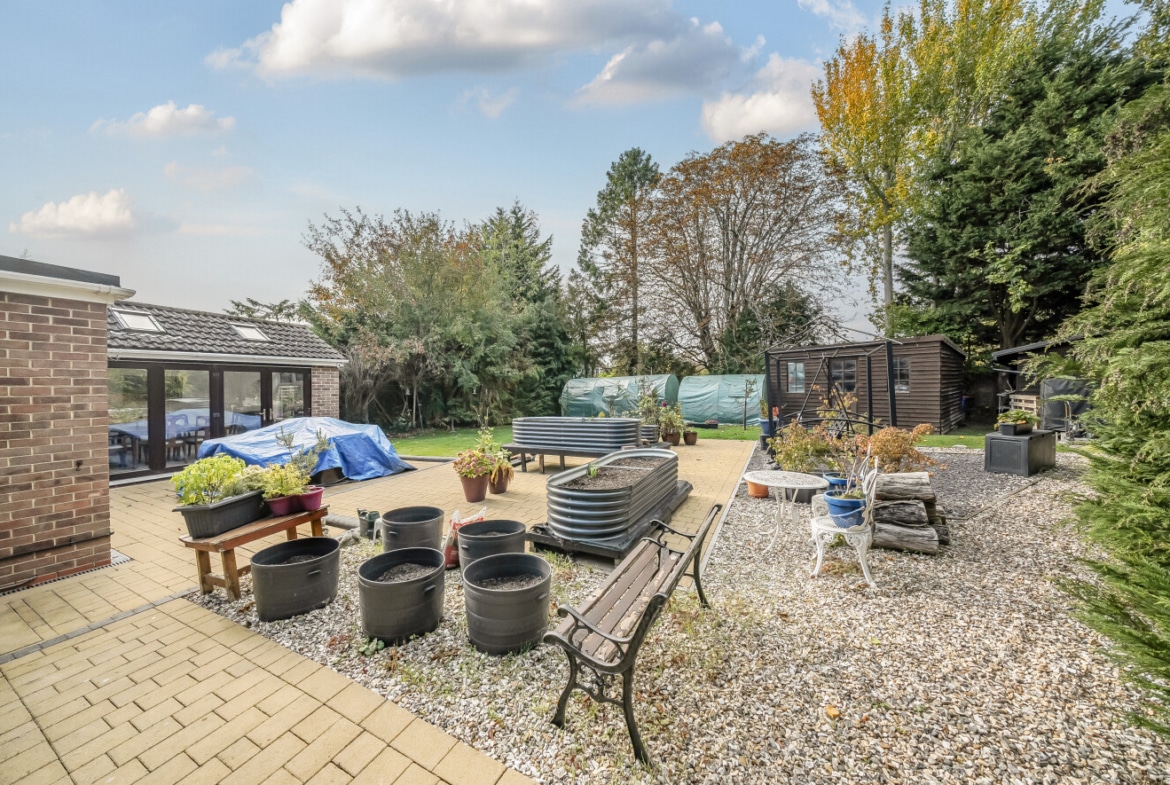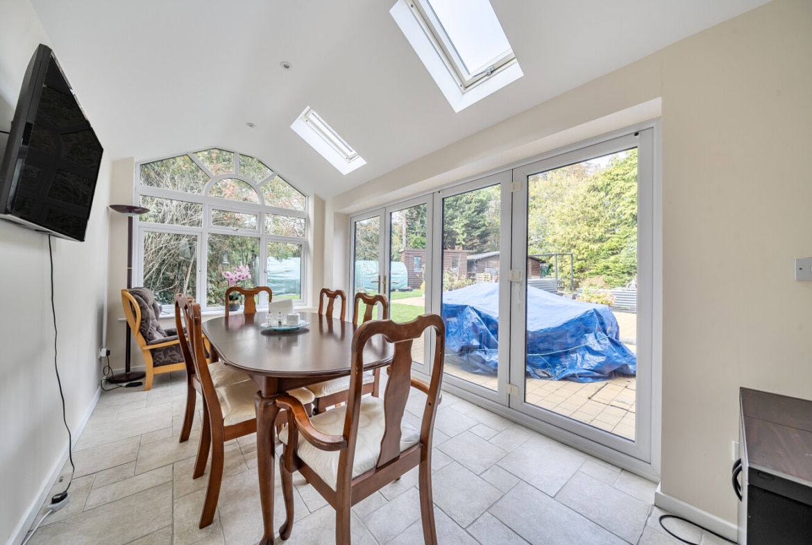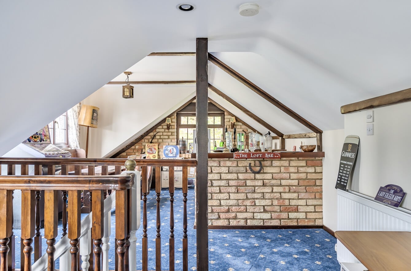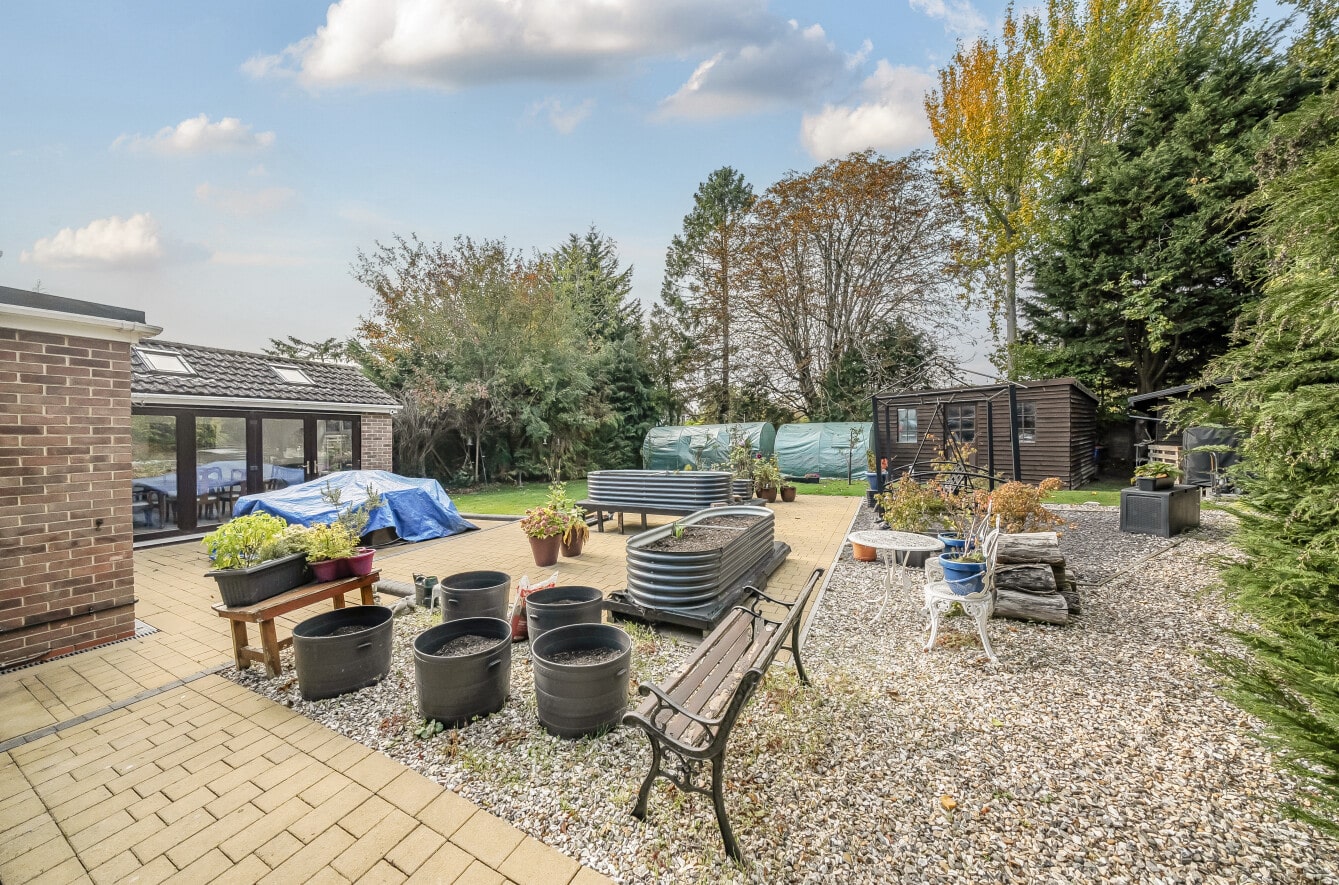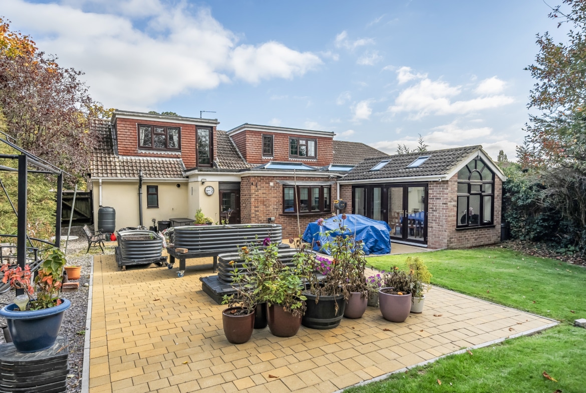 The bungalow itself offers approximately 1900sqft of well presented versatile living space, perfect for the modern family. It has been thoughtfully extended over time and now includes; Entrance Hallway, giving access to two of the double Bedrooms, Utility Room, Shower Room and Rear Lobby. Central Hall, Sitting Room with bay window, Bedroom One with Ensuite Shower, further Family Shower Room, 19′ refitted Kitchen/Breakfast Room with integrated appliances and walk-in pantry and doors leading into the Dining Room with bi-fold doors leading into the gardens. With staircase leading from the Hall up to the first floor, which is currently used as as a fantastic Games Room and Family Room, which overlook the Rear Garden, perfect for entertaining and could easily be converted to provide two further Bedrooms, subject to building regulations.