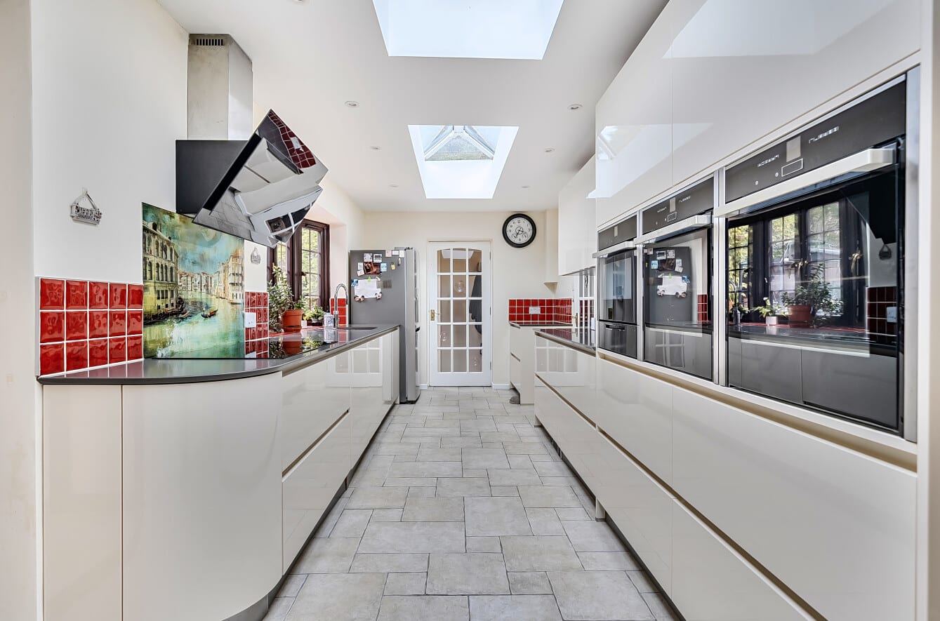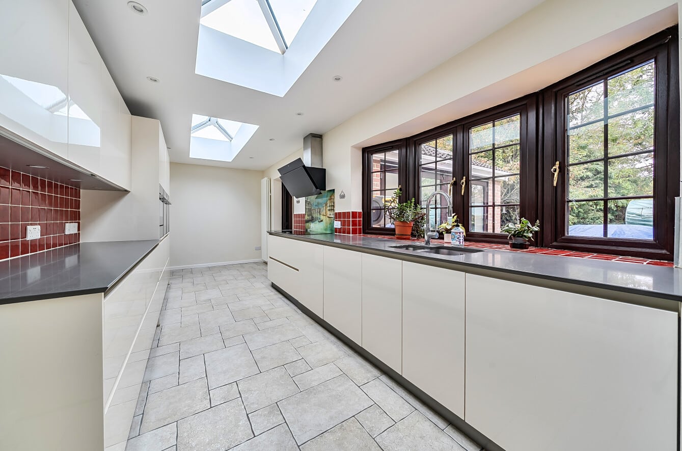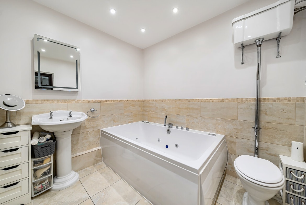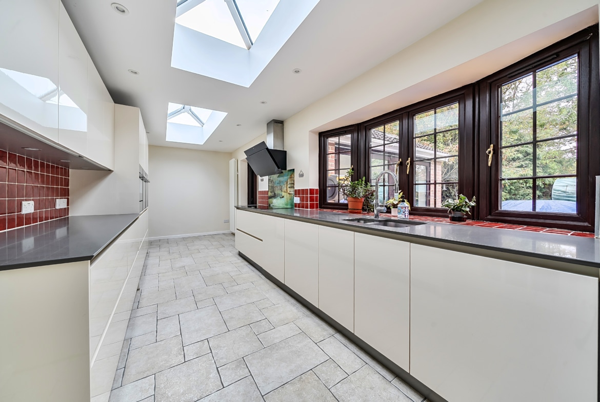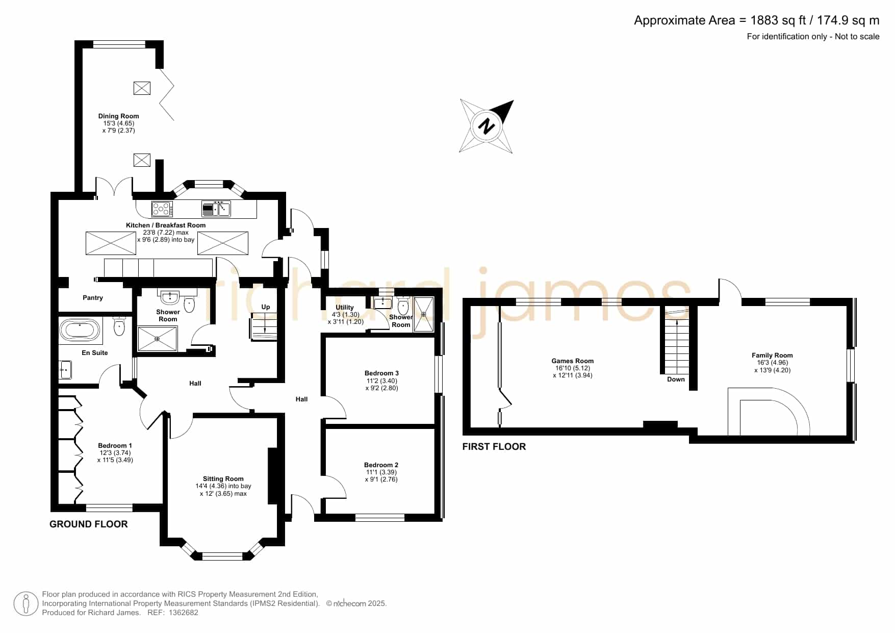 The bungalow itself offers approximately 1900sqft of well presented versatile living space, perfect for the modern family. It has been thoughtfully extended over time and now includes; Entrance Hallway, giving access to two of the double Bedrooms, Utility Room, Shower Room and Rear Lobby. Central Hall, Sitting Room with bay window, Bedroom One with Ensuite Shower, further Family Shower Room, 19′ refitted Kitchen/Breakfast Room with integrated appliances and walk-in pantry and doors leading into the Dining Room with bi-fold doors leading into the gardens. With staircase leading from the Hall up to the first floor, which is currently used as as a fantastic Games Room and Family Room, which overlook the Rear Garden, perfect for entertaining and could easily be converted to provide two further Bedrooms, subject to building regulations.