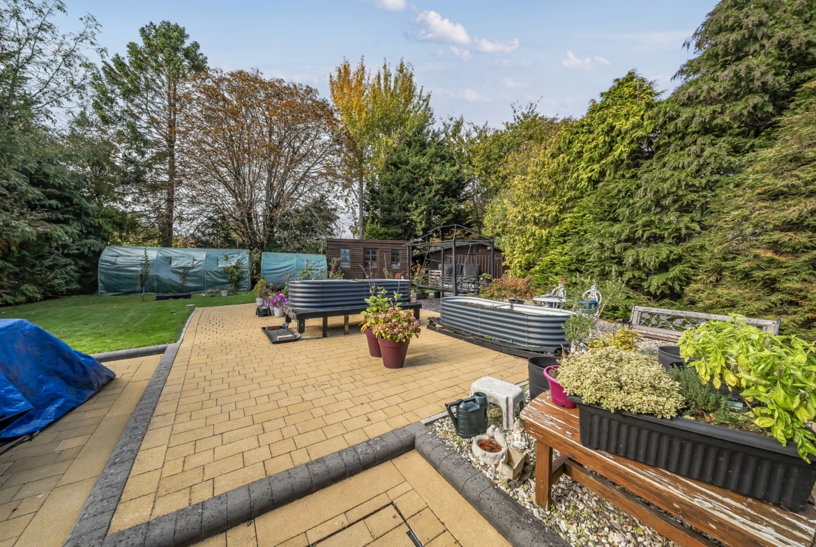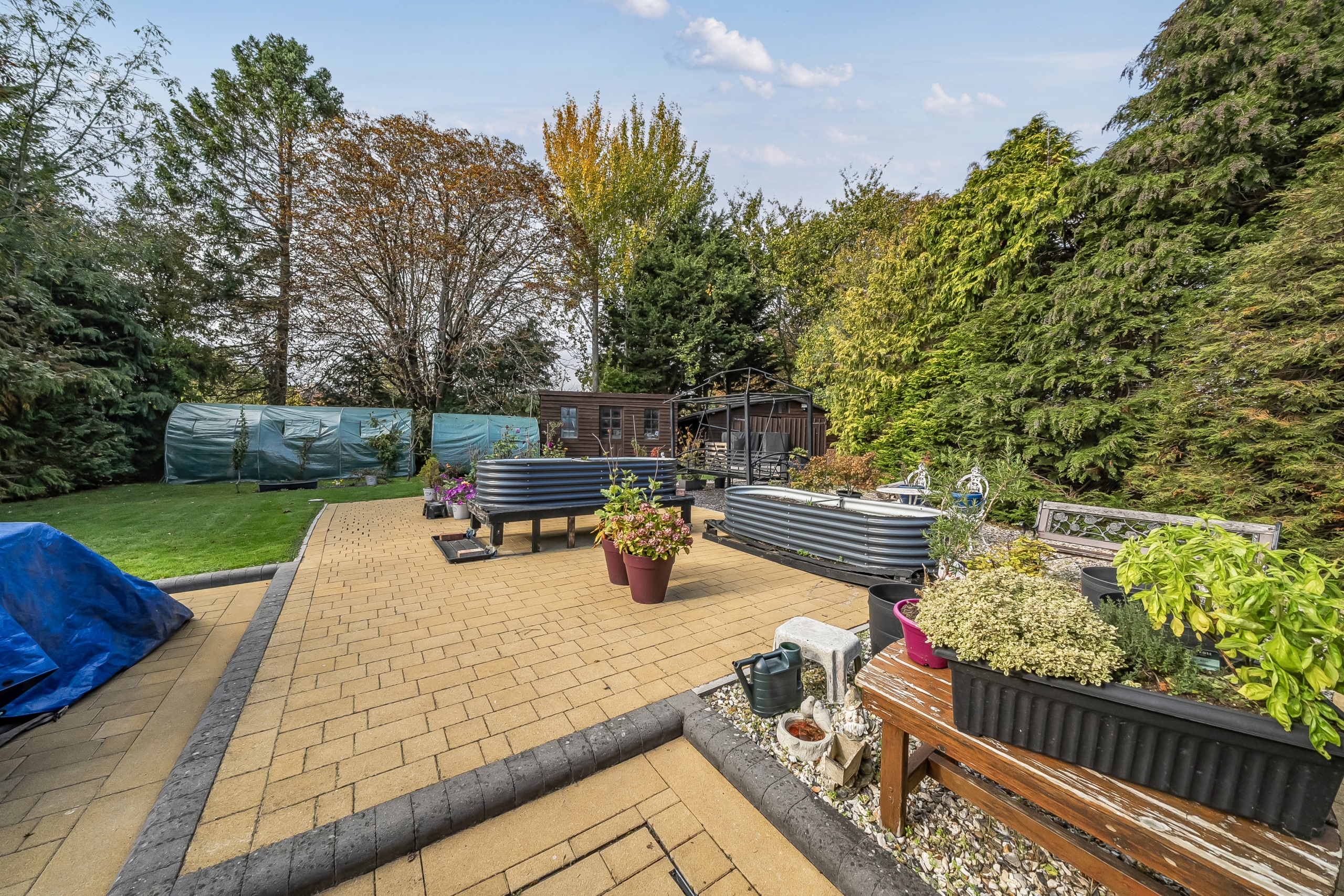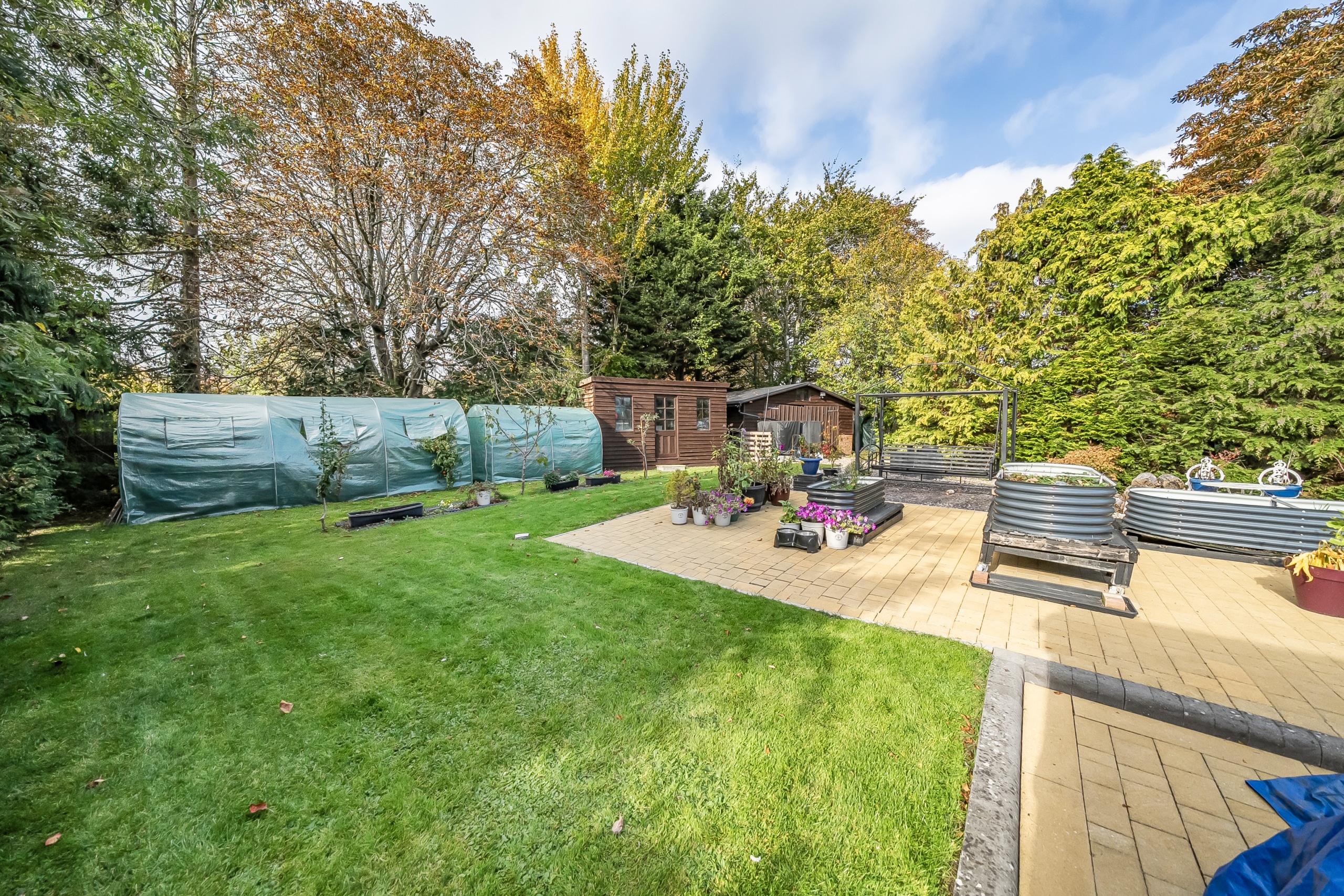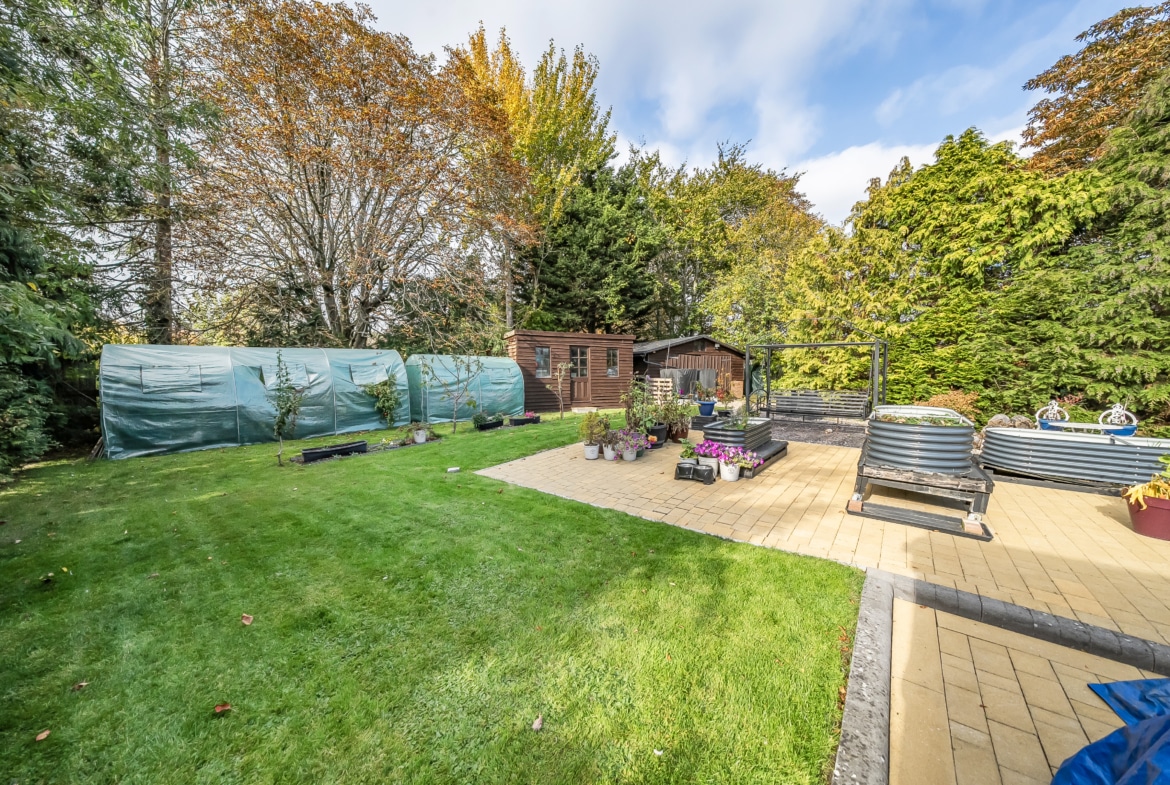 To the outside, the property is approached via a large attractive block paved driveway providing ample off road parking, with hedge screening and gated vehicular access to the side. The large private Rear Garden, is enclosed and screened by a variety of mature trees and shrubs offering complete privacy and stunning outlook. With large patio area leading out from the property offering numerous seating areas, ideal for entertaining which opens to the lawn area, further areas laid to slate, providing pathway to the rear leading to two large storage sheds and poly tunnels for growing your own vegetables.