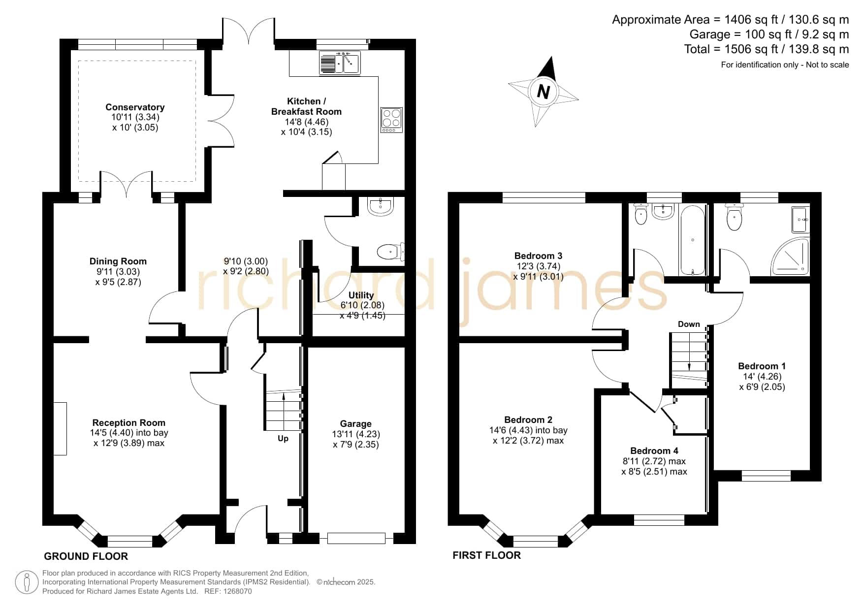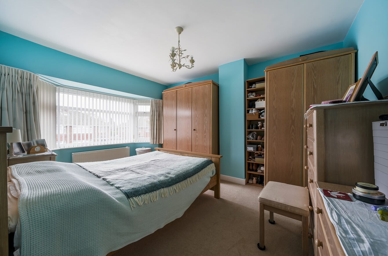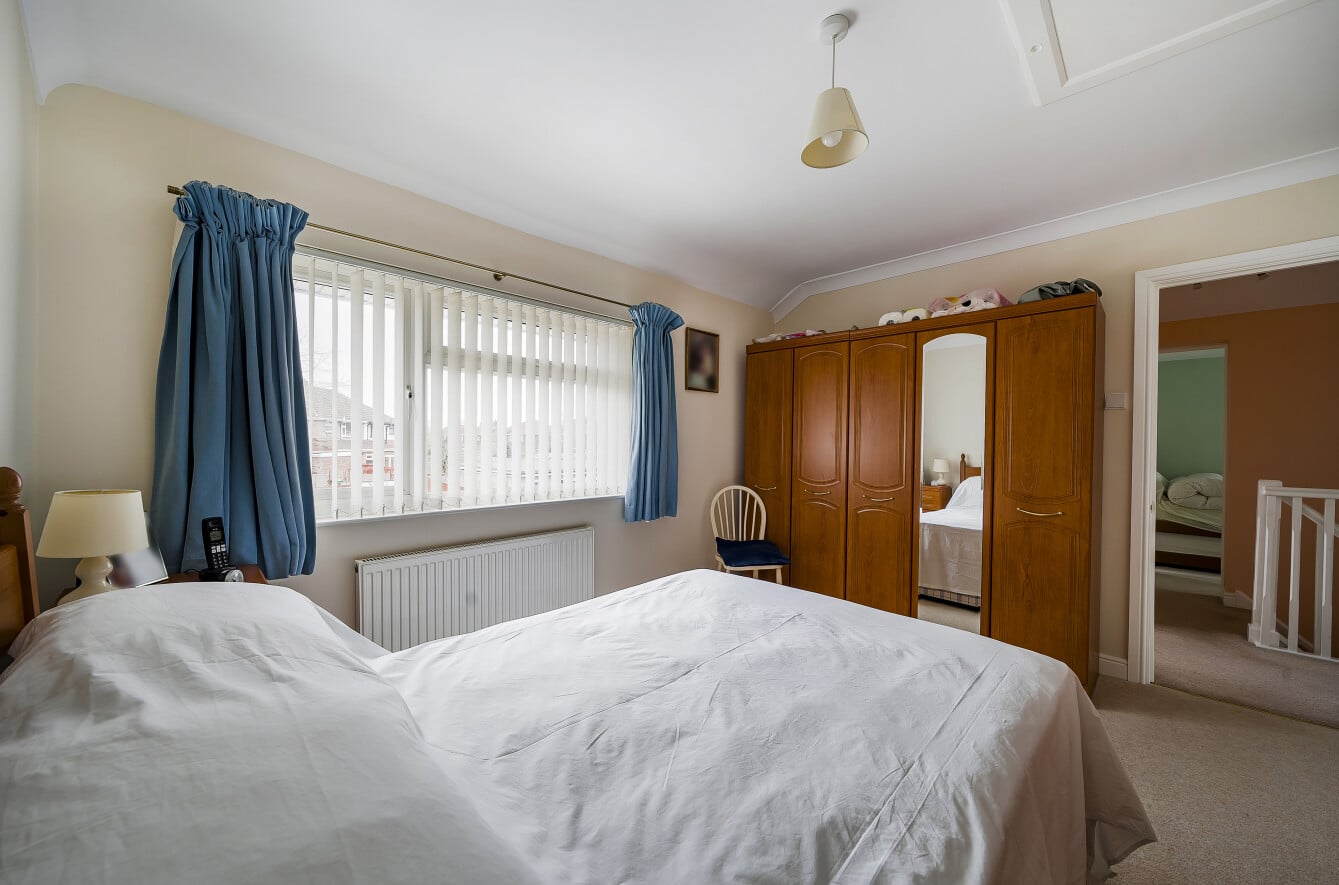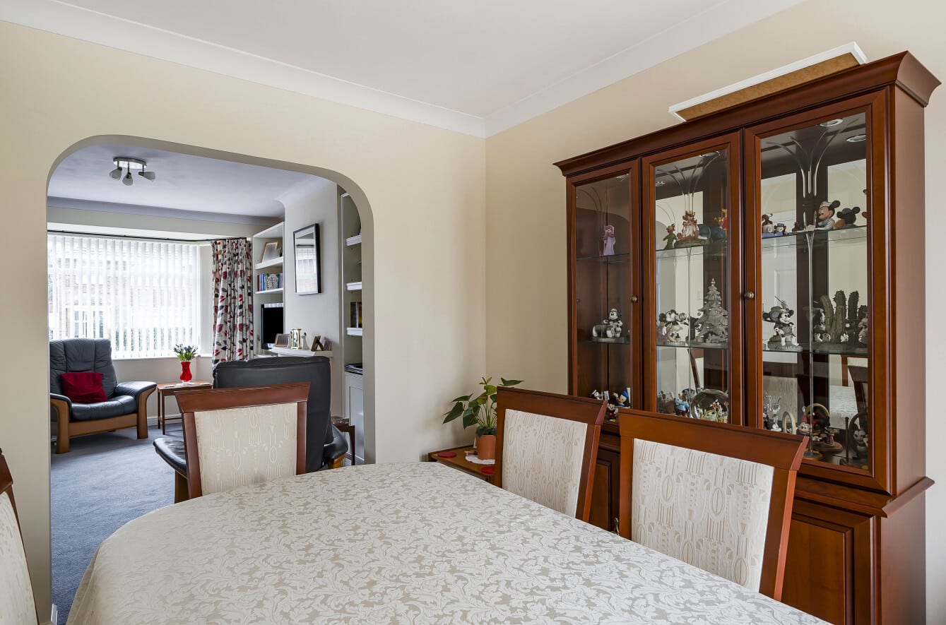 The ground floor features a large bay-fronted lounge, leading into a bright dining space. A conservatory extends from the dining room, providing additional living space. The extended kitchen offers plenty of room for cooking and entertaining, with doors into the garden. A downstairs WC, utility room, and a spacious entrance hall add to the home’s practicality.