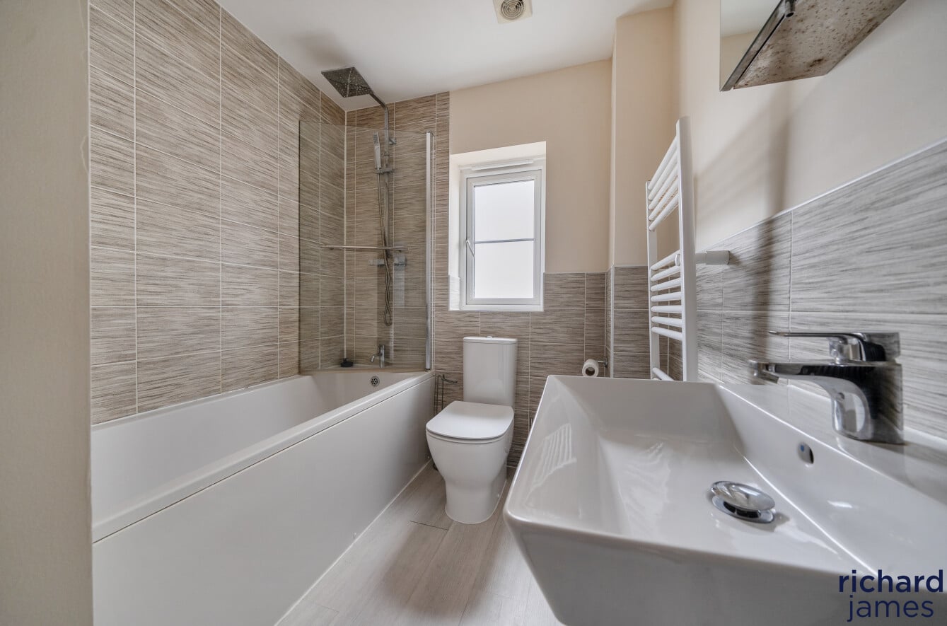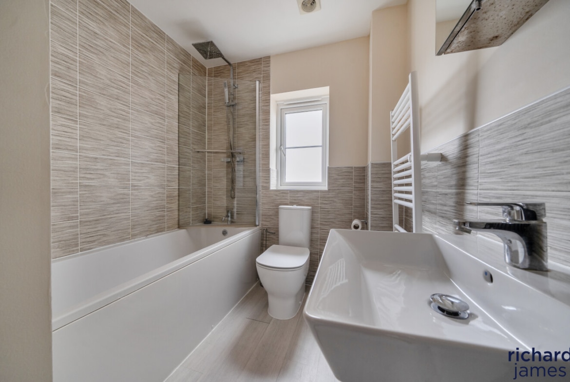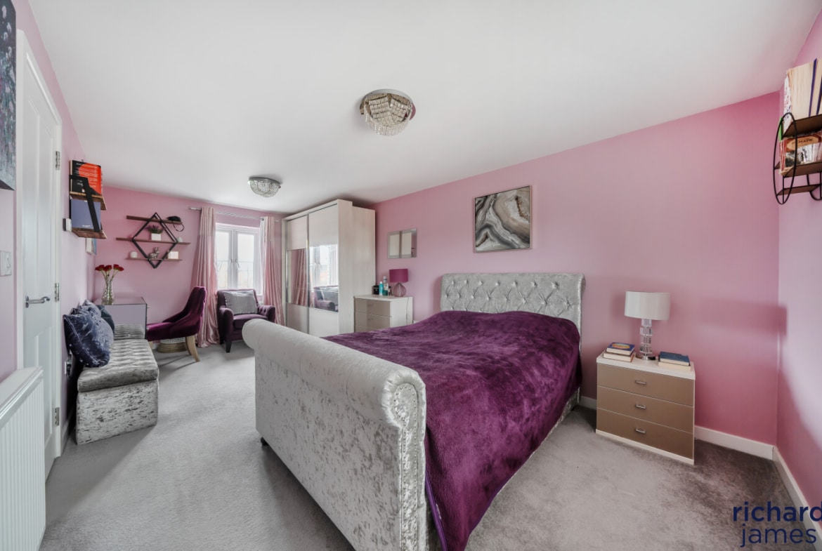 To the first floor, all three bedrooms are generous doubles. The impressive principal bedroom benefits from its own en-suite shower room and offers ample space for wardrobes and a dressing area, creating a true retreat. The remaining bedrooms are served by a well-appointed family bathroom, finished in a modern style.