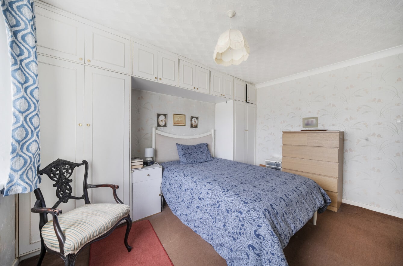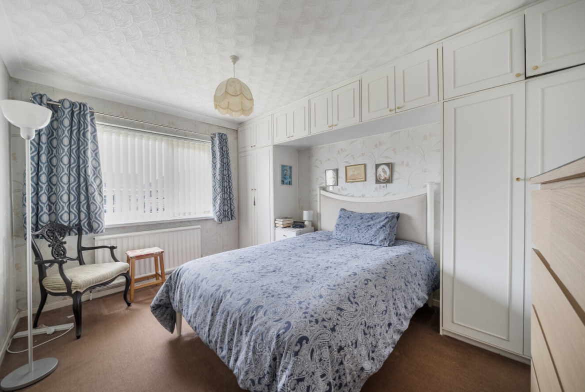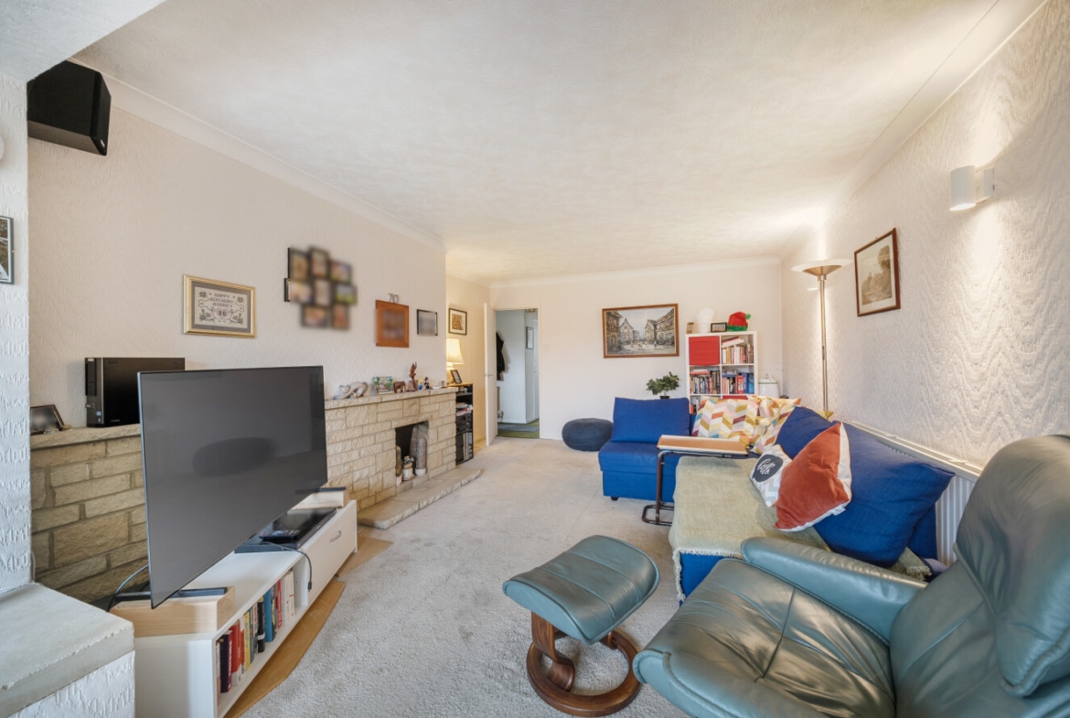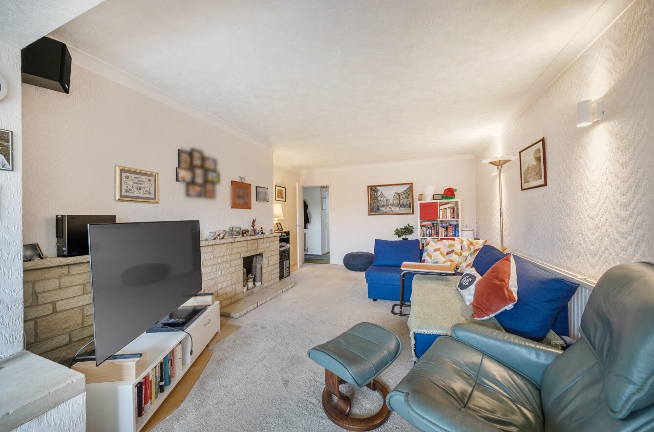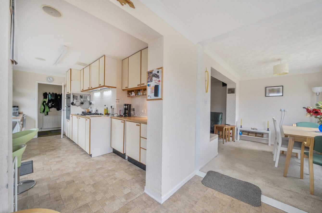 All three bedrooms are positioned at the front of the property, with the rear extended to create a larger-than-average living area and kitchen – perfect for modern family life or entertaining. The layout is versatile, with generous living space that opens onto a private garden featuring a well-kept lawn and plenty of potential for outdoor enjoyment.