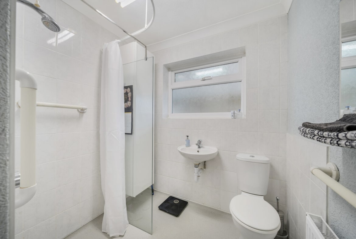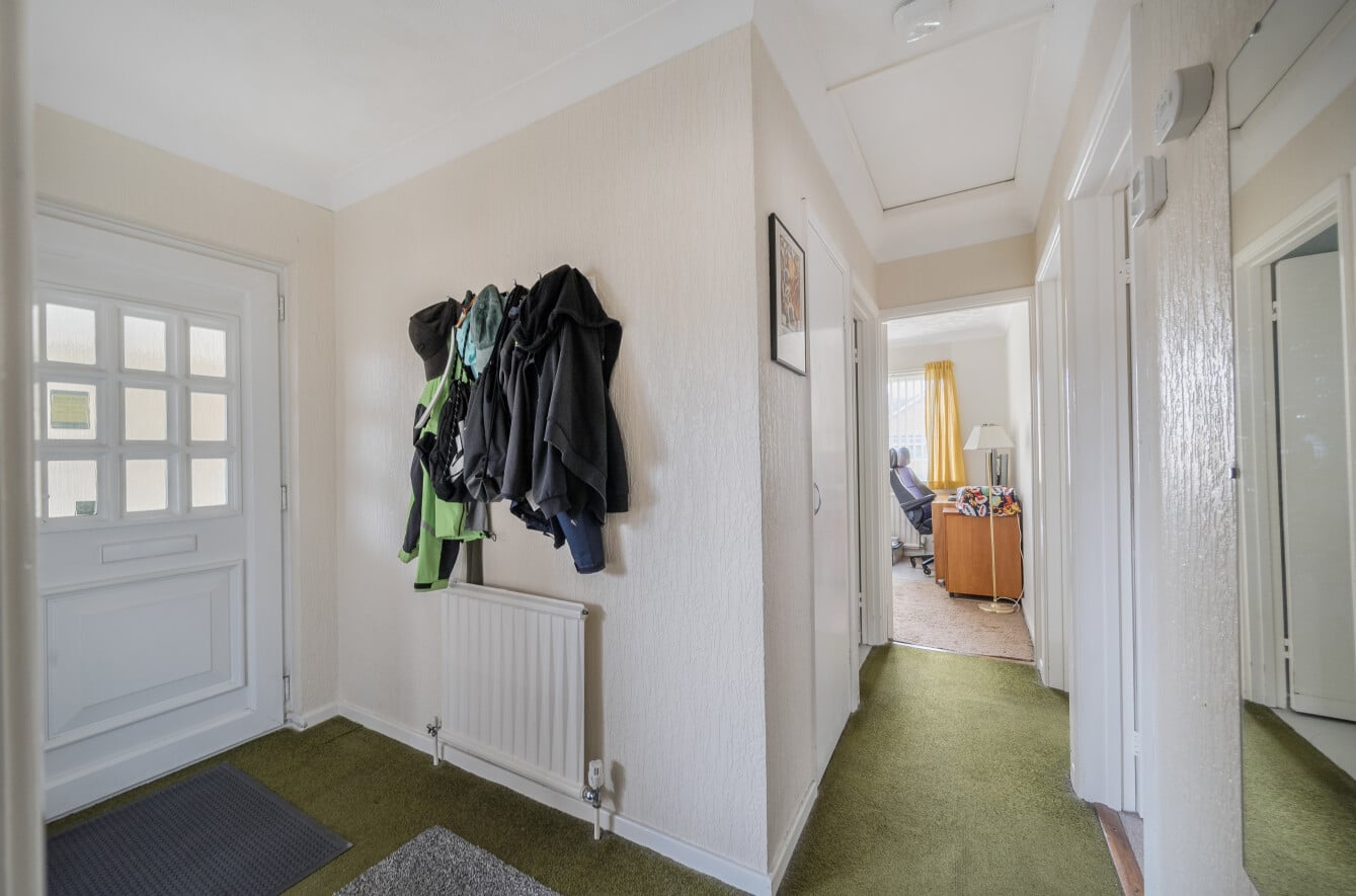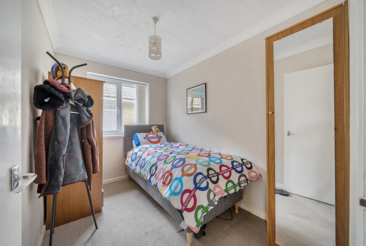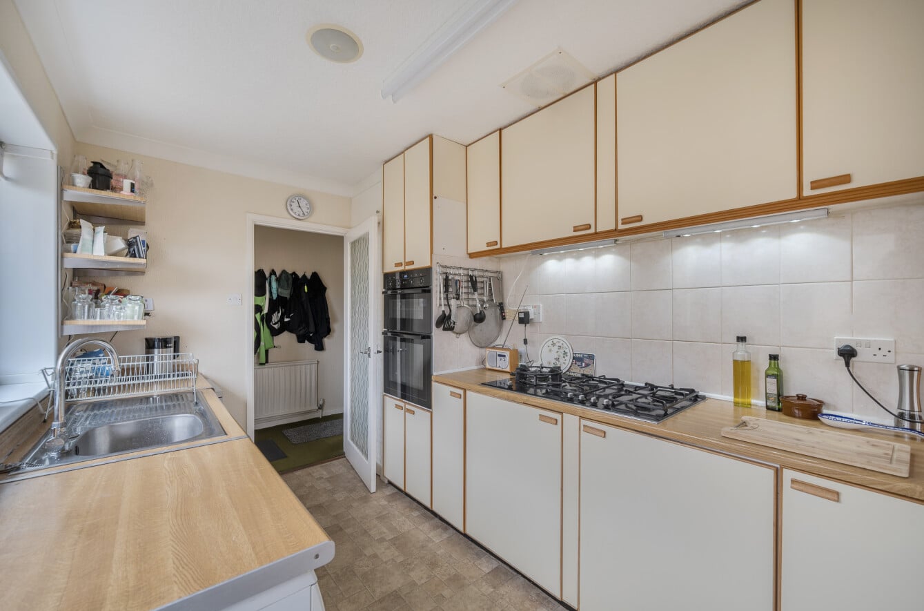 All three bedrooms are positioned at the front of the property, with the rear extended to create a larger-than-average living area and kitchen – perfect for modern family life or entertaining. The layout is versatile, with generous living space that opens onto a private garden featuring a well-kept lawn and plenty of potential for outdoor enjoyment.