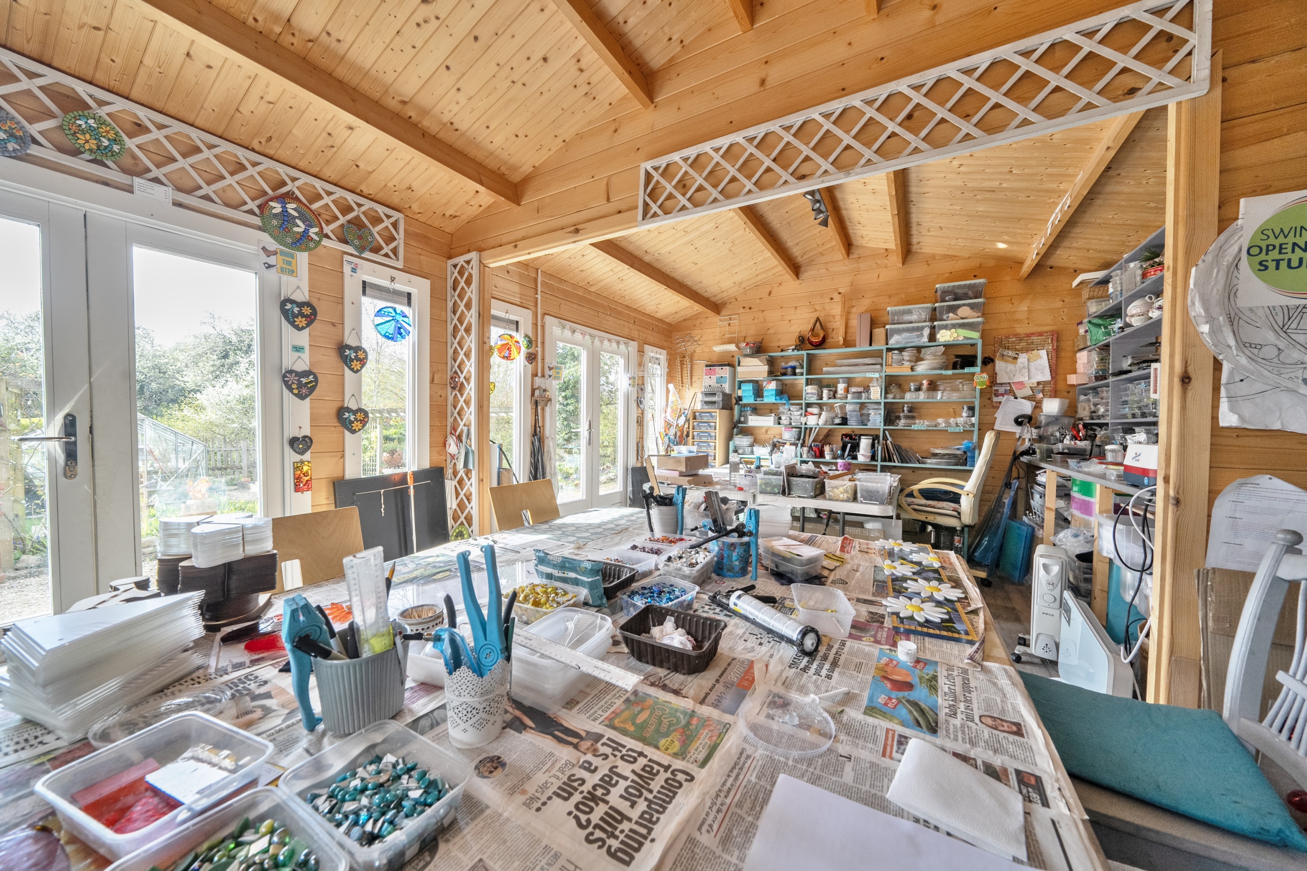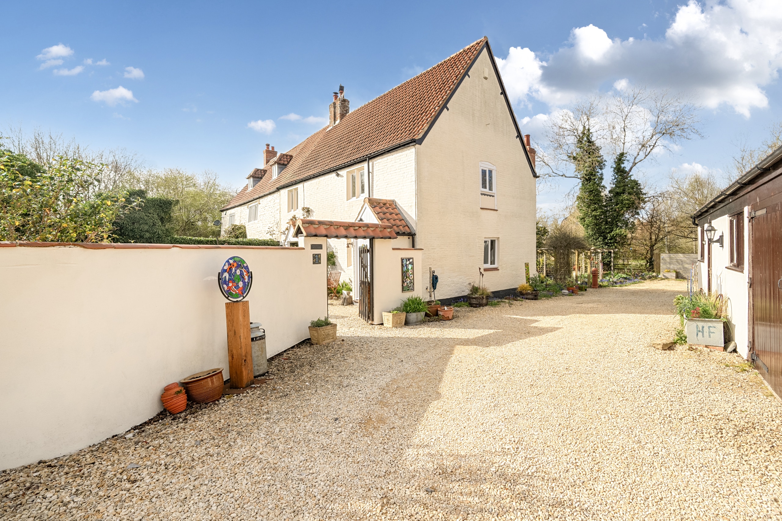Outside, the plot complements the home perfectly. There are both front and rear gardens, with mature trees and well-established flower beds creating a private and settled feel. There is plenty of parking and a range of outbuildings that add real versatility. The triple garage is a standout feature, complete with additional loft space above, and there is also a separate garden room which could suit a variety of uses such as a home office.